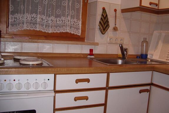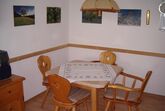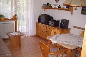 Das Haus befindet sich oberhalb des Ortskerns in der Nähe des Kurbades Zeitgeist. Es hat 2 Geschosse, die Wohnung befindet sich im Erdgeschoß und ist über eine vierstufige Aussentreppe erreichbar. Die Wohnung kann feucht gereinigt werden und hat somit keinen Teppichboden. Die Wohnung hat Dusche/WC, ein Schlafzimmer mit Einbauschrank, Küche mit Kühlschrank, Mikrowellenherd und Heißluftherd, Wohnzimmer mit Zugang zur Terrasse (Westausrichtung), alle Räume haben ein Fenster und werden durch eine Diele erschlossen. Die Wohnung bietet WLAN.