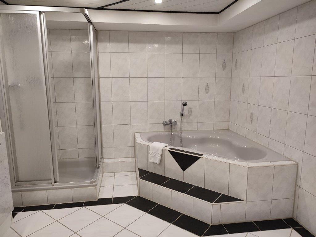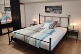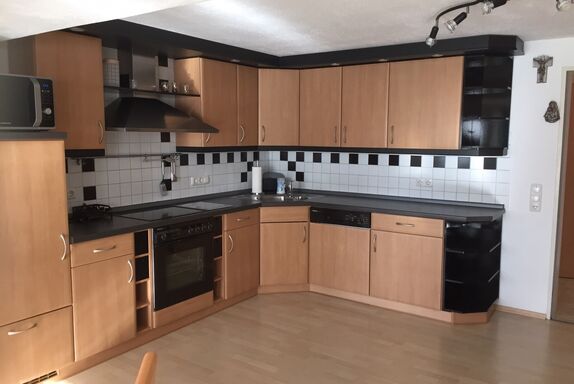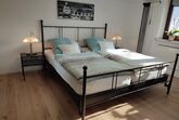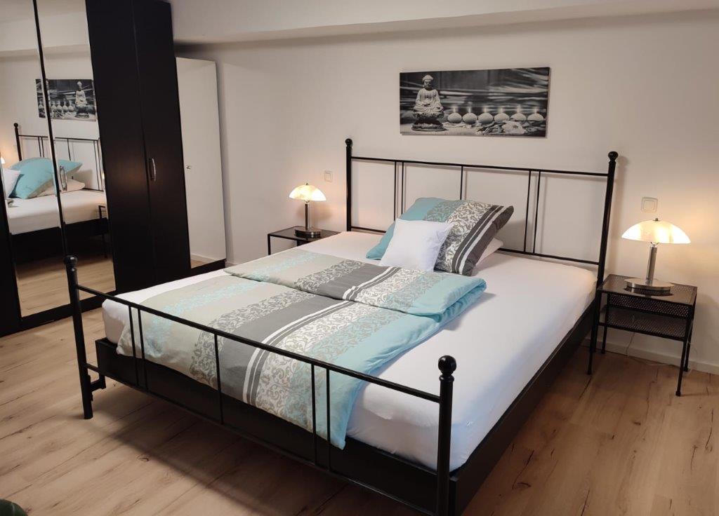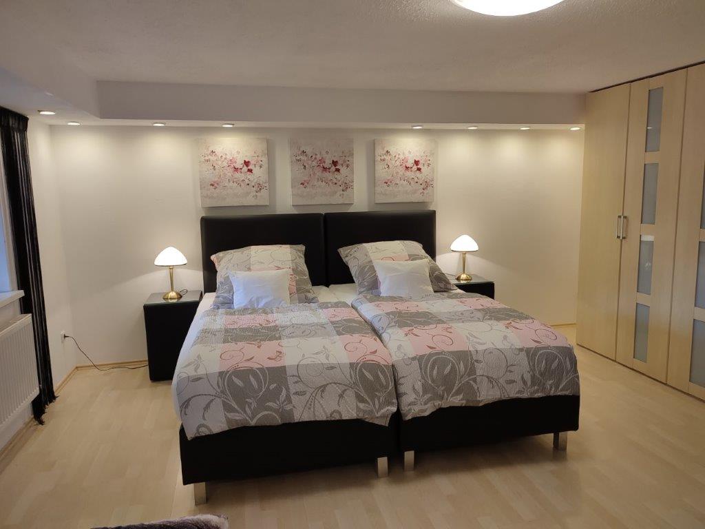 Willkommen in unserer geräumigen Ferienwohnung! Das Souterrain-Apartment mit separatem Eingang bietet auf 100 Quadratmetern Platz für bis zu 4 Personen. Es verfügt über 2 großzügige Schlafzimmer (je 25 qm) mit komfortablen Doppelbetten. Das eine Schlafzimmer bietet ein Doppelbett mit 1,80m x 2,00m, das andere Zimmer bietet ein 2,00m x 2,00 m Boxspringbett, das auch als zwei Einzelbetten genutzt werden kann. Es gibt die Möglichkeit ein Zusatzbett aufzustellen, falls die Wohnung für 5 Personen gebucht wird. Das Zusatzbett finden Sie auch unter den Bildern (Einzelbett). In beiden Schlafzimmern gibt es einen großen Flachbildfernseher mit Satellitenempfang. Die voll ausgestattete Einbauküche beinhaltet eine Mikrowelle, Kaffeemaschine, Wasserkocher, Brotmaschine, Kühlschrank, E-Herd mit Ceranfeld sowie einen Geschirrspüler und eine Auswahl an Kochutensilien. Hier können Sie Ihre Mahlzeiten nach Belieben zubereiten. Das großzügige Badezimmer ist mit Waschbecken, WC, einer Eckbadewanne und einer Dusche sowie einer Fußbodenheizung ausgestattet. Zudem haben Sie Zugang zu einer 60 Quadratmeter großen Terrasse mit gemütlichen Gartenmöbeln.