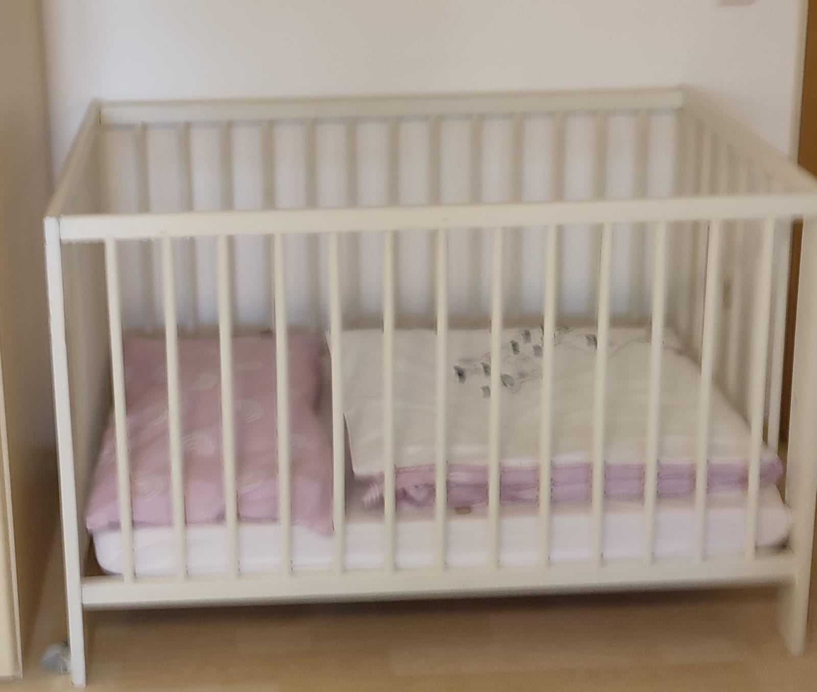 Ein Babybett ist vorhanden.