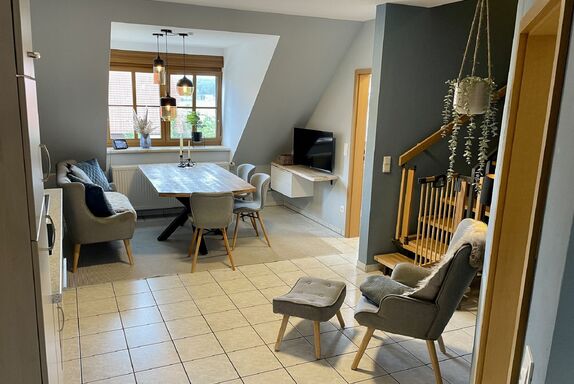 Diese moderne 3-Zimmer-Maisonette-Wohnung bietet mit rund 70 m² Platz für bis zu 5 Personen! Der großzügig gestaltete Wohnbereich mit Küchenzeile und Esstisch samt Diningcouch lädt perfekt zum gemeinsamen Essen und Verweilen ein.