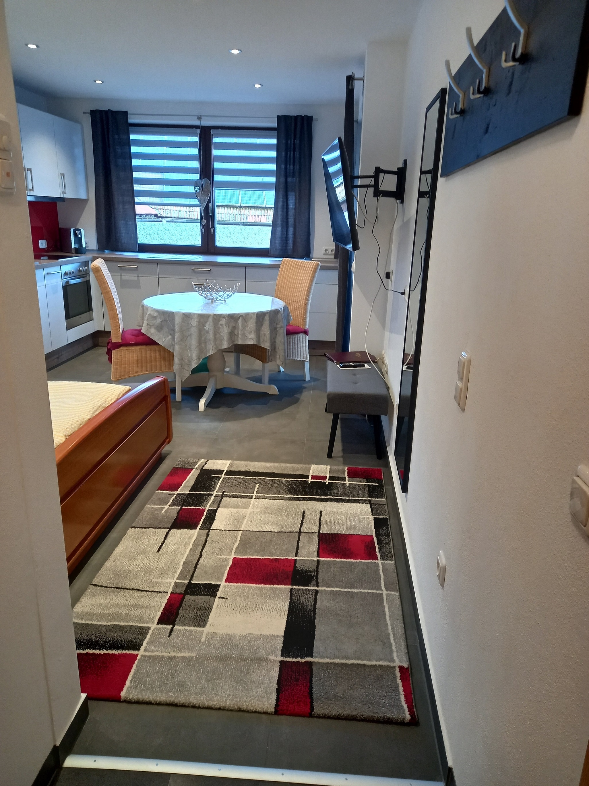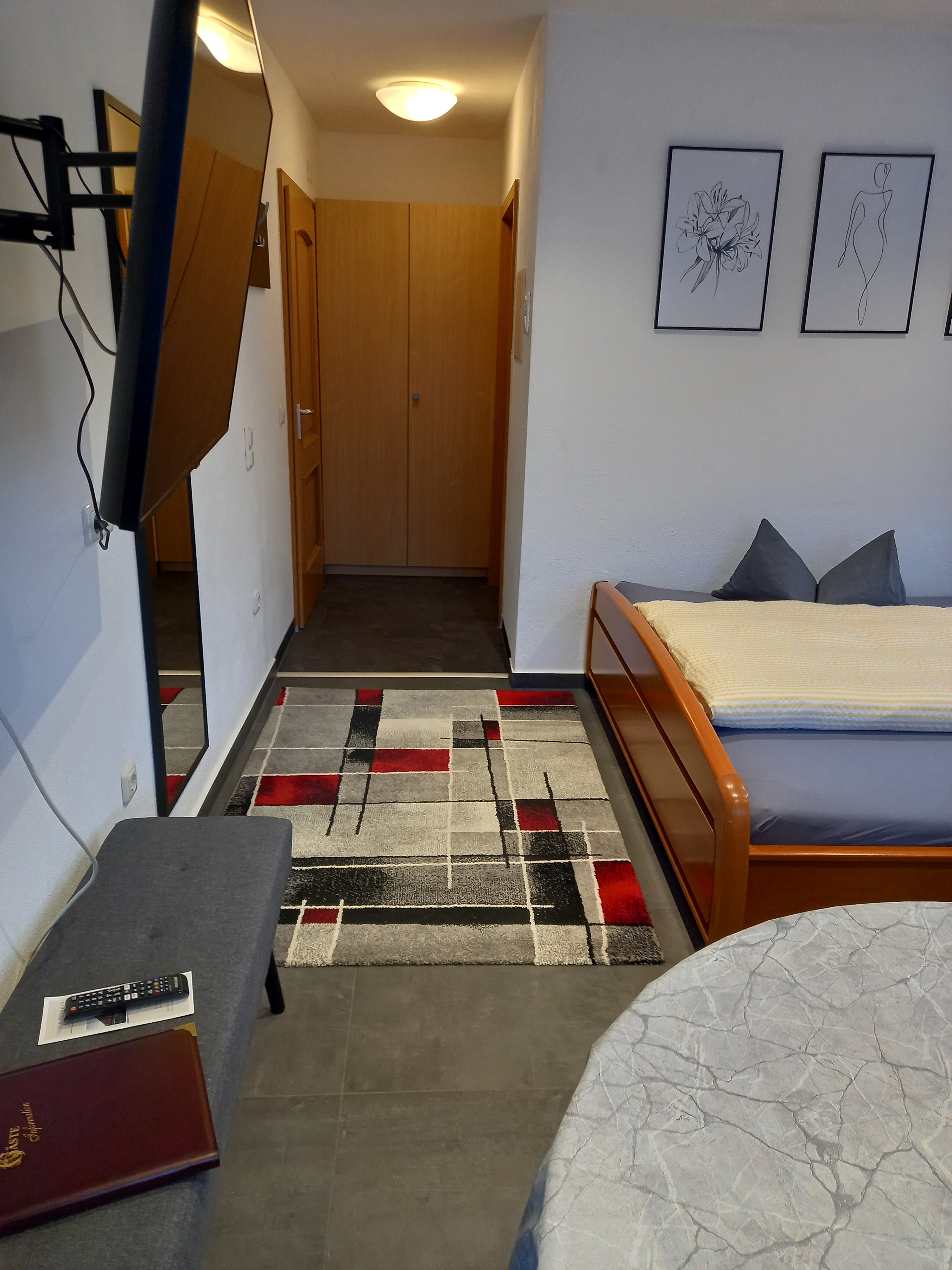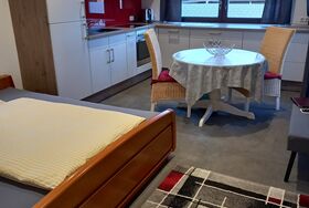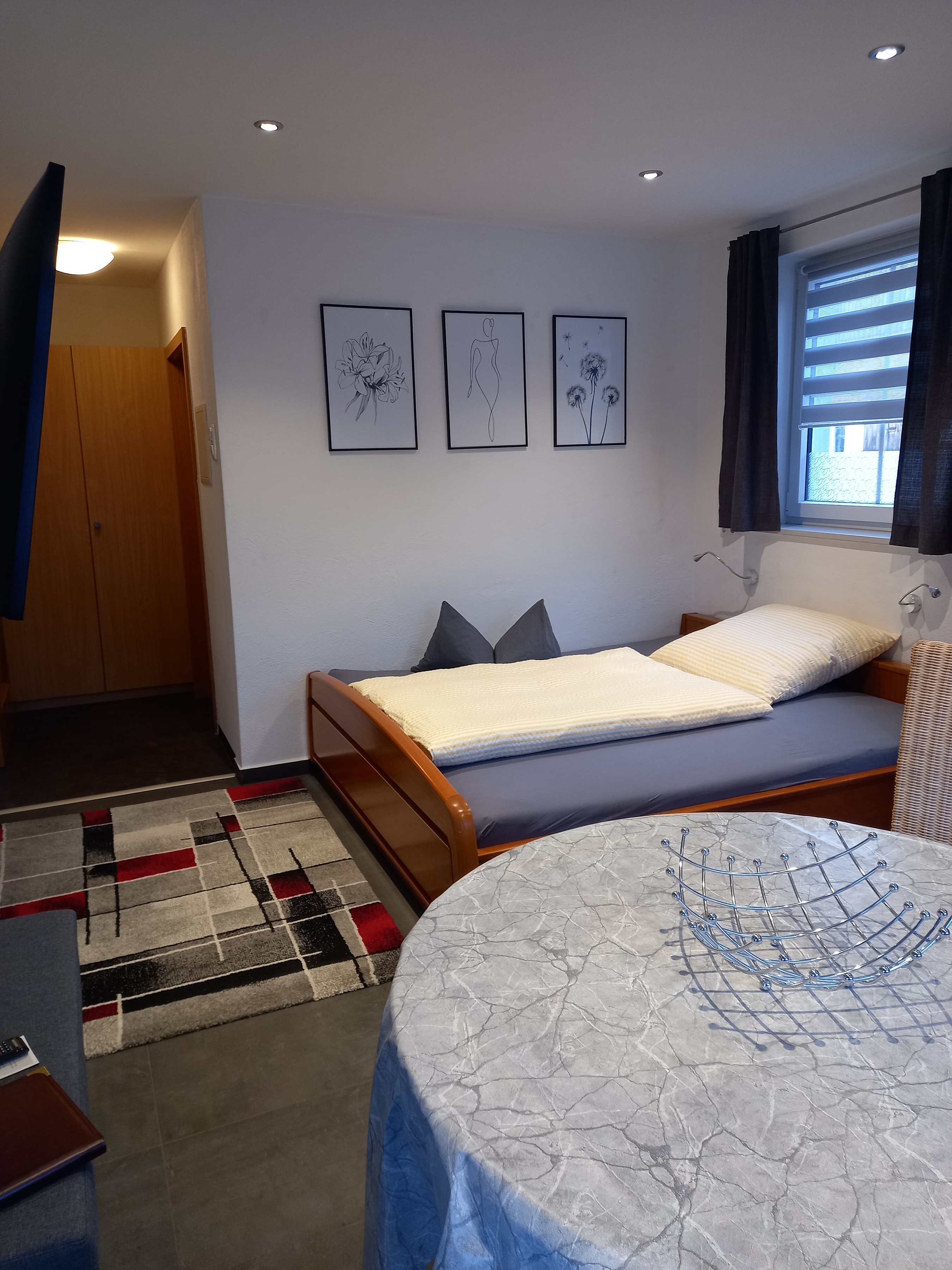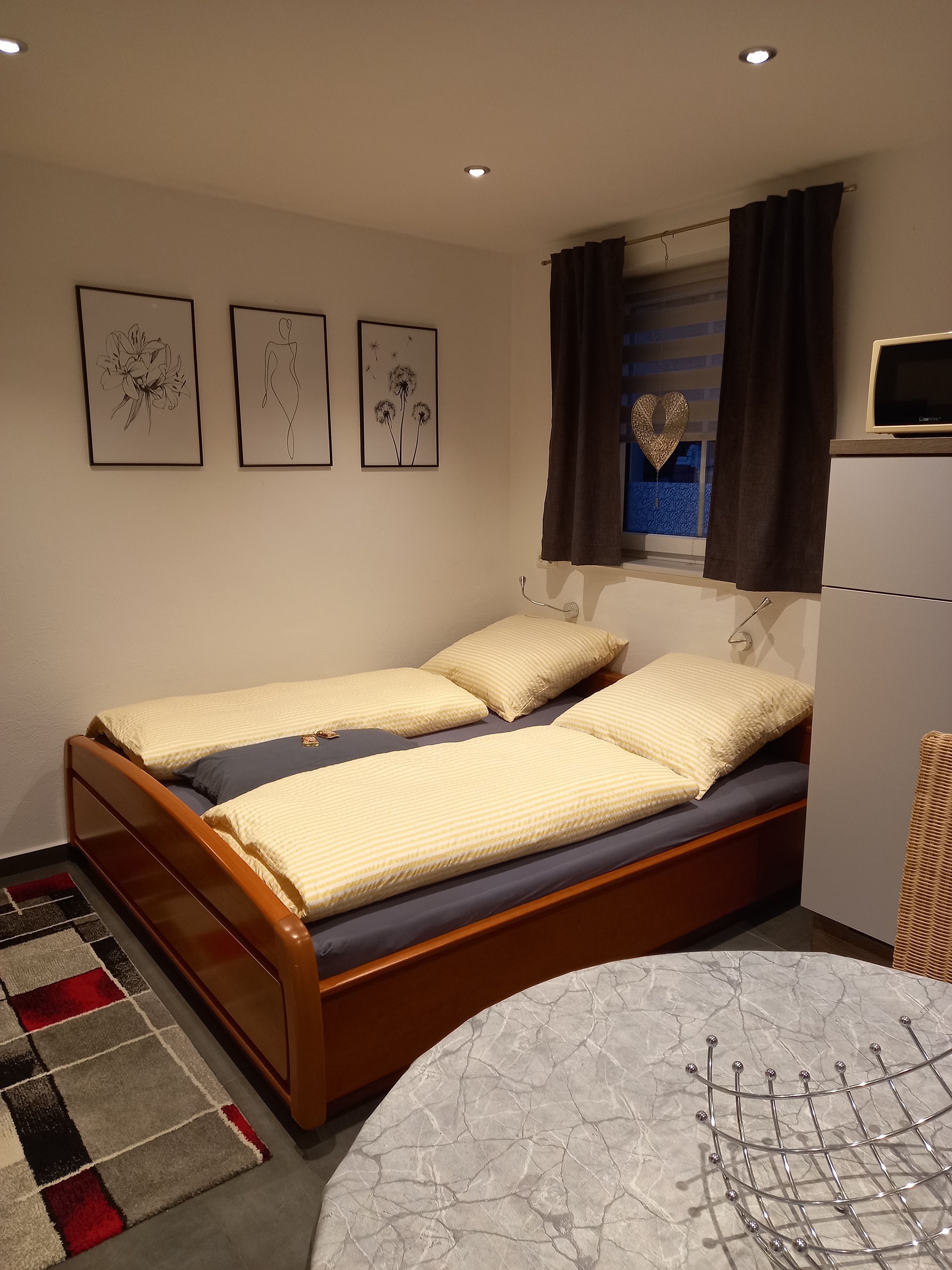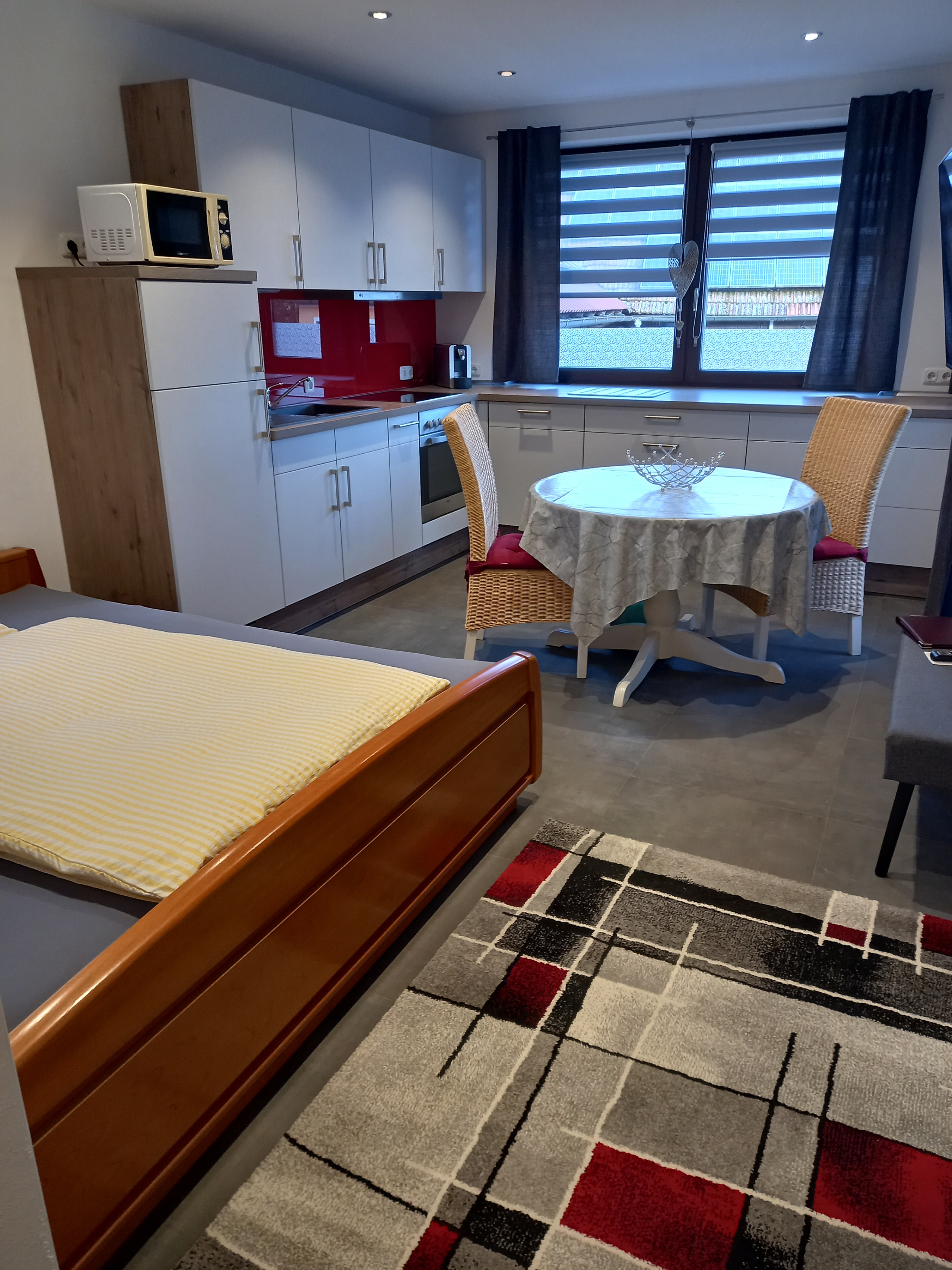Das neu renovierte Appartement in ruhiger Lage, umgeben von viel Natur, besteht aus einem Wohn- und Schlafbereich in dem sich ein Doppelbett für 2 Personen, eine Sitzgelegenheit, Küchenzeile und Essbereich befinden. Das separate Badezimmer ist mit Dusche, WC und Waschbecken ausgestattet.