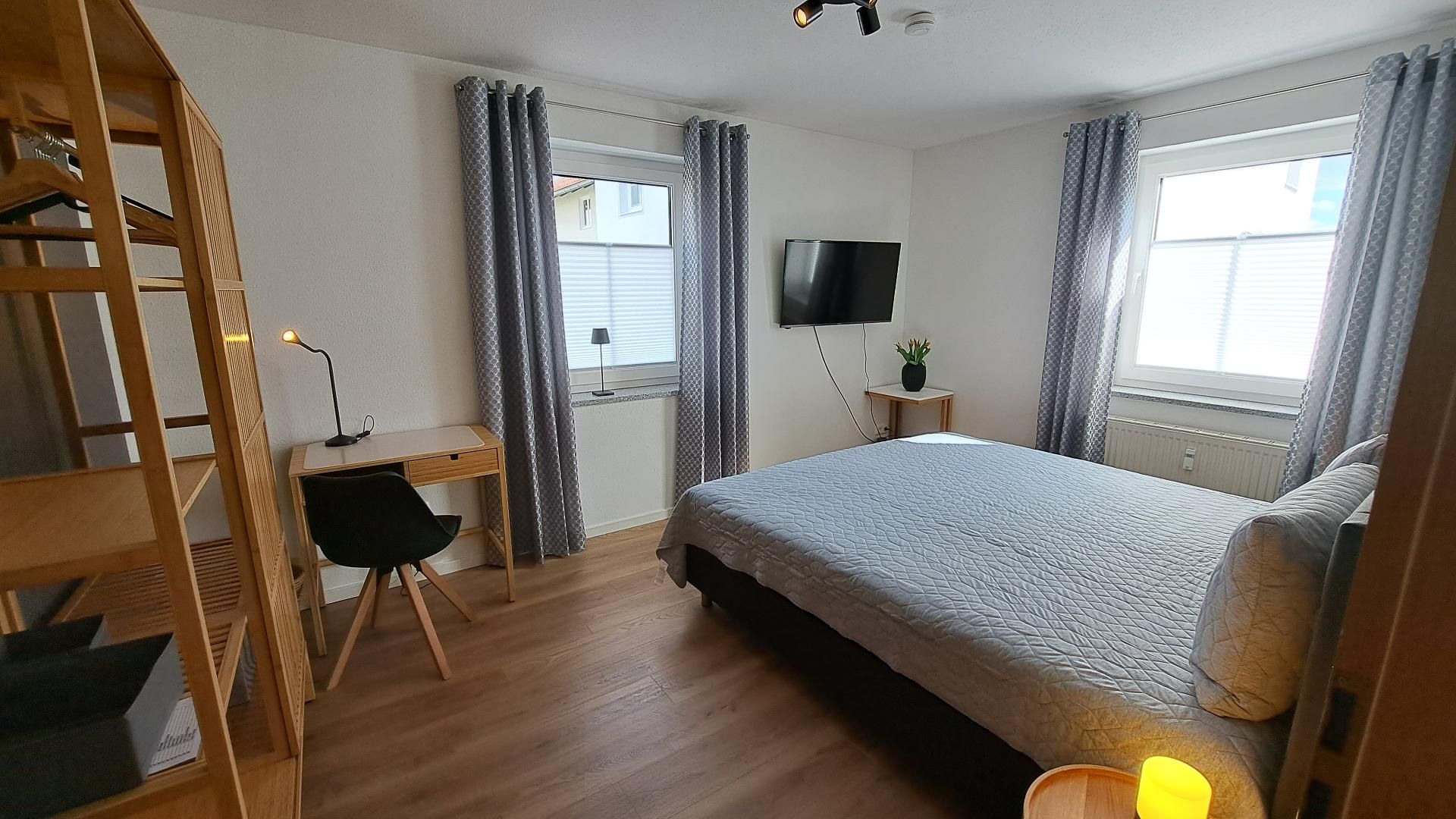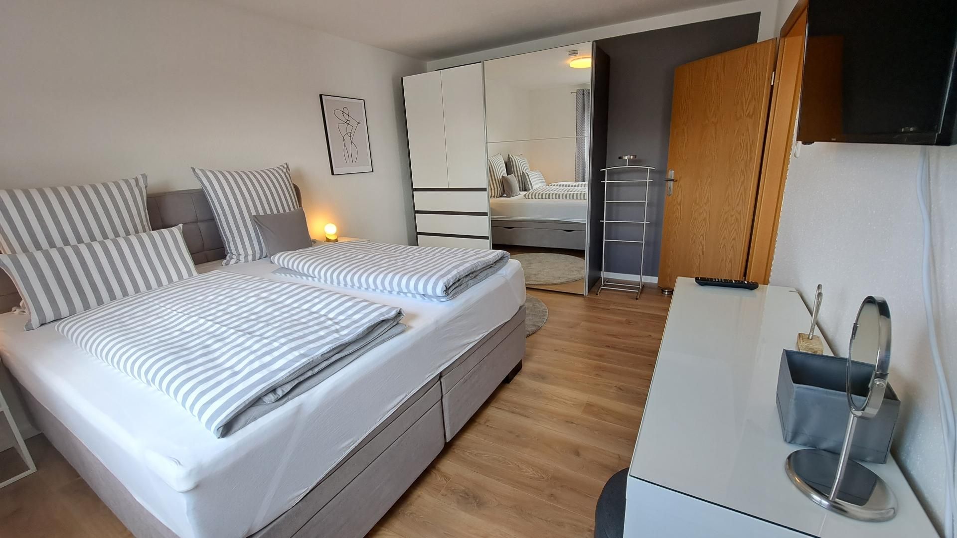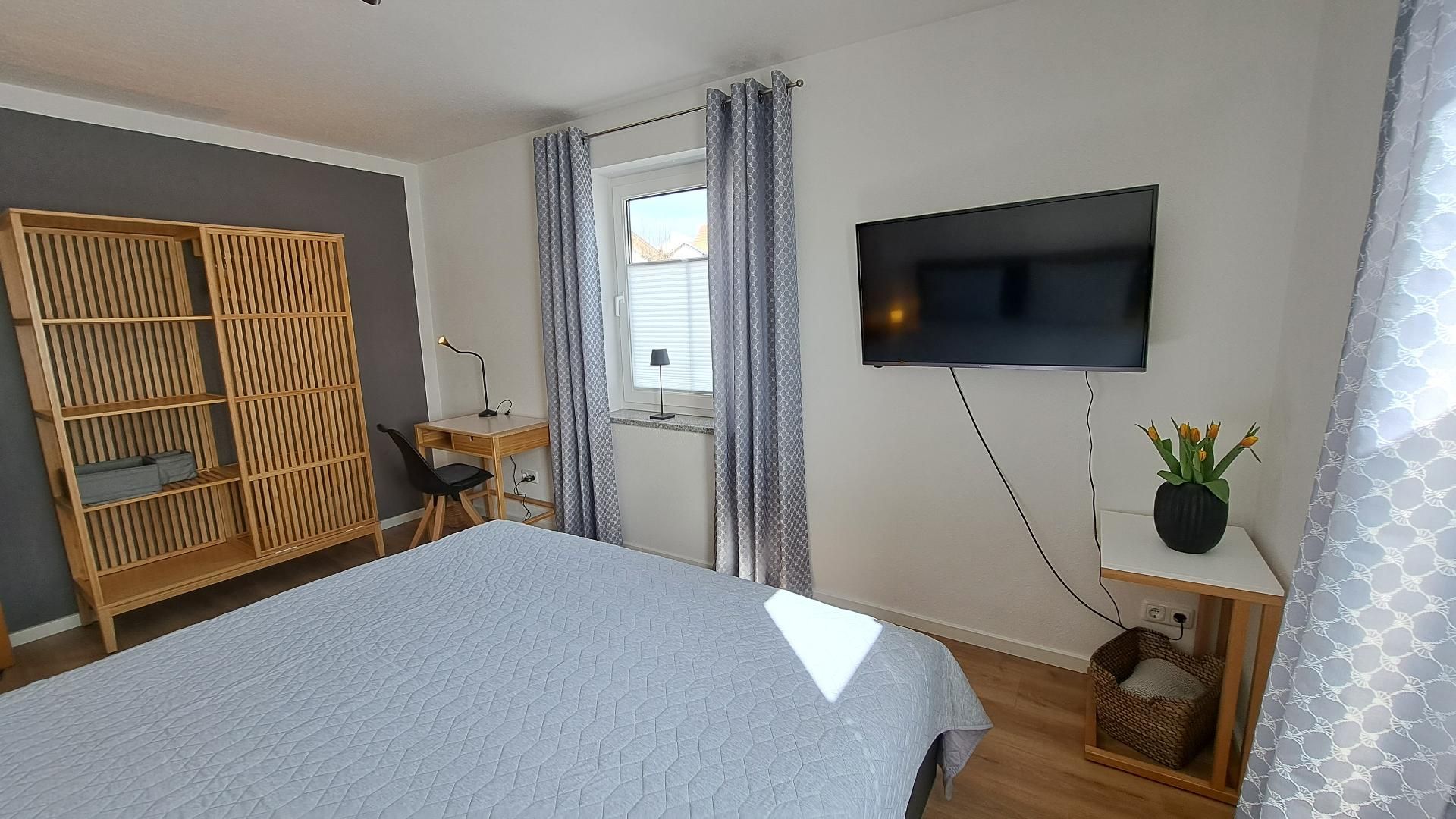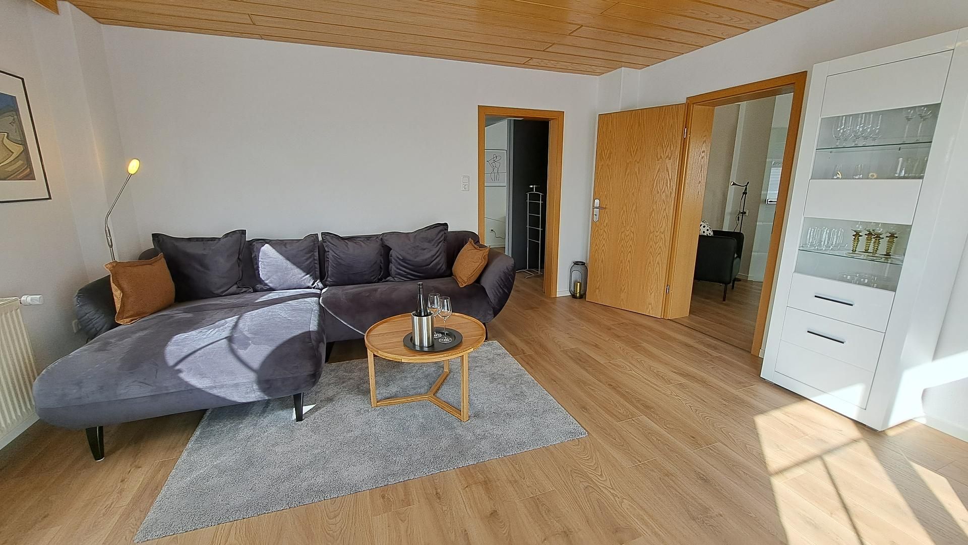 Die neurenovierte und komplett hochwertig neu ausgestattete 5 Sterne FEWO 2 im Erdgeschoss hat eine Wohnfläche von ca. 85m² mit einer zusätzlichen Terrasse von 14m² . Die Wohnung besteht aus Diele mit Garderobe und Ganzkörperspiegel. Die Küche mit Mittelinsel ist in gehobener Ausstattung sehr umfangreich: Wasserkocher, Kapsel-Kaffeemaschine, Toaster, Kühlschrank mit Gefrierfach, großes Ceran-Kochfeld mit Backofen, Mikrowelle, Geschirrspülmaschine, hochwertiges Geschirr für sechs Personen. Ein gemütlicher Essplatz für vier Personen. Ein Wohnzimmer mit 55 Fernseher, kostenloses WLAN, moderne Eck-Couch, ein Schreibtisch mit Leselampe ergänzt die Einrichtung. Das Schlafzimmer 1 ist mit einem großen Boxspringbett, Kleiderschrank mit Spiegeltür, Fernseher 43, und Frisiertisch ausgestattet.Das Schlafzimmer 2 ist mit einem Boxspringbett, Kleiderschrank und Schreibtisch eingerichtet. In der Wohnung befindet sich ein Bad mit Badewanne und extra Dusche, Waschtisch mit großem Spiegelschrank und Föhn. Das WC mit Handwaschbecken ist separat. Auf der großen Terrasse mit Zugang vom Wohnzimmer stehen Ihnen Gartenmöbel zur Verfügung.
