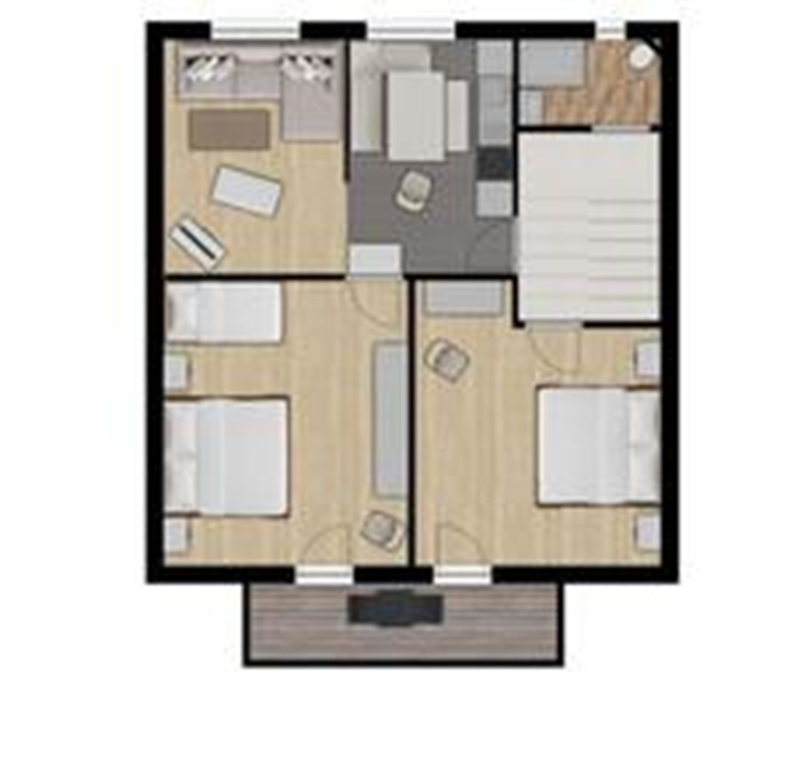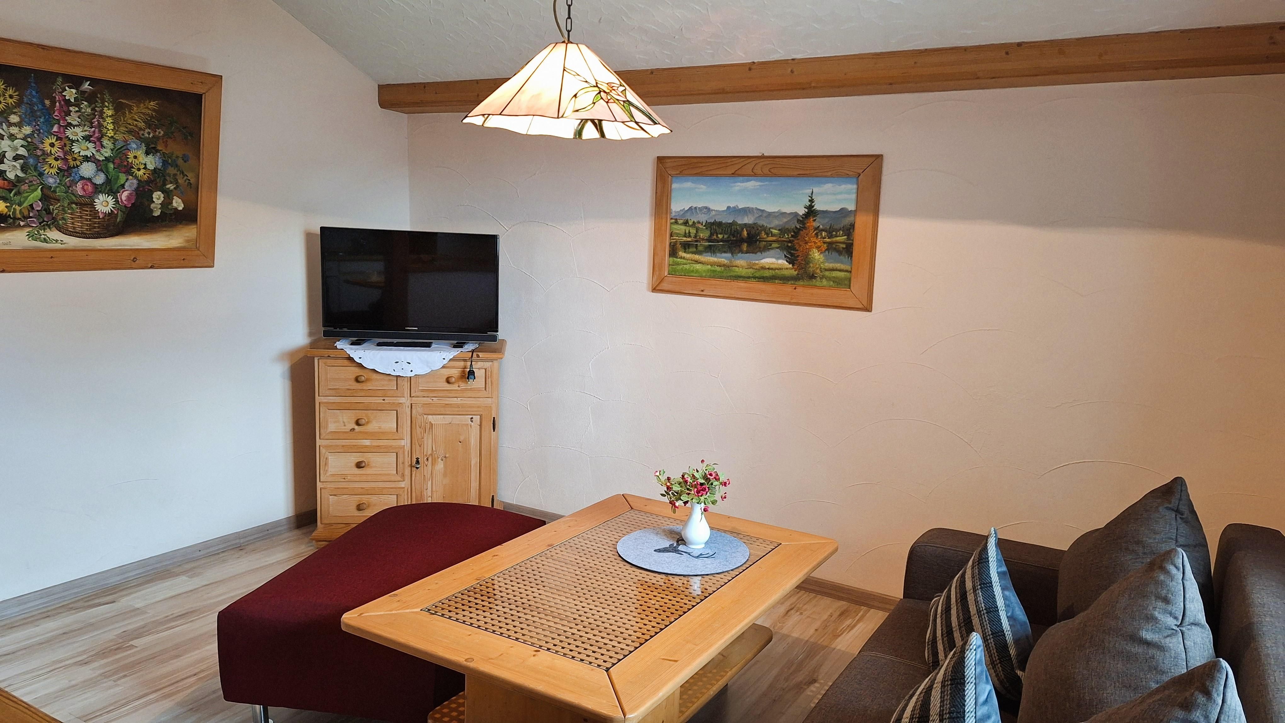 Die komfortable und liebevoll ausgestattete Wohnung hat einen seperaten Eingang/Treppenhaus und befindet sich im Obergeschoss. Sie verfügt über zwei Schlafzimmern (ein Doppelzimmer und ein Dreibettzimmer) mit Süd-Balkon, einer geräumigen Wohn-/Küche und DU/WC.