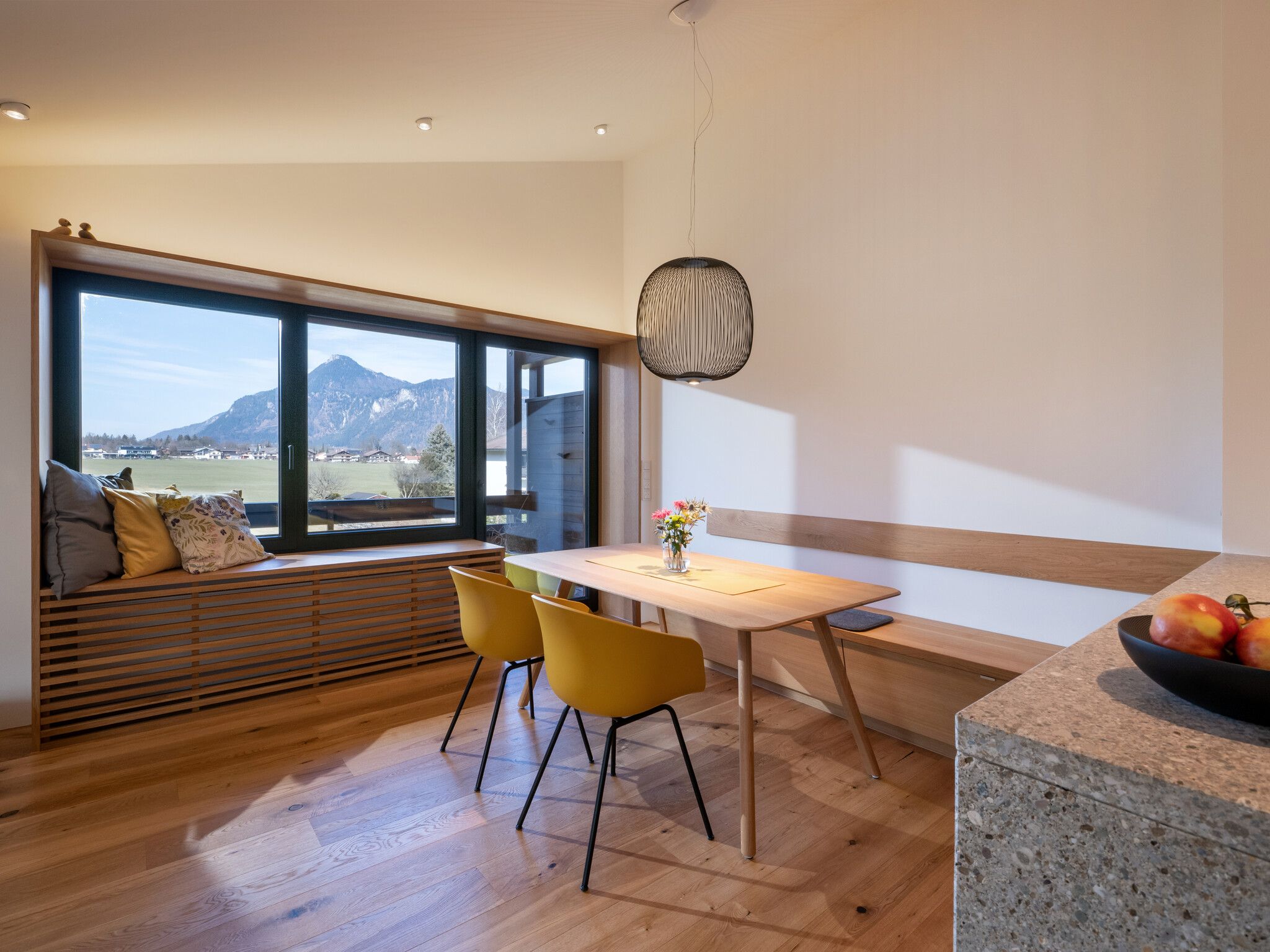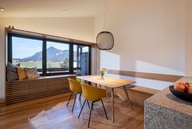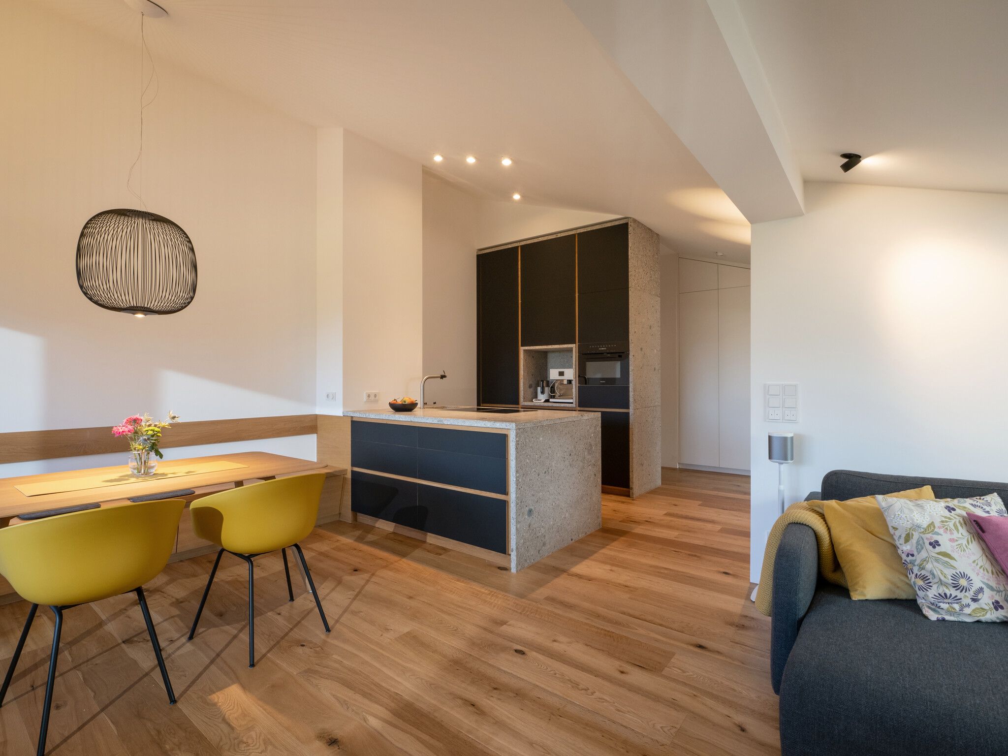 Die Zwei-Raum-Ferienwohnung befindet sich im charmanten Dachgeschoss. Das harmonische Raum- und Lichtkonzept erfüllt die Wohnung mit angenehmer Atmosphäre. Die Sitzfenster im Wohnbereich, sowie der eigene Balkon bieten Ihnen einen weitläufigen Bergblick. Die maßgefertigte Küche ist voll ausgestattet und lässt keine Wünsche offen. Das separate Schlafzimmer verfügt über ein Doppelbett 180x200 und ein Bett 120x200. Für Jugendliche steht im Wohnzimmer eine Schlafcouch zur Verfügung. Für die Kleinen steht ein Rausfallschutz zur Verfügung. Ein 65-Fernseher und WLAN in der gesamten Wohnung sind selbstverständlich.