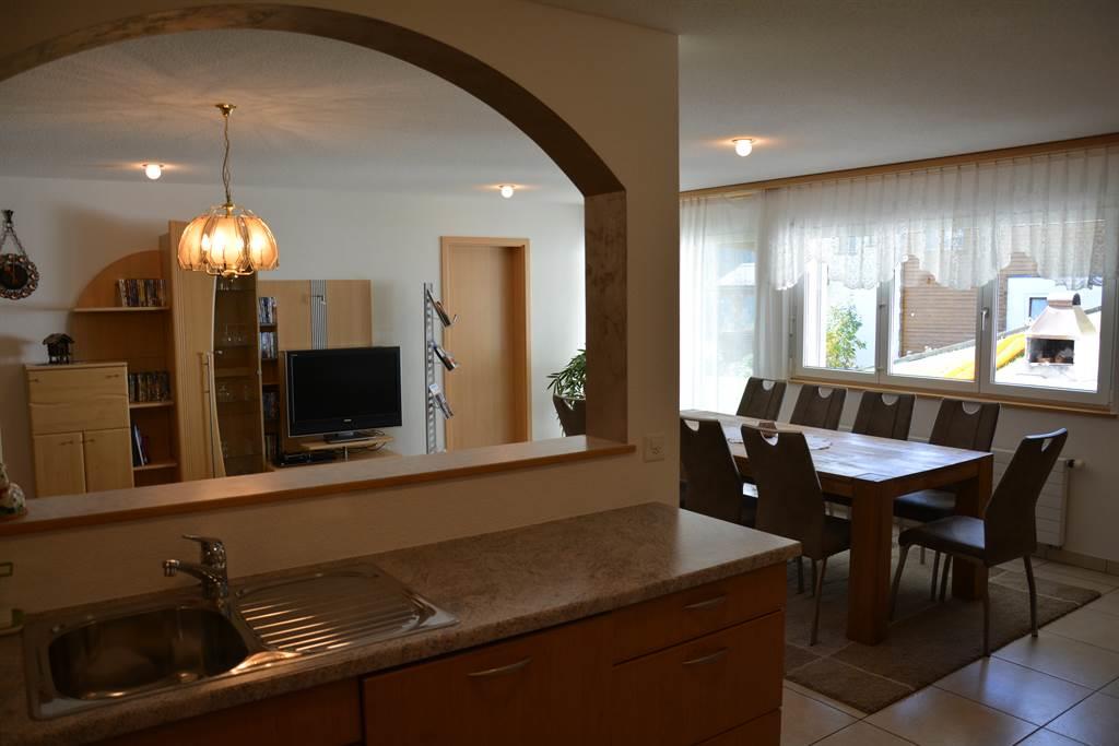 Die 5 1/2-Zimmerwohnung (Parterre) ist familienfreundlich eingerichtet. Sie verfügt über 4 Doppelzimmer; davon eines mit Grandlit (160 cm). Zusätzlich verfügen wir über 2 Kinderbetten plus 2 einfachen Zusatzbetten (gegen Aufpreis), Wohnküche mit Geschirrspüler & Kaffemaschine, Bad mit Whirlwanne/WC, Dusche/WC, Waschmaschine/Tumbler, Wohn-Esszimmer mit Radio-CD/Player, DVD-Player, Kabel-TV, Internetanschluss.