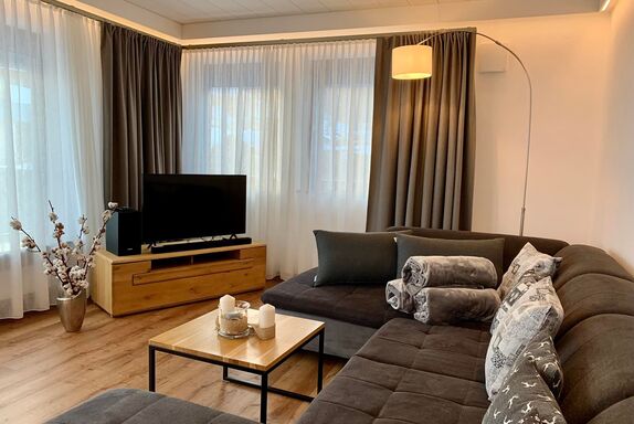 3 Schlafräume, davon ein Schlafraum mit einem Etagenbett, ein großer Wohn-Essbereich mit TV - und Sound Bar, sowie einer modernen Küche, kostenloses W-Lan ermöglichen ein entspanntes Wohngefühl.