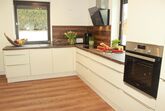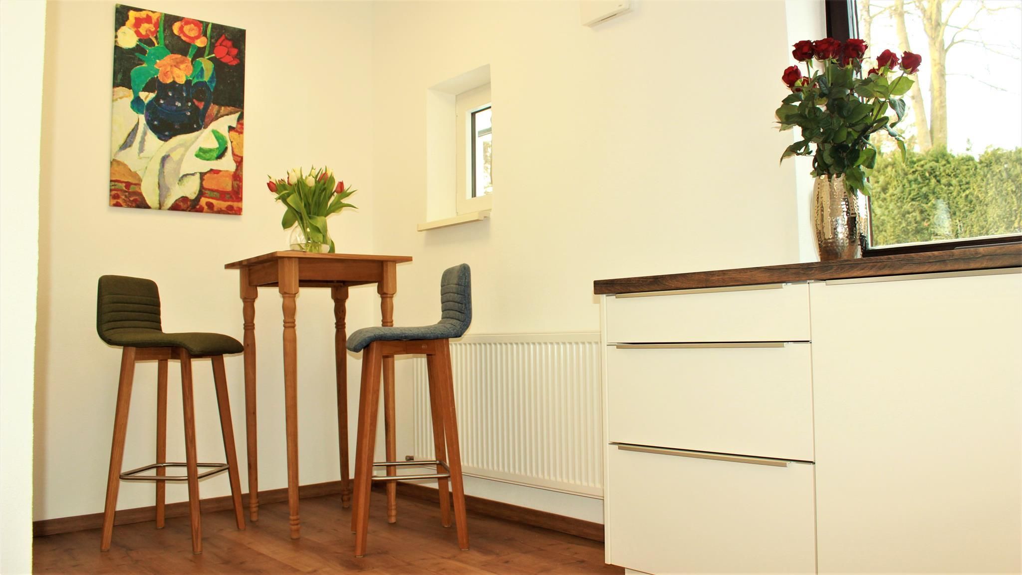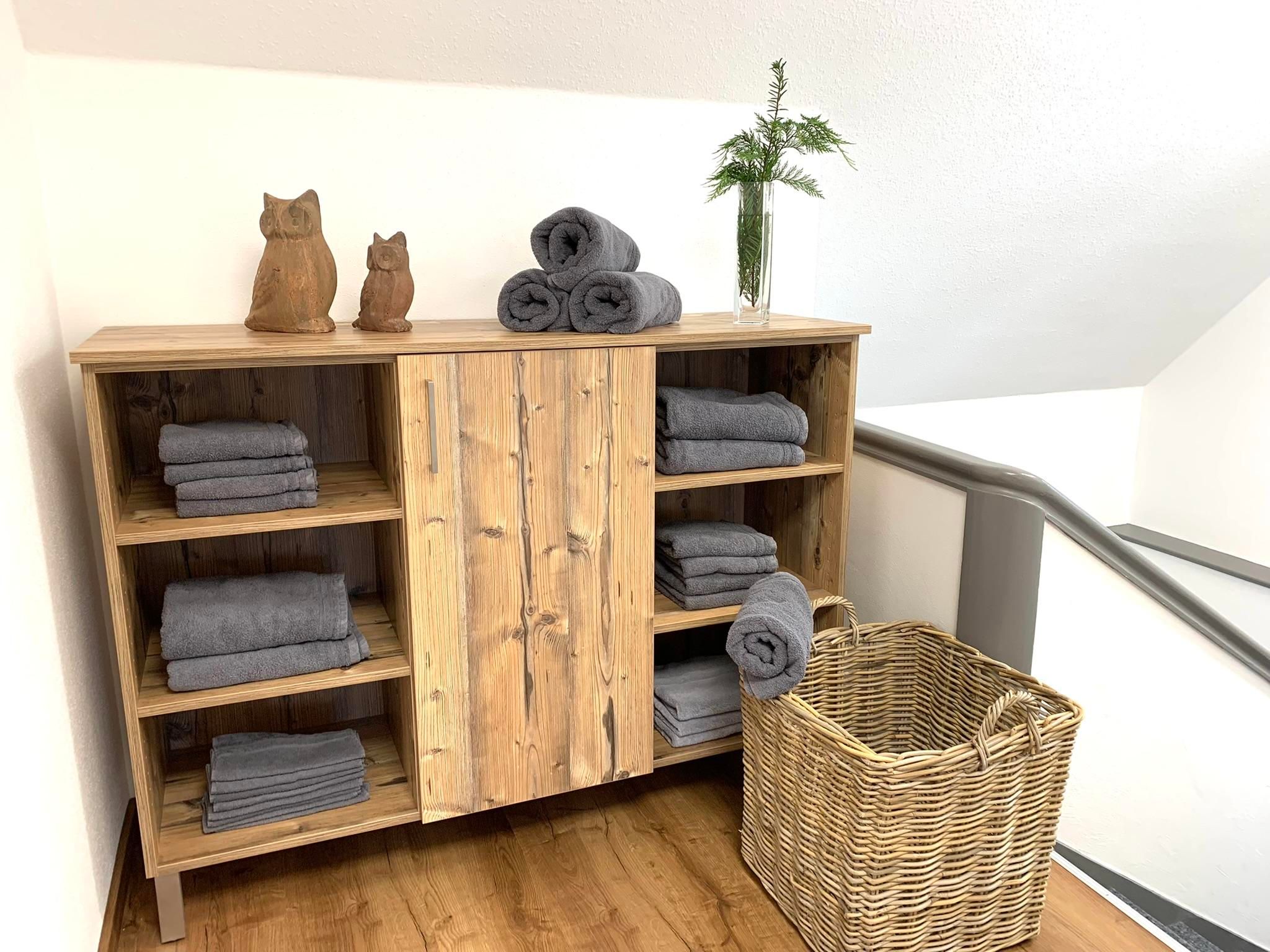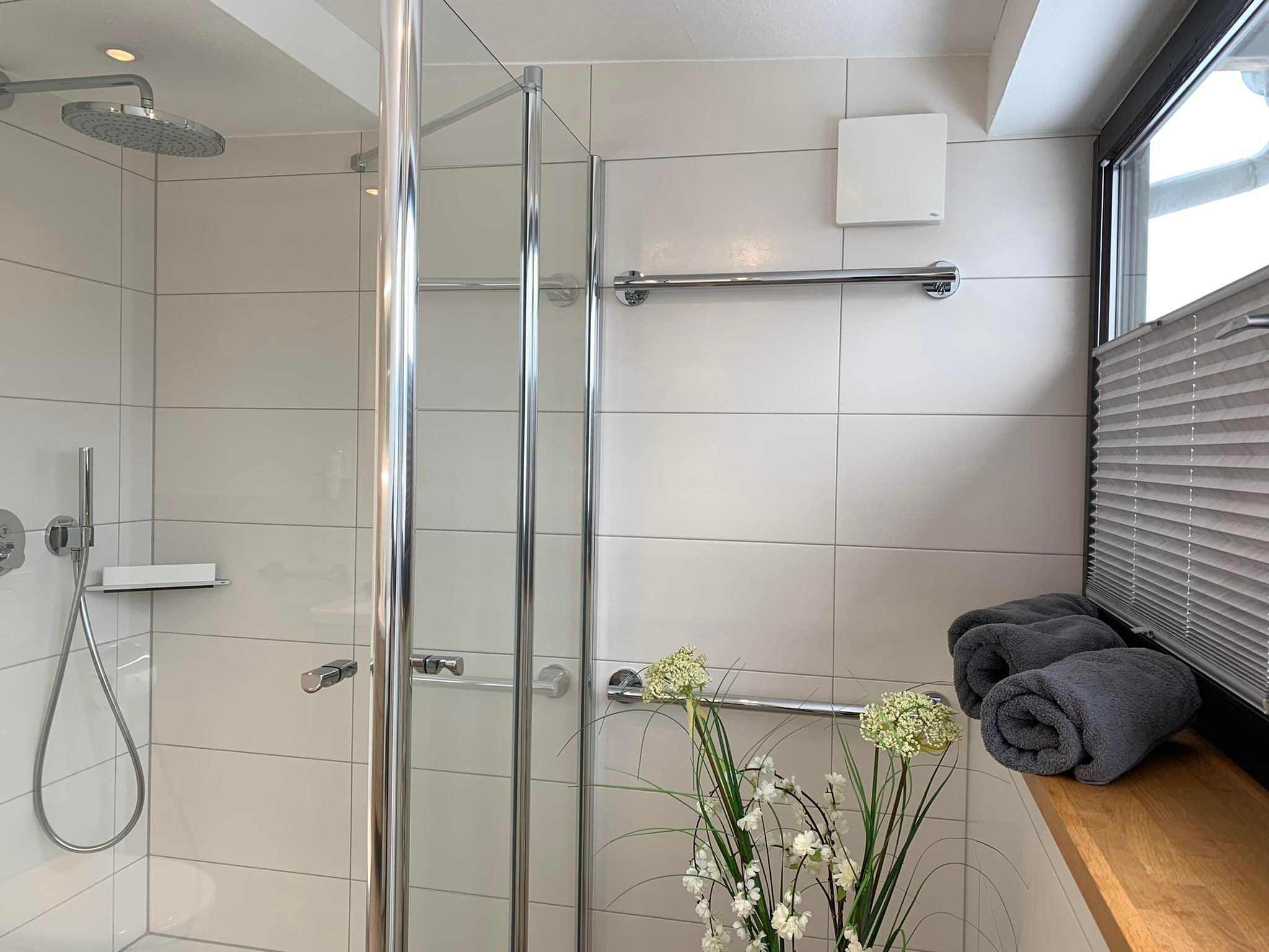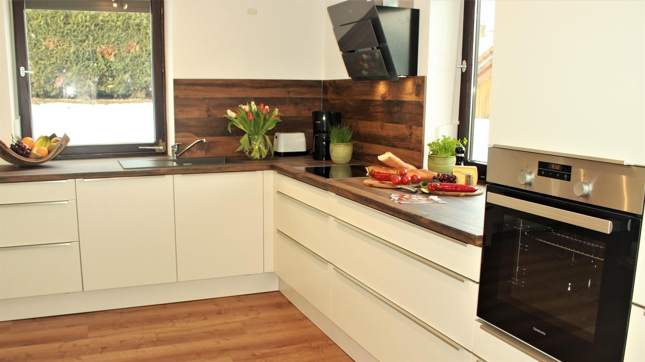 Im Erdgeschoss haben wir einen großen Eingangs Bereich mit Garderobe. Die offene Bauweise mit einer modernen Küche, einem gemütlichen Wohn-Essbereich mit TV – und Sound Bar sowie W – Lan ermöglichen ein entspanntes Wohngefühl.