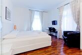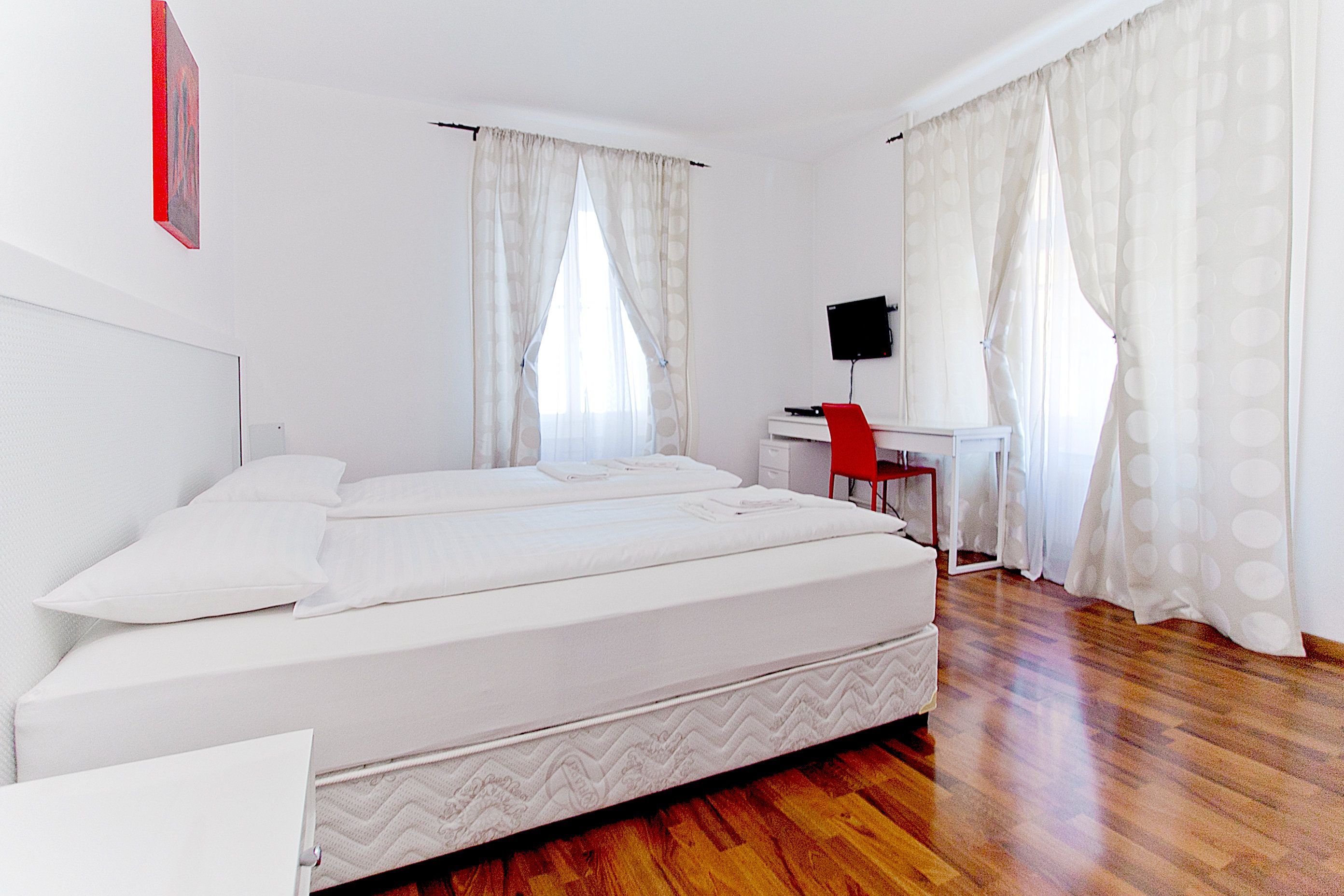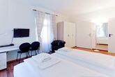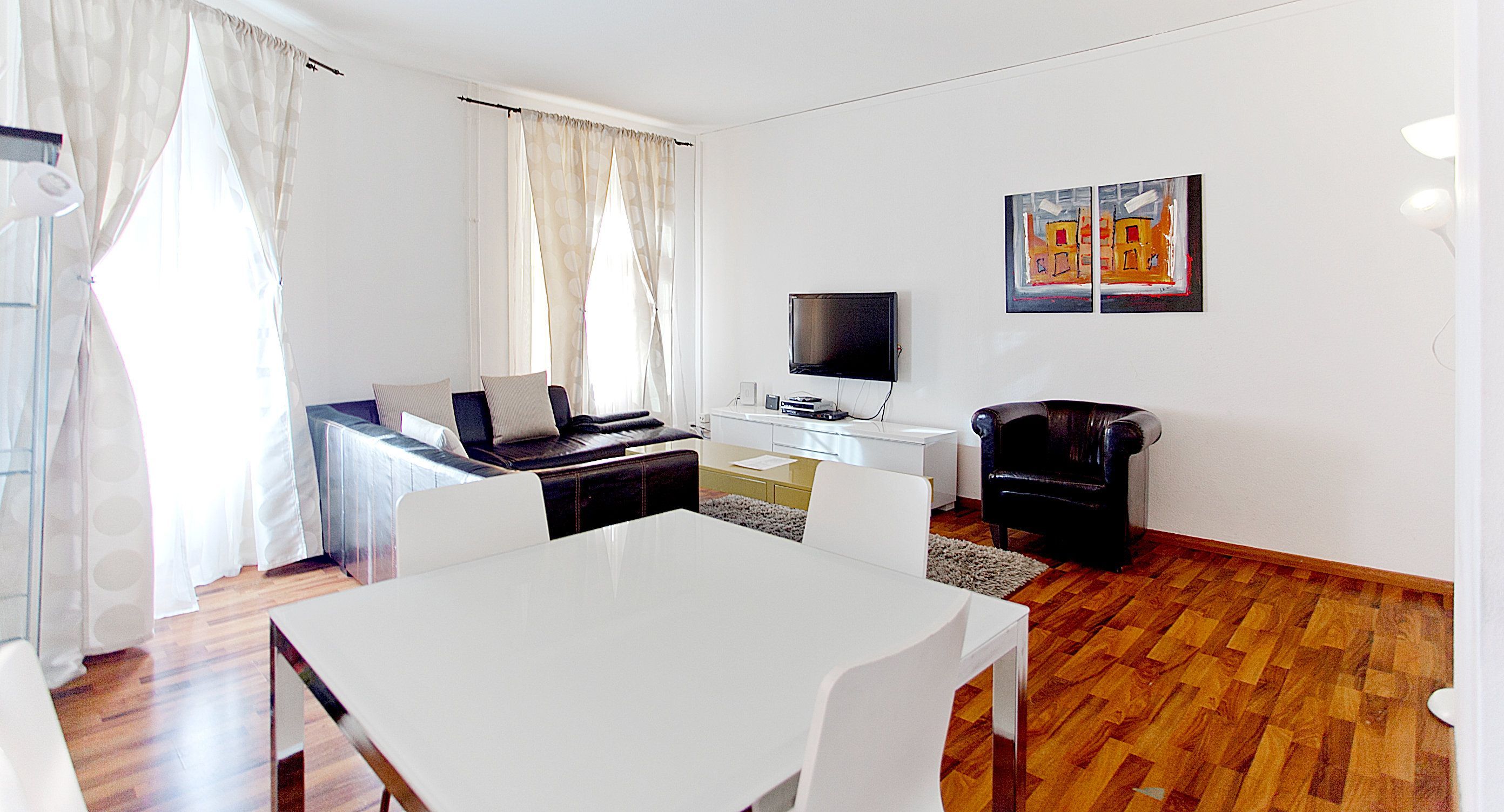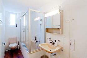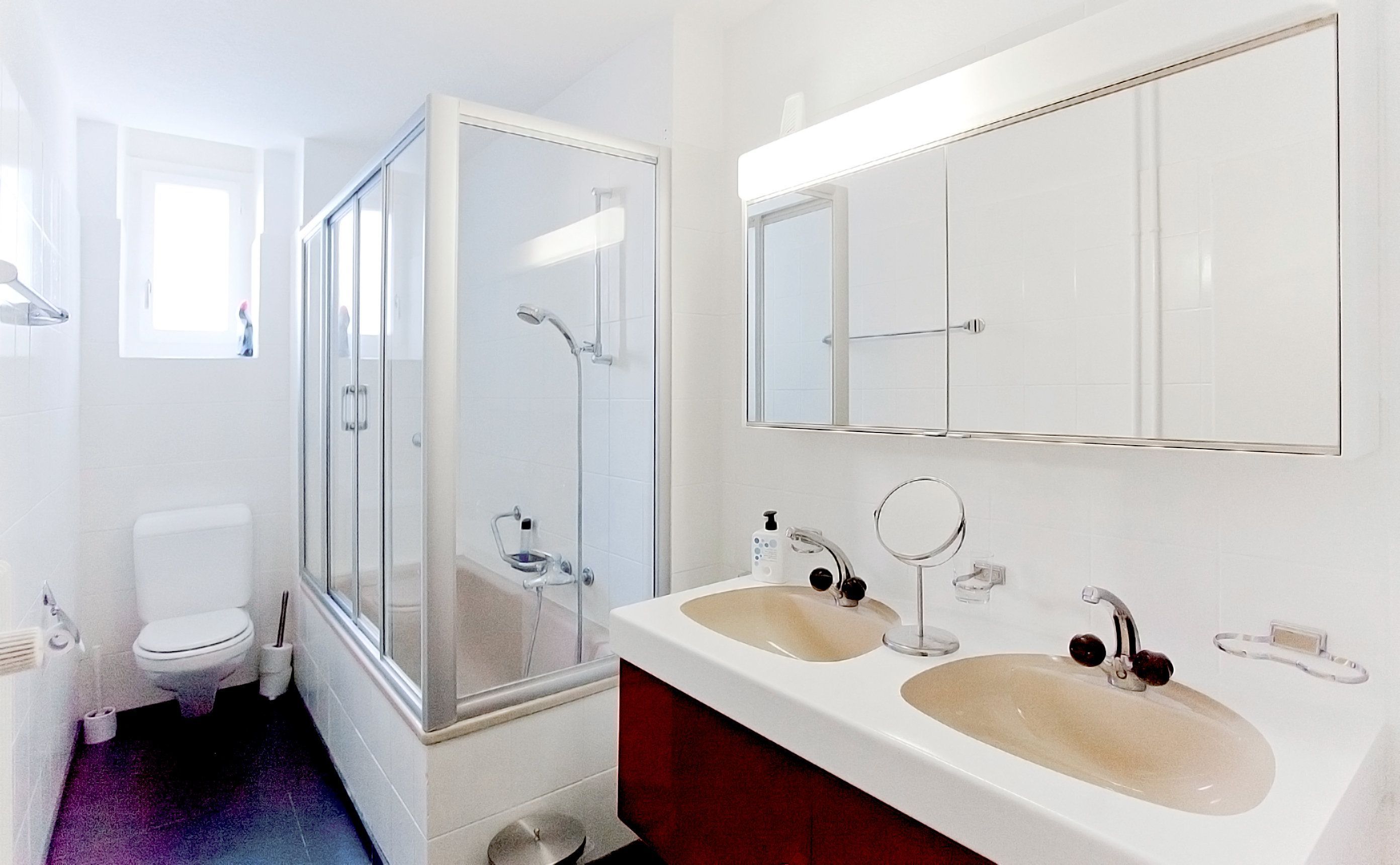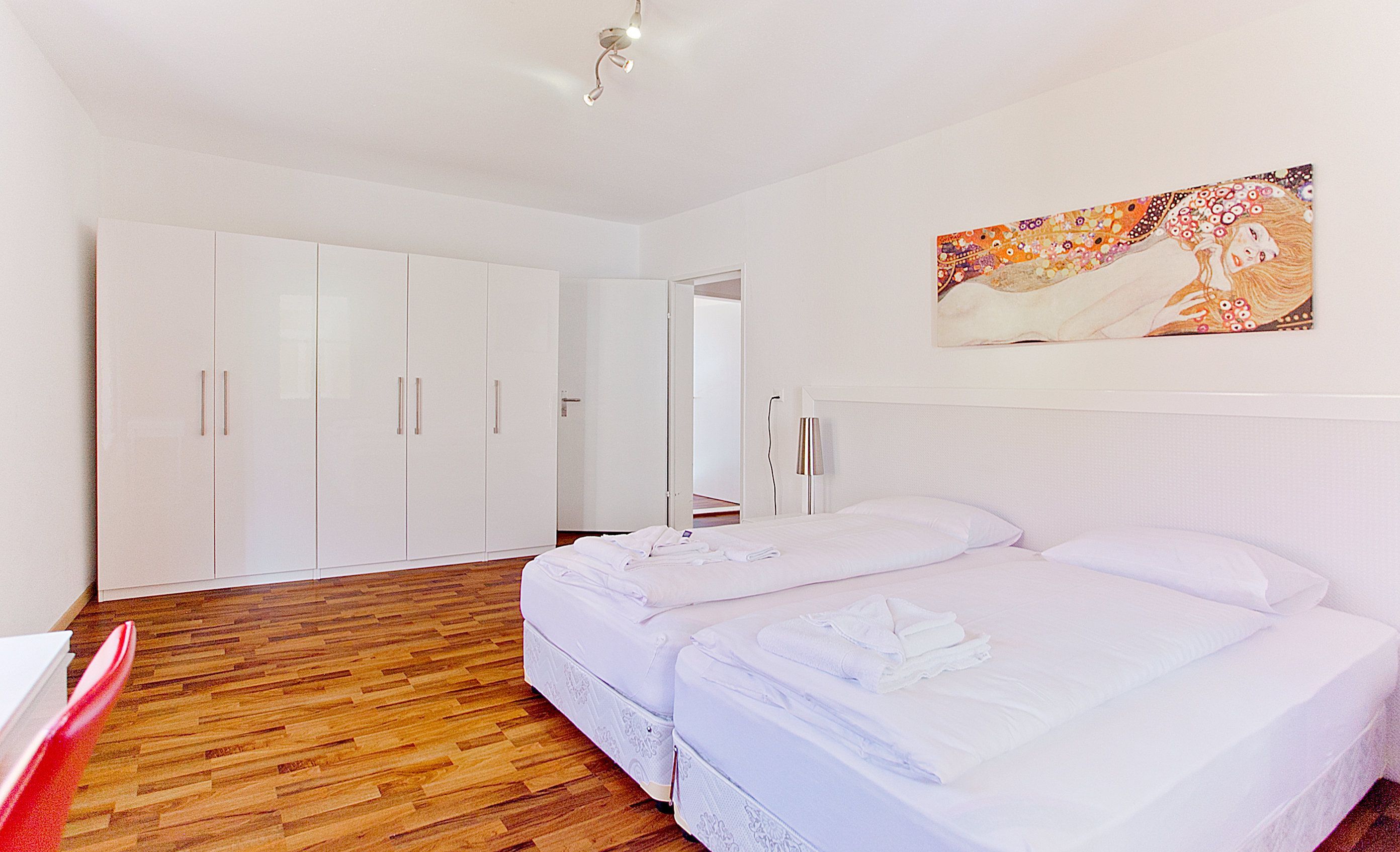 Die Küche ist ausgestattet mit einem Backofen, Herd, Kühlschrank, Kaffemaschine und teilweise mit Geschirrspülmaschine.Im Preis enthalten ist gratis WLAN, Festnetzanschluss mit unlimittierten Anrufen im Schweizer Festnetz sowie wöchentlicher Reinigungsservice mit Wäschwechsel. Ein Waschraum mit Gemeinschaftswaschmaschine und Tumbler steht gratis zur Verfügung.Grösse: ca. 45 Quadratmeter