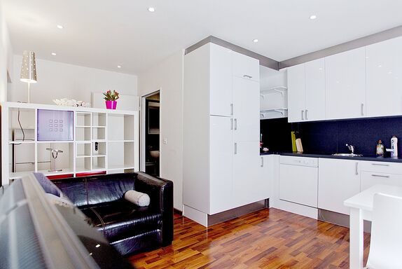 Unsere Comfort 2 Zimmer Apartmens verfügen über ein Schlafzimmer eingerichtet in warmen Farben, einem Wohnbereich mit voll ausgestatteter Küche sowie ein privates Badezimmer.