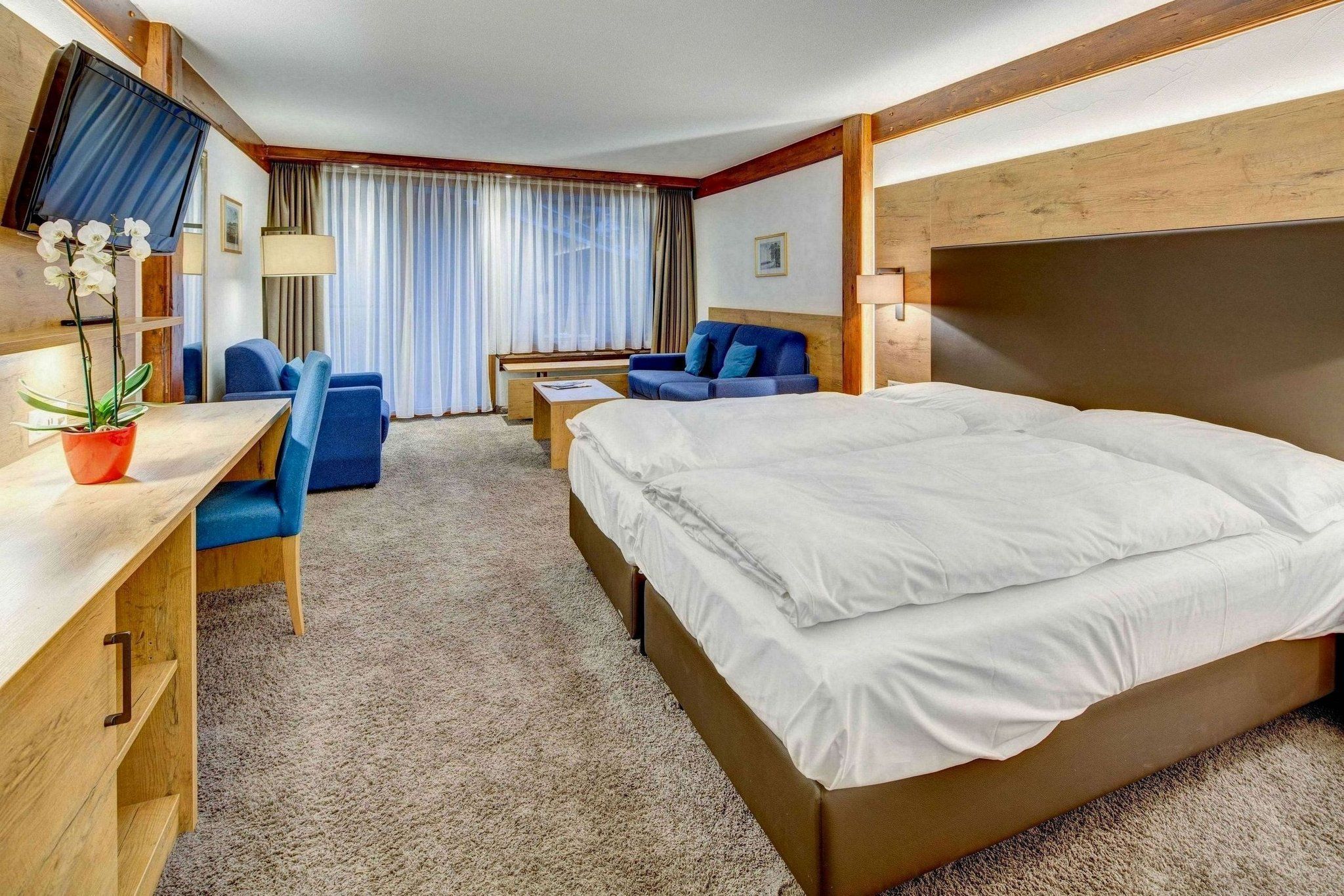 Das einladende Resort Hotel begrüßt Sie zu einem unvergesslichen Aufenthalt in Zermatt. Genießen Sie die Aussicht auf das berühmte Matterhorn von Ihrem großen Zimmer aus, lassen Sie sich Schweizer Köstlichkeiten im Restaurant schmecken und entspannen Sie danach im wunderschönen Wellness-Bereich. Ein beheiztes Salzwasserbecken ist nur ein Höhepunkt!