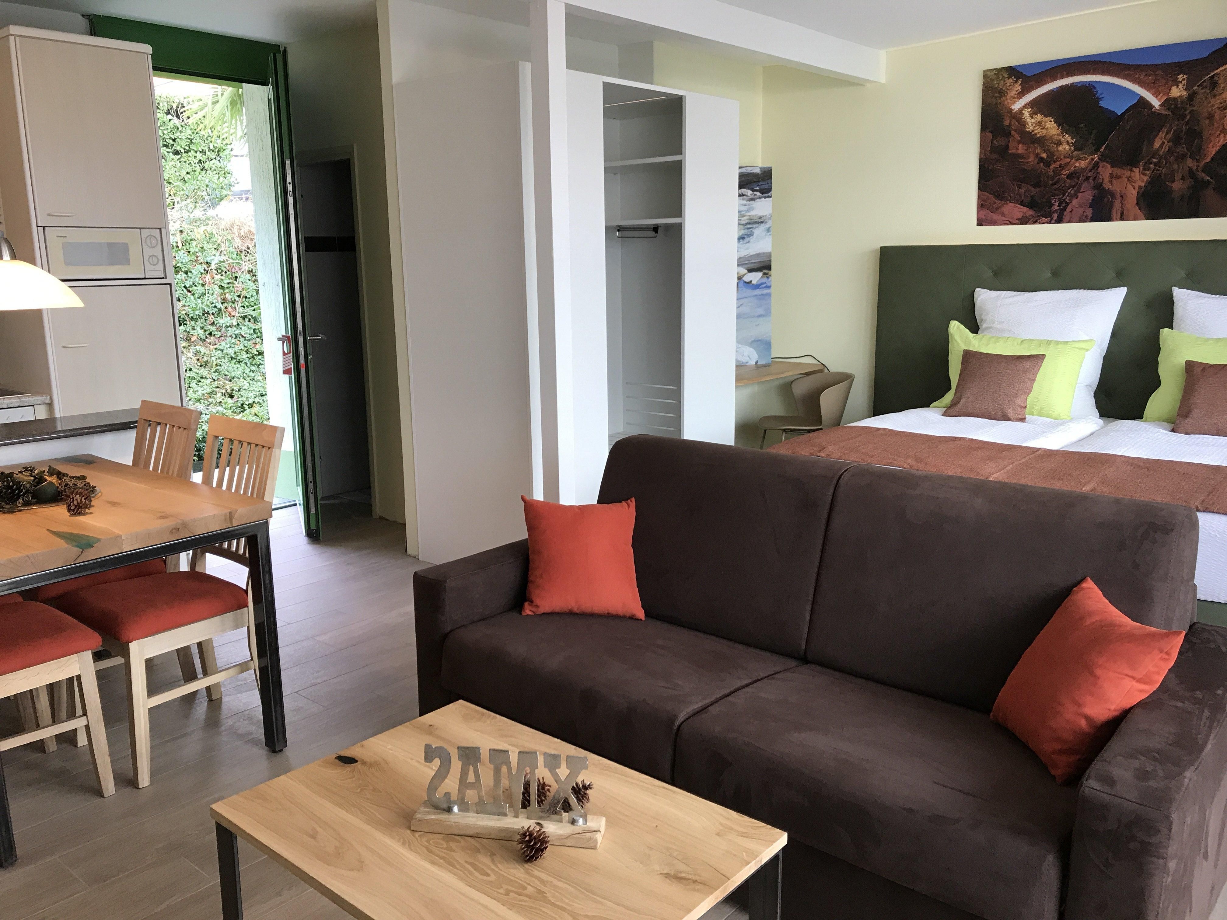 44 Zimmer und Suiten. Wöchentliche live Musik Events. Panoramarestaurant und Tessiner Grotto mit regionaler und mediterraner Küche. Grosser Kinderspielplatz Western Town. 2 Aussenpools (1 geheizt März bis Oktober). Kinderplanschbecken, Minigolfanlage. Eselweide. Indianer-Tipi. Gratis Parkplätze.