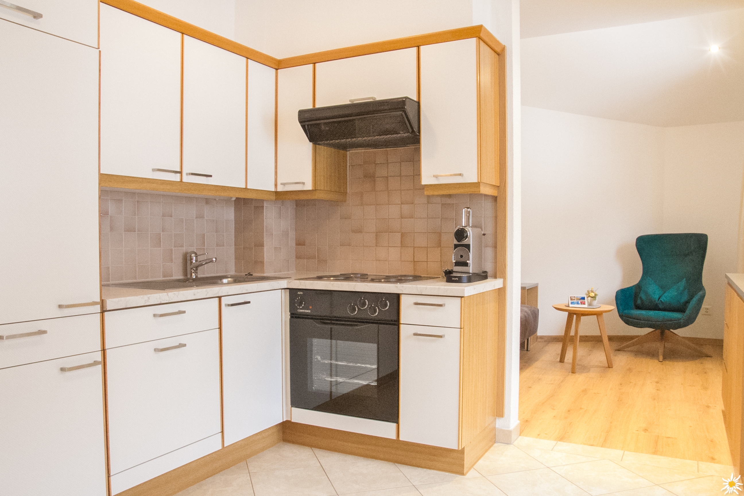 Im 2023 umgebautes ca. 45 m2 modernes Appartement mit Südbalkon, 1 Schlafzimmer, voll ausgestattete Küche, grosser Ess-und Wohnbereich. Dusche mit separatem WC, Haarföhn, 2 Sat-TV, Radio, Kaffeemaschine, Geschirrspülmaschine,Handtücher und Bettwäsche vorhanden. Kostenloses WLAN.