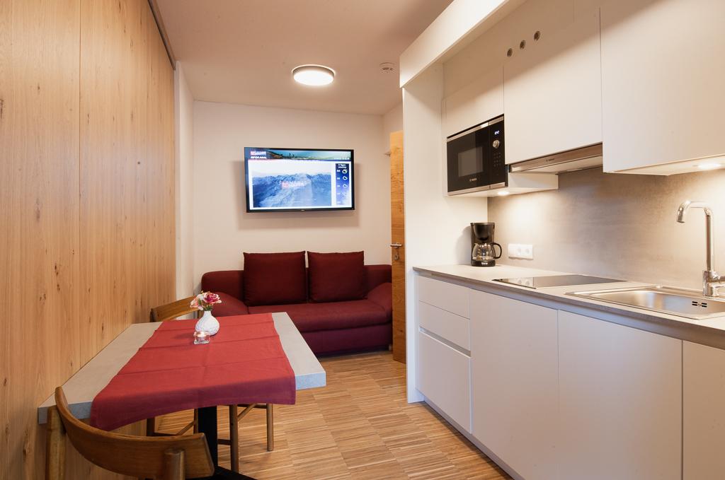 Appartement Typ 2 für 2-3 Personen mit 1 Doppelzimmer, 1 Wohnschlafzimmer mit Schlafsofa, ein Bad mit Dusche/WC, voll ausgestattete Küchenzeile, Kabel-TV