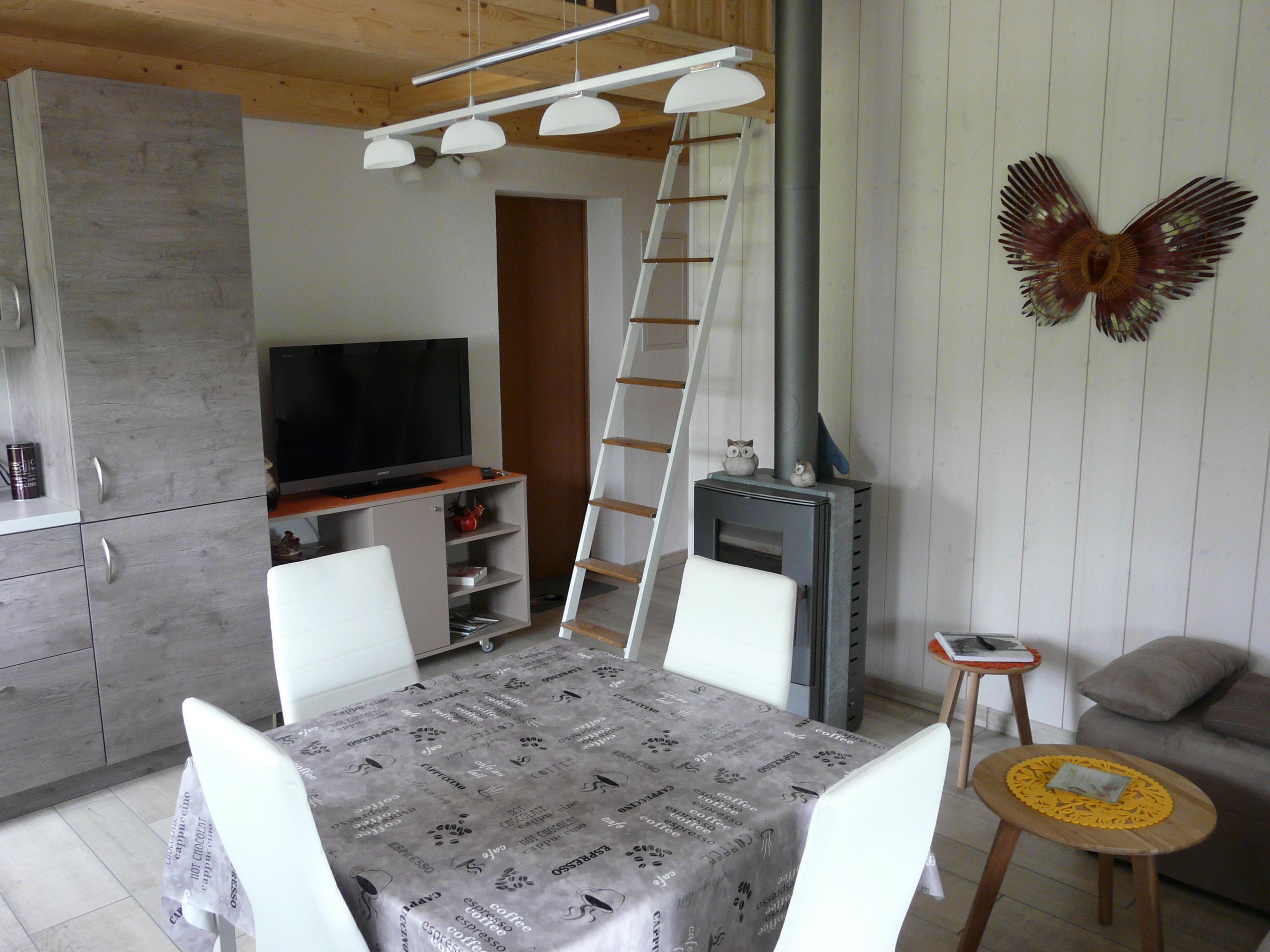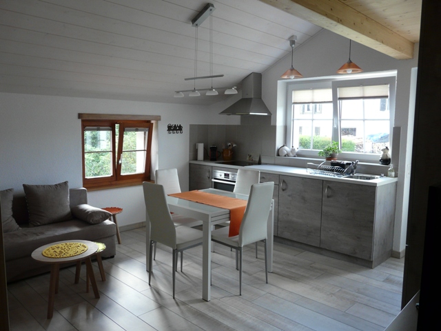 Neue 2 ½-Zimmerwohnung mit Zwischengeschoss mit 2 Schlafgelegenheiten mit allem Komfort, in einem alten Bauernhof. Ebenerdiger Eingang, Terrasse, Küche mit Induktionsherd, Mikrowelle, Nespresso-Kaffeemaschine, Kühlschrank, Waschmaschine, TV-Radio, Wifi.
