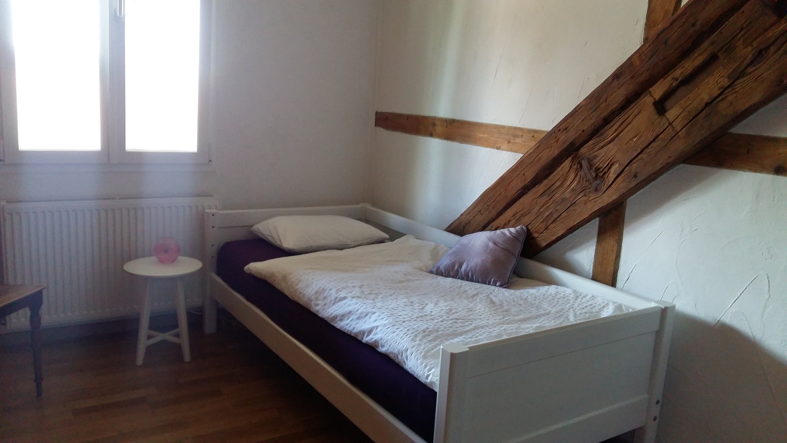 Verbringen Sie in Ihrer Ferienwohnung unvergessliche Momente. Erwachen Sie beim Gesang der Schwalben und geniessen Sie die einzigartige Aussicht auf das Delémont-Tal. Die Stille und Beschaulichkeit dieses Fleckchens Erde mitten in der Natur wird Sie unweigerlich verzaubern. Die Wohnung Serena im Hauptgebäude unseres Hofs, im 2. Stock, besteht aus zwei Doppelzimmern, einer komplett eingerichteten Küche (Kaffeemaschine Delizio), einem Bad und einem Wohnzimmer mit einer Südterrasse davor. Auf Wunsch stehen ein Schlafsofa für eine fünfte Person und ein paar Schritte entfernt ein weiteres Zimmer für eine sechste Person zur Verfügung. Kinder werden an unseren Zwergziegen Apache und Prunelle ihre Freude haben. In der freien Natur rund um den Hof gibt es verschiedene stille, verträumte Plätzchen zum Entspannen, Campen und Grillen. Wir sprechen Französisch, Deutsch und English. Nichtraucher-Wohnung. Haustiere auf Anfrage. Mit dem Jura-Pass können Sie die öffentlichen Transportmittel kostenlos benutzen und bei zahlreichen Aktivitäten in der Region von Vergünstigungen profitieren!