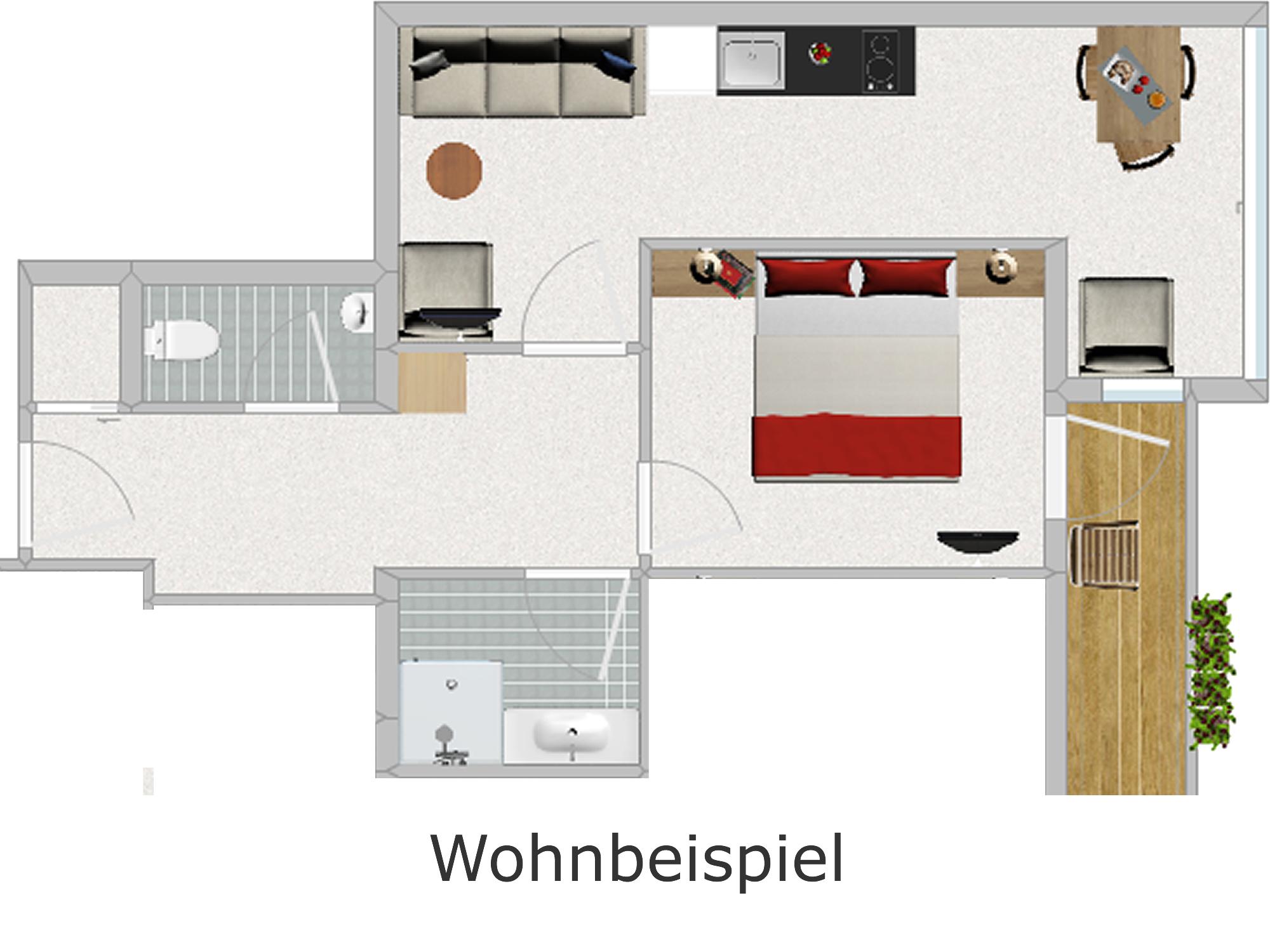 Appartement Typ 3 für 2-3 Personen: 1 Doppelzimmer, 1 Wohnschlafzimmer mit Schlafsofa, Badezimmer mit Dusche und WC, voll ausgestattete Küchenzeile, Kabel-TV.