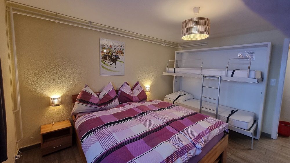 2-Zimmer-Wohnung, 1 x 2 Betten + 2 Kajütenbetten + Liegesofa. Sehr ruhige Lage. 5 Minuten vom Bahnhof, 2 Minuten zum Einkaufen. Mitten in den Weiden gelegen. Erdgeschoss, separater Eingang. Mit dem Jura-Pass können Sie die öffentlichen Transportmittel kostenlos benutzen und bei zahlreichen Aktivitäten in der Region von Vergünstigungen profitieren!