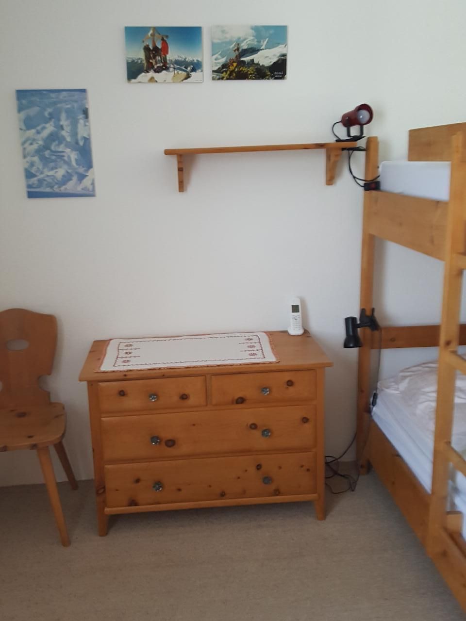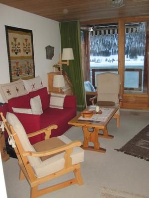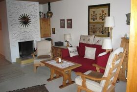 Moderne, komfortable 3-Zimmerwohnung (68 m2, 1. Stock) mit Balkon und Kamin an ruhiger, sonniger Lage mit schöner Aussicht. 2 Doppelschlafzimmer, separate Küche mit Geschirrspüler, Backofen, Kaffeemaschine, Toaster, Mikrowelle. Bad mit Badewanne und separatem WC, Waschmaschine im Haus. Fernseher, Radio und Telefon vorhanden. Sauna, Skiraum, Aufzug, Autoeinstellhalle, Parkplatz. Nichtraucherwohnung, Haustiere nicht erlaubt.