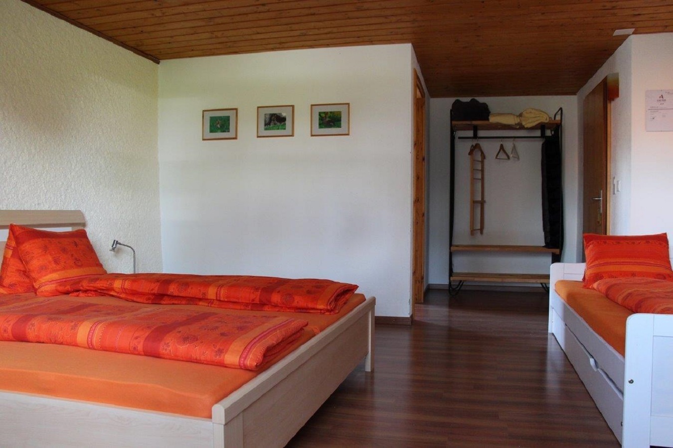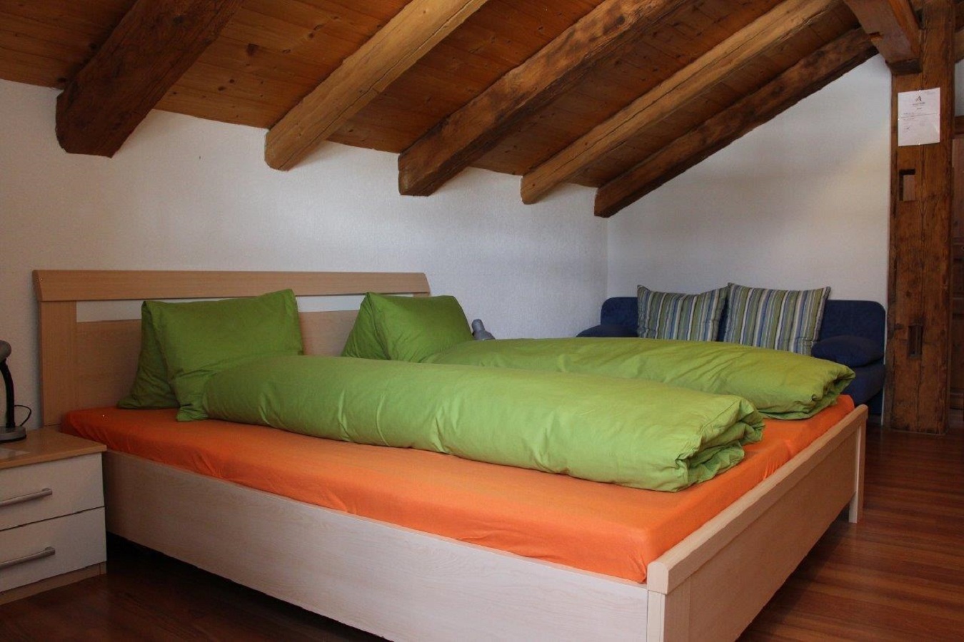 Die Bettwäsche ist im Preis inbegriffen. Ein Babybett kann auf vorherige Anfrage zur Verfügung gestellt werden. Haustiere sind nur nach vorheriger Anfrage und gegen einen Aufpreis von 10.- pro Tag erlaubt. Pferdeboxen auf dem Land ohne Weide CHF 25.- / Tag (mit Stroh und Heu), Pferdeboxen in der Herberge mit Weide CHF 30.- / Tag (mit Stroh und Heu). Kreditkarten werden nicht akzeptiert. Mindestaufenthaltsdauer 3 Nächte.