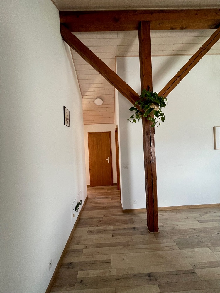 Willkommen bei Achoumé, in einer charmanten, 75 m2 grossen 3,5-Zimmer-Wohnung unter dem Dach. Das Wohnzimmer hat viel Cachet, mit Holz, mit Sicht auf die Berge von mehreren Fenstern und ein Entrée. Zur komplett eingerichteten, zum Wohnzimmer offenen Küche gehören: Esstisch, Teekessel, Kapsel-Kaffeemaschine mit offerierten Kapseln, Mikrowelle, Ofen, 4 Kochplatten, Pfannen und Töpfe. In den Schränken befinden sich Küchenutensilien und Geschirr für 4 Personen.