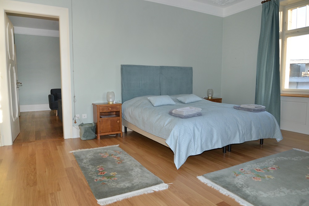 Über dem Erdgeschoss, in dem die Gemeinschaftsräume untergebracht sind, befinden sich zwei Etagen mit Zimmern. Eine ausladende Treppe bildet das Rückgrat des Ganzen. Jedes der sieben Zimmer ist individuell gestaltet, mit einer Mischung aus Familienmöbeln und moderner Einrichtung. Alle Zimmer sind sehr geräumig und verfügen über eine Sitz- und/oder Arbeitsecke. Die Bettwäsche ist frisch und von hoher Qualität. Eine wunderschöne Suite nimmt einen Teil der ersten Etage ein.
