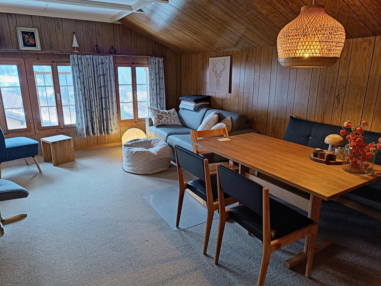 Ruhige Ferienwohnung für maximal 4 Erwachsene und 1 Kind im Dorfzentrum von Brienzwiler. Die Wohnung befindet sich im ersten Stock eines Traditionellen Holzbaus im Stil des Berner Oberlandes. Das Wohnzimmer ist gegen Süden ausgerichtet und bietet einen Herrlichen Blick auf das umliegende Bergpanorama. Ein moderner Pelletofen, Lesesessel sowie ein Schlafsofa im Wohnzimmer garantieren entspannende Momente nach einem Tag auf der Skipiste oder den Zahlreichen Wanderrouten in der Umgebung.