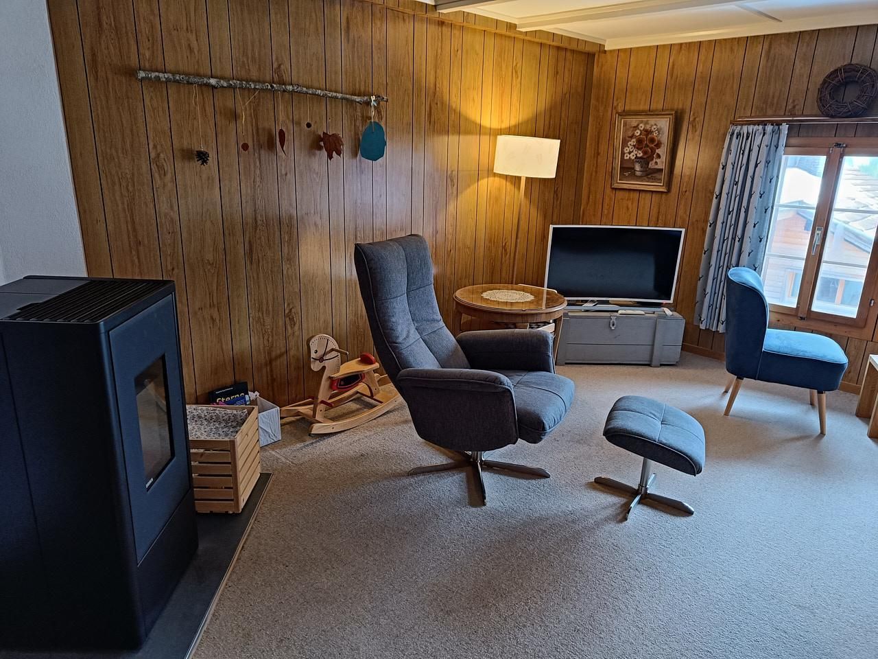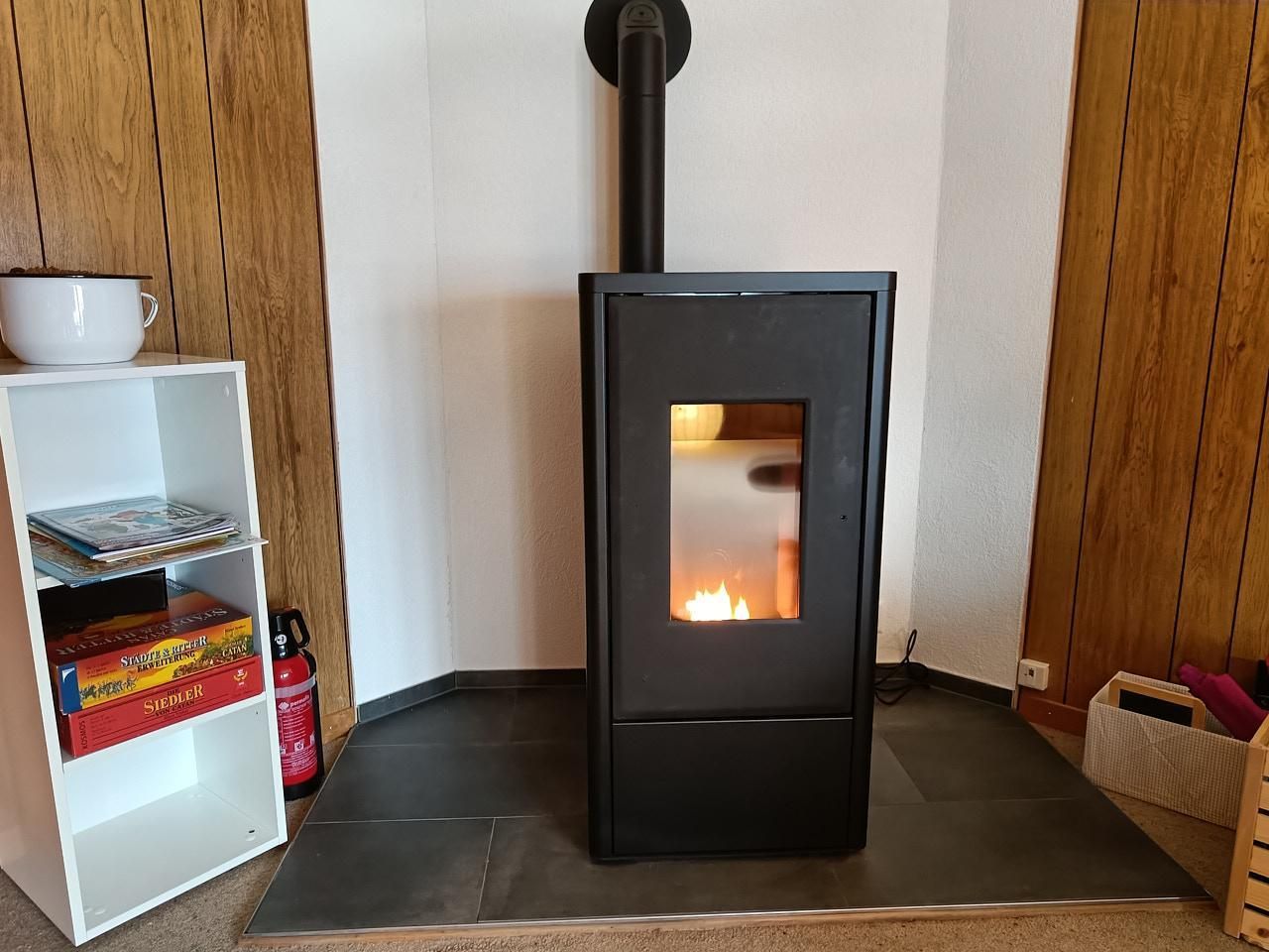 Sonstige Wohnzimmerausstattung (Wohnzimmer1): Pelletofen, Fernseher