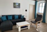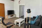 Wohnzimmer mit einem Schlafsofa für einen zusätzlichen Gast und einem Flachbildfernseher.