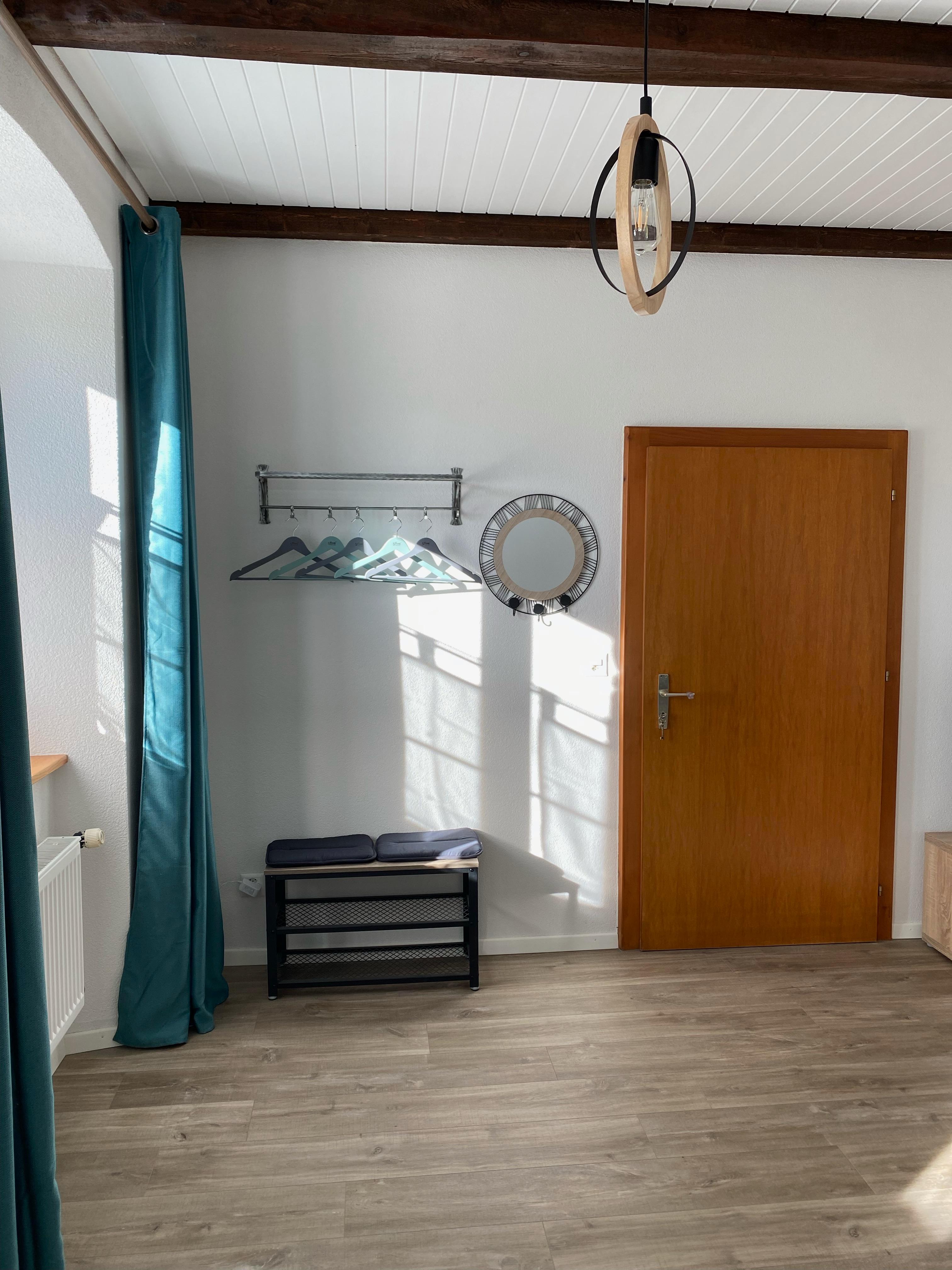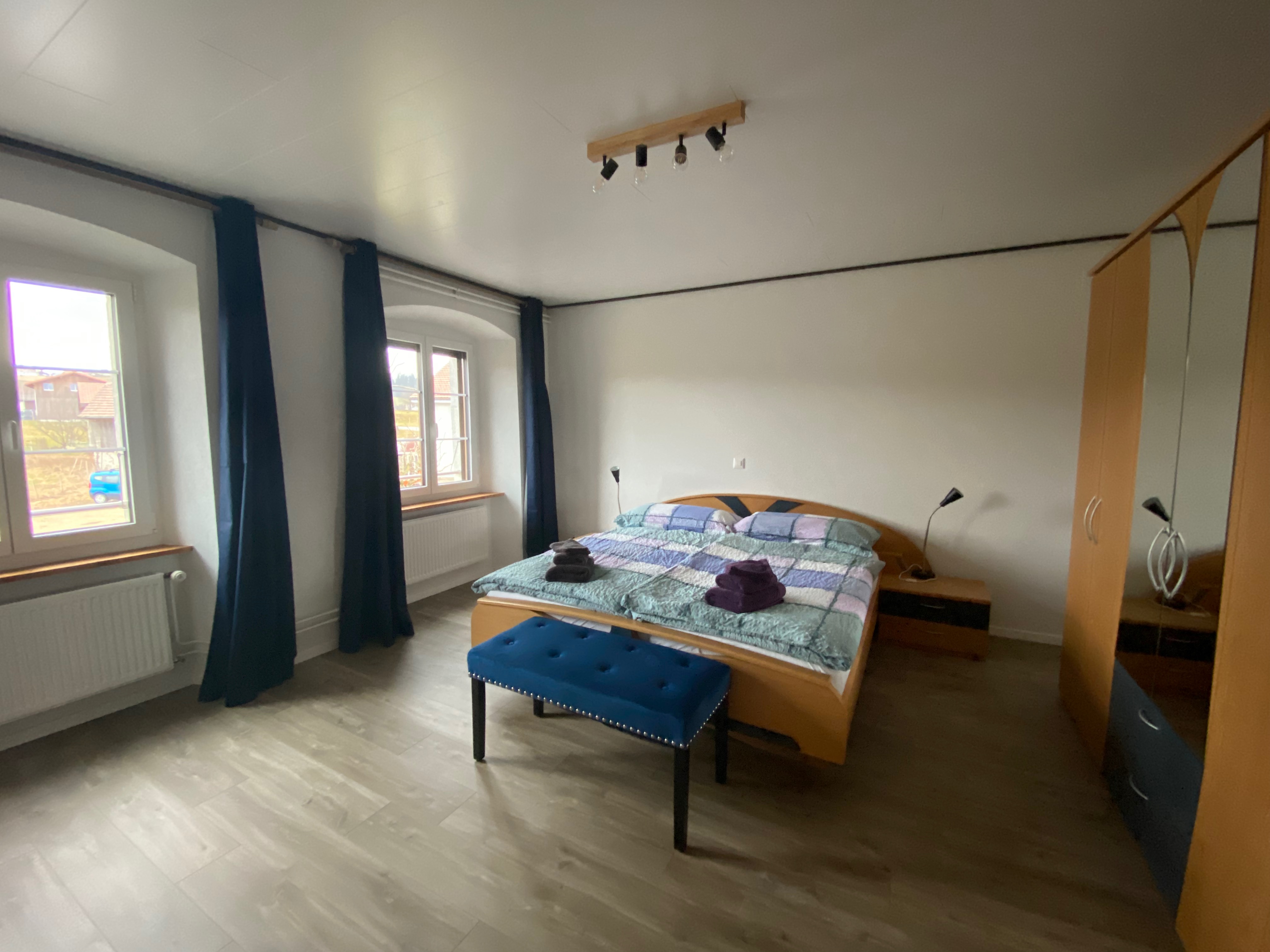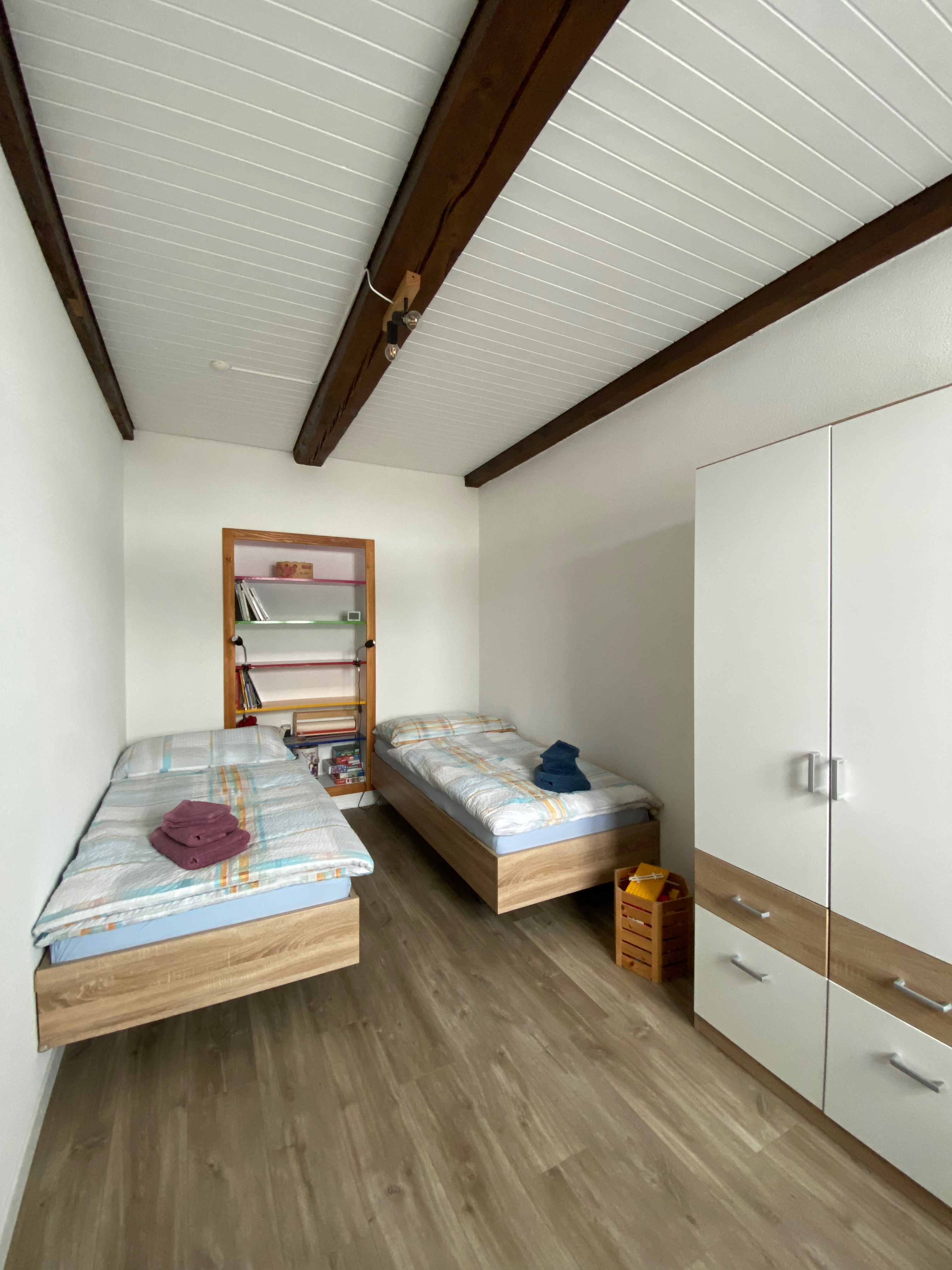Im Obergeschoss befindet sich das Elternschlafzimmer mit einem Doppelbett (180x200), einem grossen Kleiderschrank und auf Anfrage einem Babybett.