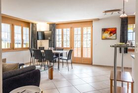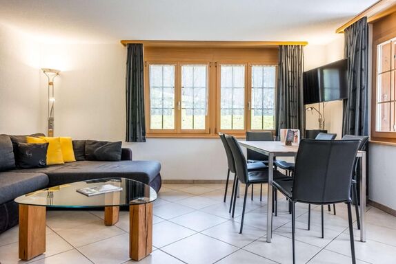Die gemütliche und mit 62m2 geräumige 2.5-Zimmerwohnung im Obergeschoss des Chalets verfügt über ein Schlafzimmer mit Doppelbett und ein Badezimmer mit Badewanne und WC. Die gut ausgestattete Küche mit Bar öffnet sich gegen einen grosszügigen Wohn- und Essbereich. Auf dem Süd-Balkon geniessen Sie die Aussicht auf die Grindelwalder Bergwelt.