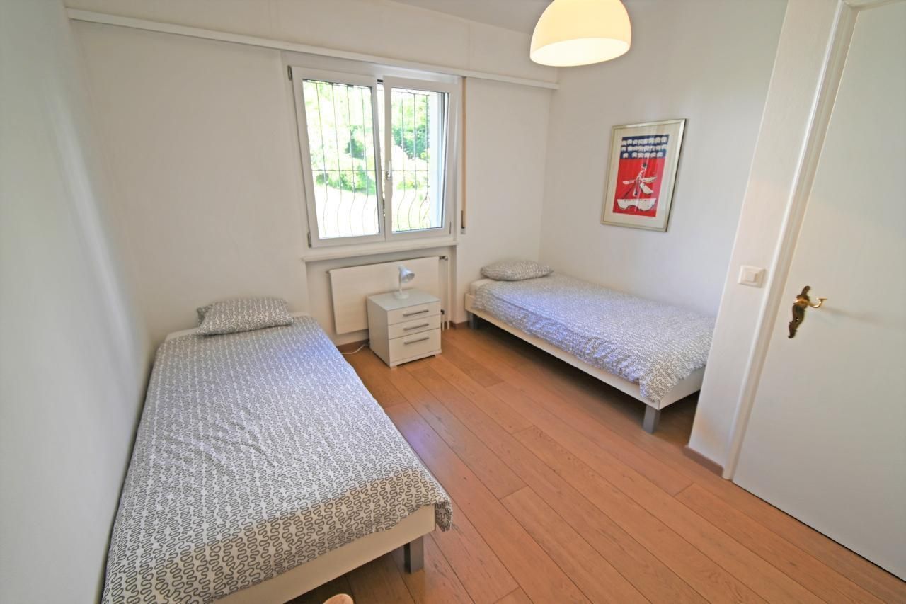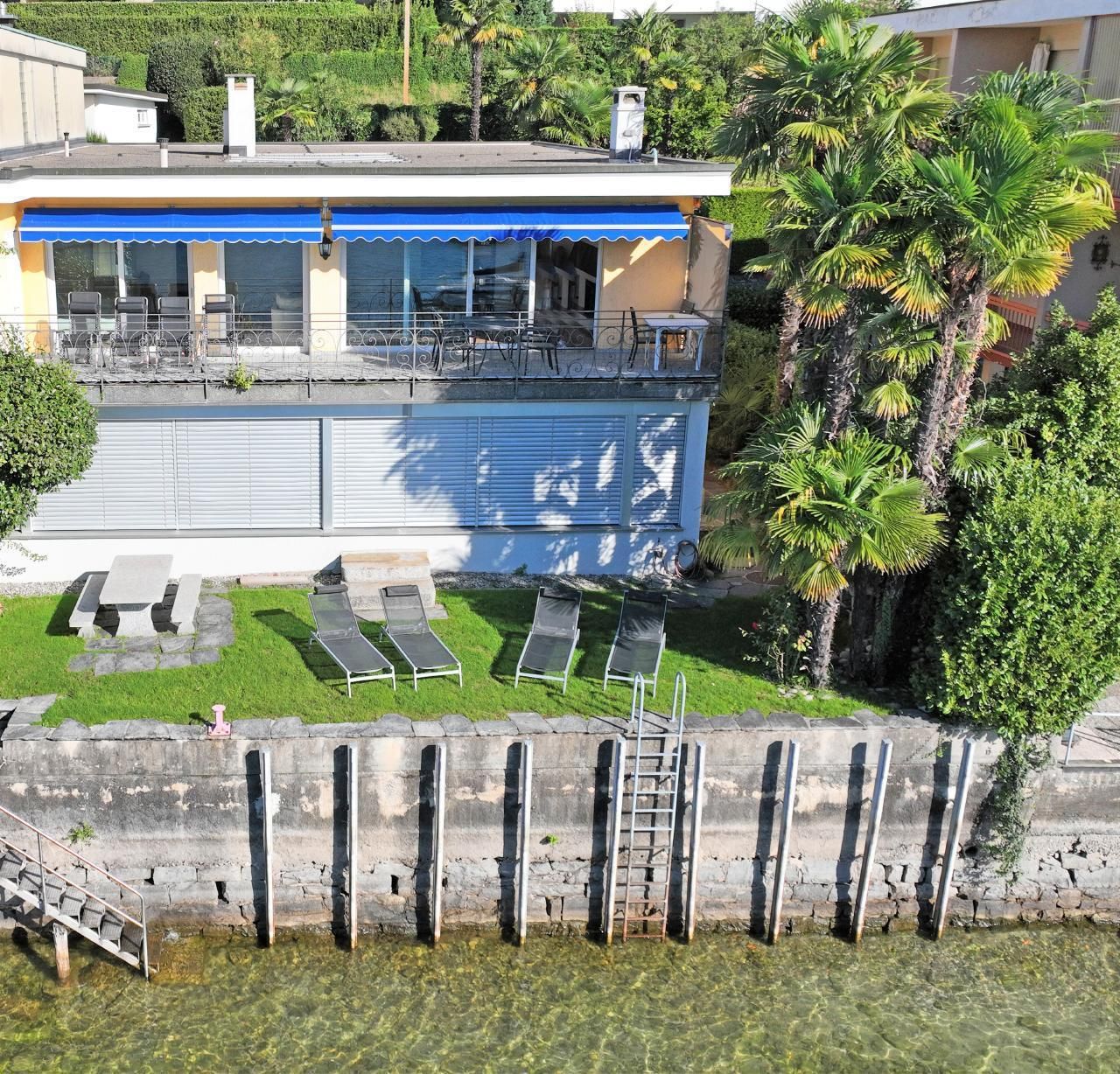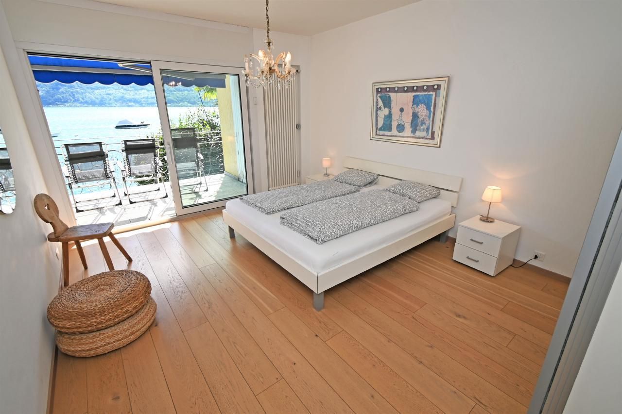 Top of the Top unter unter neuer Führung! Suchen Sie das Einzigartige? Dann haben Sie mit diesem Anwesen, welches in Locarno eine absolute Rarität darstellt, genau die richtige Wahl getroffen! Die neu renovierte Villa Genovese al Lago, welche zur exklusiven Alleinnutzung vermietet wird, befindet sich direkt am Lago Maggiore und ist in vielerlei Hinsicht etwas Aussergewöhnliches. Sie bietet: - Direkter Seezugang - Hallenbad - Direkt an der Seepromenade - Direkter See- & Bergblick - Nähe Bahnhof - Eigene abschliessbare Garage - Abschliessbarer Fahrradraum (Garage) - Eigene Boje Die großzügige, neu renovierte und lichtdurchflutete 5.5-Zimmer-Villa direkt am See, eröffnet Ihnen nicht nur den Blick auf das Seebecken sondern verwöhnt Sie zusätzlich mit einem atemberaubenden Blick über den Lago Maggiore und in die Berge. Und egal, ob Sie sich auf der Terrasse, im Garten oder im Haus aufhalten – Sie haben immer den wunderschönen Lago vor Augen. Wenn Sie also einen rundum entspannten Urlaub in einem stimmungsvollen Ambiente verbringen möchten, heißt die Villa Genovese al Lago Sie herzlich willkommen und bietet Ihnen komfortablen Raum mit 6 Betten. Die Villa Genovese al Lago befindet sich in einer privaten Zugangsstrasse, welche auch als See-Spazierweg dient. Von der abschliessbaren Garage aus – diese bietet genügend Platz für einen grossen sowie einen kleineren Wagen - führen ein paar Treppen direkt in die Villa. Und schon sind Sie da und der Lago Maggiore liegt Ihnen – im wahrsten Sinne des Wortes - zu Füßen. Das Wunderbare: In der Villa Genovese al Lago können Sie drinnen wie draußen leben – ganz nach Lust, Laune und Jahreszeit. Im Außenbereich stehen Ihnen neben der großzügigen Terrasse mit absoluter Privatsphäre, mit direktem Zugang zum und in den See, ein stimmungsvoller Gartensitzplatz mit Außenkamin zur Verfügung, wo Sie bei einem Aperitivo den Abend begrüßen und einen stimmungsvollen Sonnenuntergang erleben können. Im Innenbereich erwartet Sie ein komfortabler und grosszügiger Wohnbereich mit Flachbildfernseher (140 cm) mit Smart/TV, Netflix zum Einloggen, Youtoube etc., Bluewin/TV (inklusive aller deutschsprachigen Kanäle) sowie ein DVD Player. Und selbstverständlich steht Ihnen kostenloses Wlan zur Verfügung. Des Weiteren eine neue, offene und gut ausgestattete Küche mit anschliessendem Esszimmer, 1 Doppelschlafzimmer mit direktem Seeblick, 2 weitere Schlafzimmer, 2 Bäder sowie ein Abstellraum – ideal für Ihre Koffer - mit eigener Waschmaschine und Wäschetrockner. Haben Sie nach einer himmlisch ruhigen Nacht das Bedürfnis ins kühle Nass zu springen? Dies bleibt kein Traum: Sie wählen nämlich, ob Sie dies direkt im See oder im hauseigenen, ungeheizten Hallenbad (im Untergeschoss) ausführen möchten. Ist das nicht einfach nur einzigartig und aussergewöhnlich? Die Villa Genovese al Lago befindet sich direkt an der Seepromenade, an welcher sich auch einige Restaurants aneinanderreihen. Eben auch in diesem Punkt aussergewöhnlich: Wer interessiert sich danach um Promille. Ideal auch für Gäste, welche mit dem Zug anreisen möchten, da sich die Villa Genovese al Lago unweit des Bahnhofs befindet. Möchten Sie den Lago mit Ihrer eigenen Jacht erkunden? Kein Problem! Denn eine kostenlose Boje steht Ihnen ebenfalls zur Verfügung. Bitte beachten Sie, dass die Villa Genovese al Lago eine Nichtraucherunterkunft ist. Auf der Terrasse darf natürlich selbstverständlich geraucht werden. Und übrigens: Auch Ihr vierbeiniger Liebling ist herzlichst willkommen.P.S. Das ungeheizte Hallenbad steht unseren Gästen von 15.März bis Ende Oktober zur freien Verfügung.