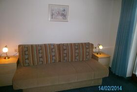 Gemütlich eingerichtetes Appartement mit 1 Wohn- Esszimmer mit ausziehbarer Doppelschlafcouch (Schlafmöglichkeit für die 5. und 6. Person) mit Dusche/WC, Föhn, Balkon, Sat/TV. 1 Doppelzimmer mit Dusche/WC, 1 Doppelzimmer mit Badewanne/WC, dieses Zimmer kann über das zweite Doppelzimmer bzw. durch einen eigenen Zugang vom Hausgang aus erreicht werden. Kleine Küche mit 2-Plattenherd , Backofen, Kühlschrank mit Gefrierfach, Geschirrspüler, Mikrowelle, Kaffeemaschine, Wasserkocher uvm.