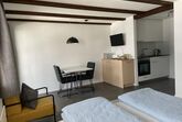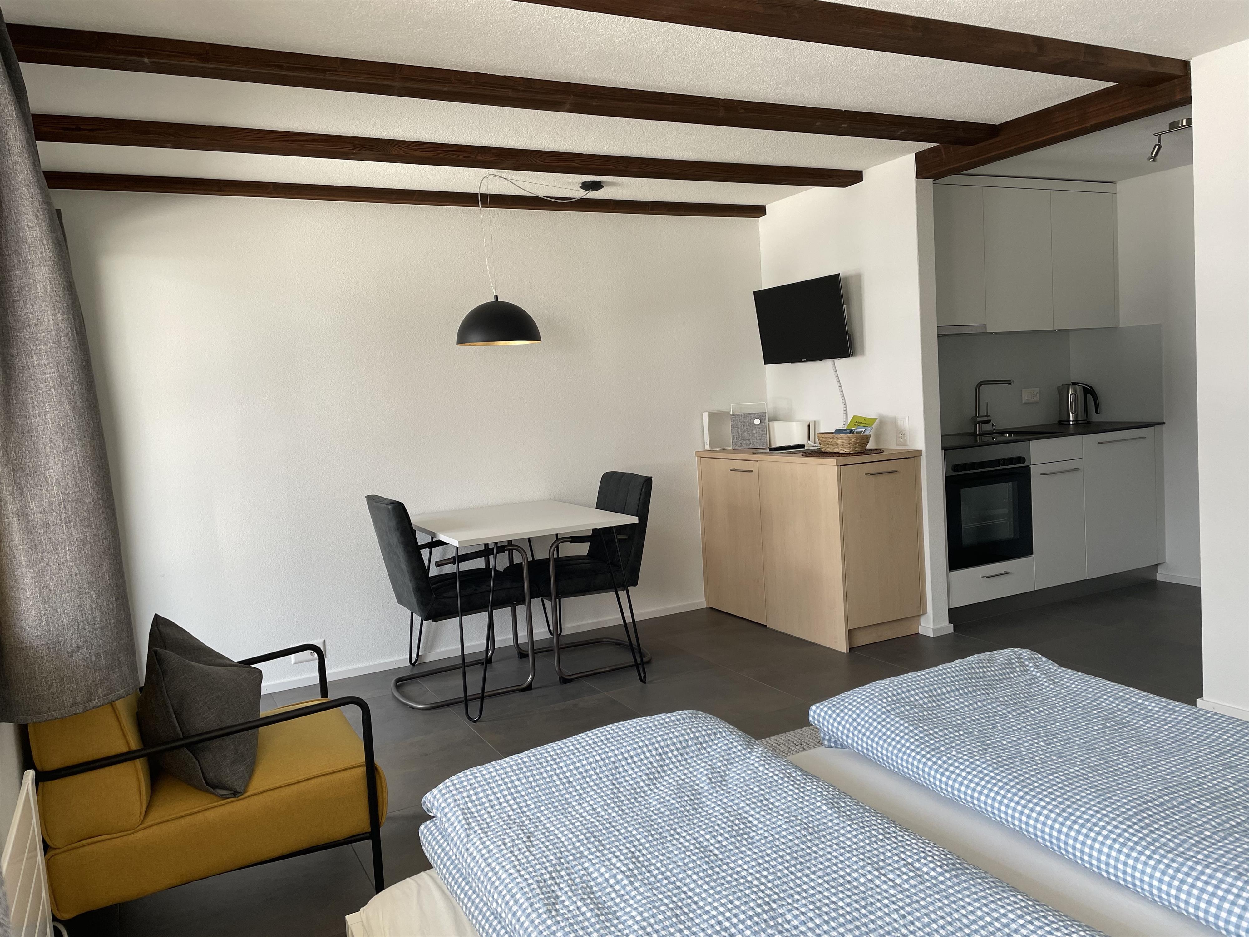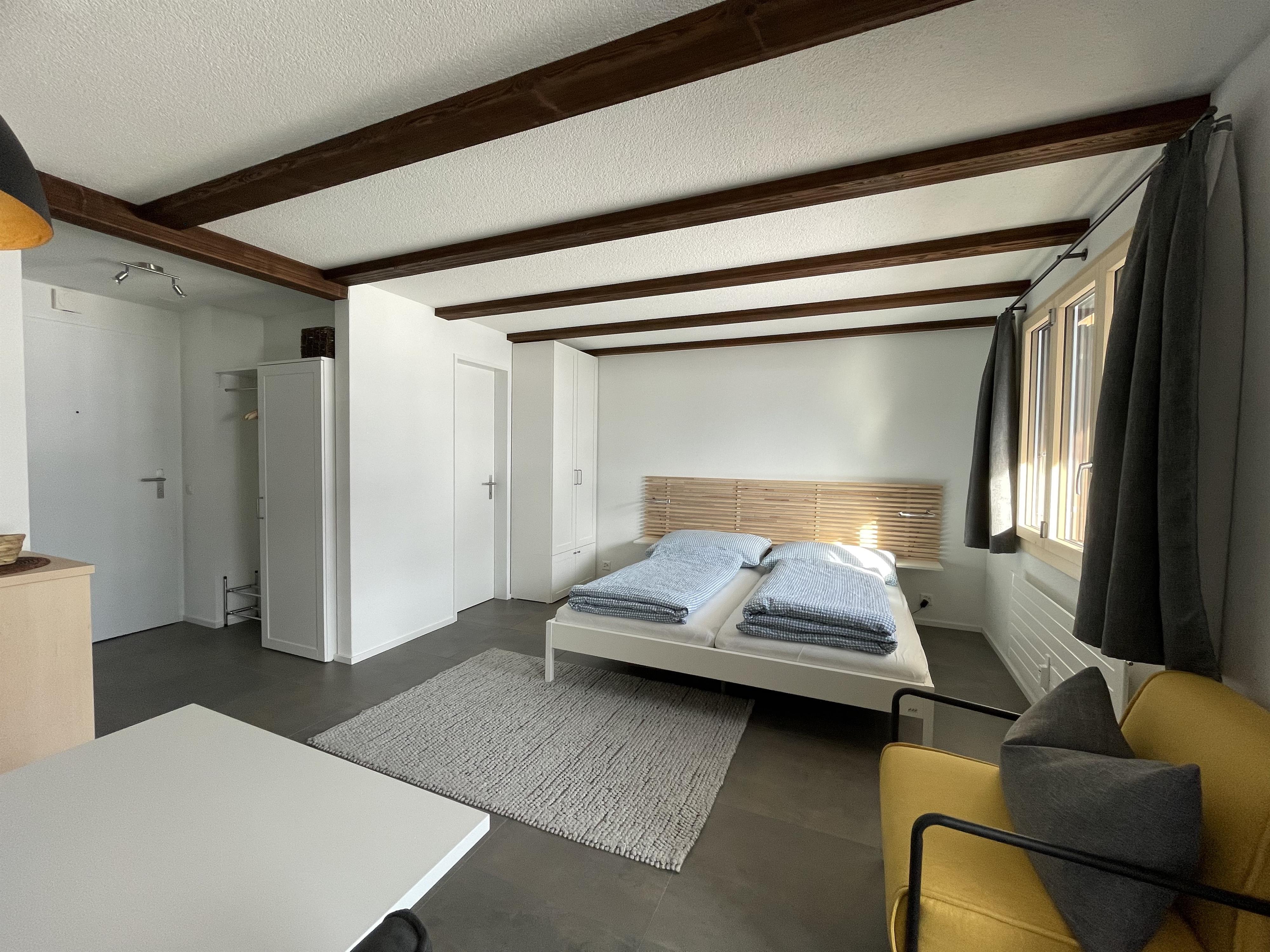 1-Zimmerwohnung im 1. Stock (28 m2) an zentraler Lage. Schlafzimmer, Dusche/WC, TV/Radio, Balkon, Parkplatz. Haustiere nicht erlaubt. Nichtraucherwohnung.