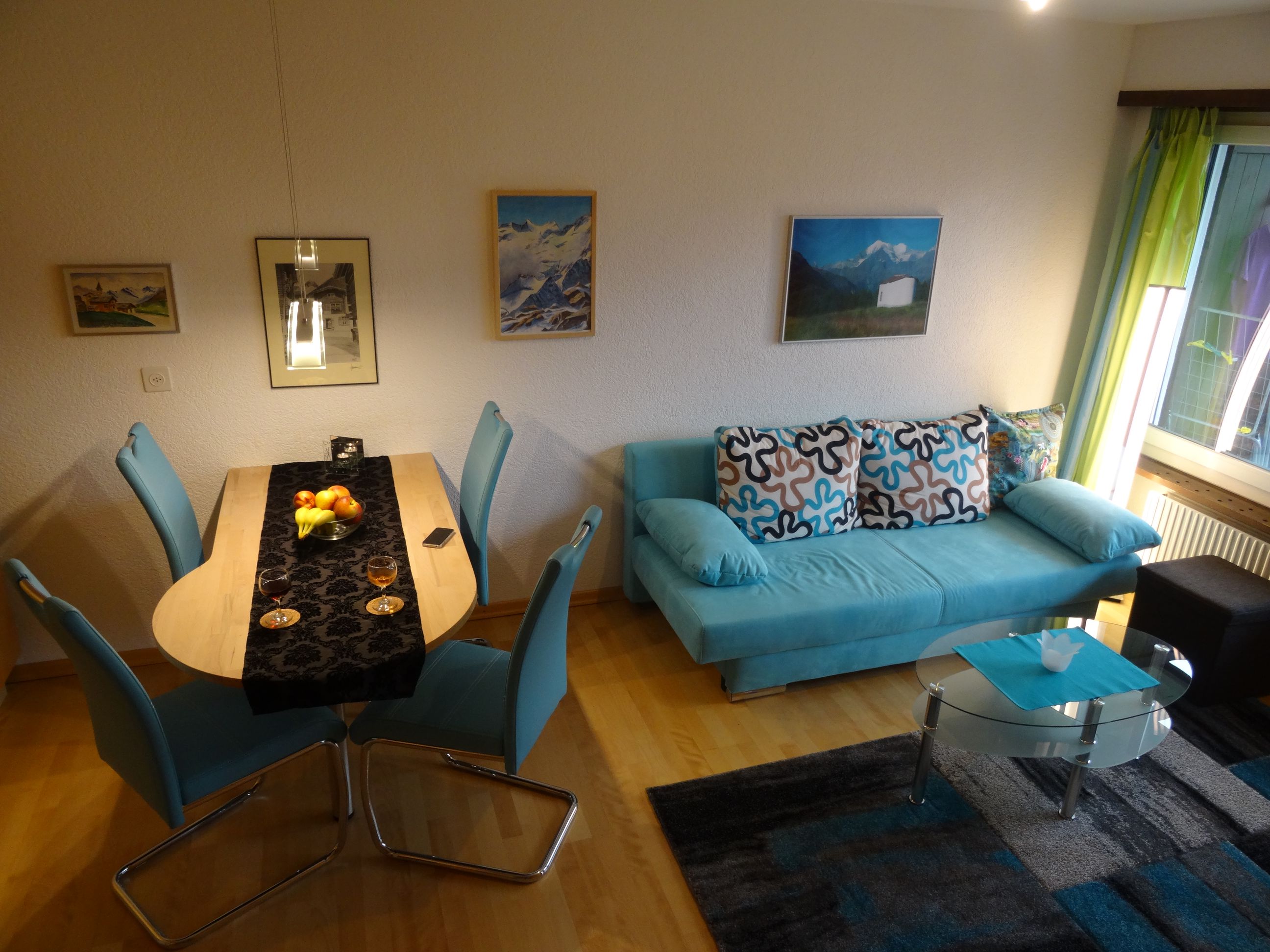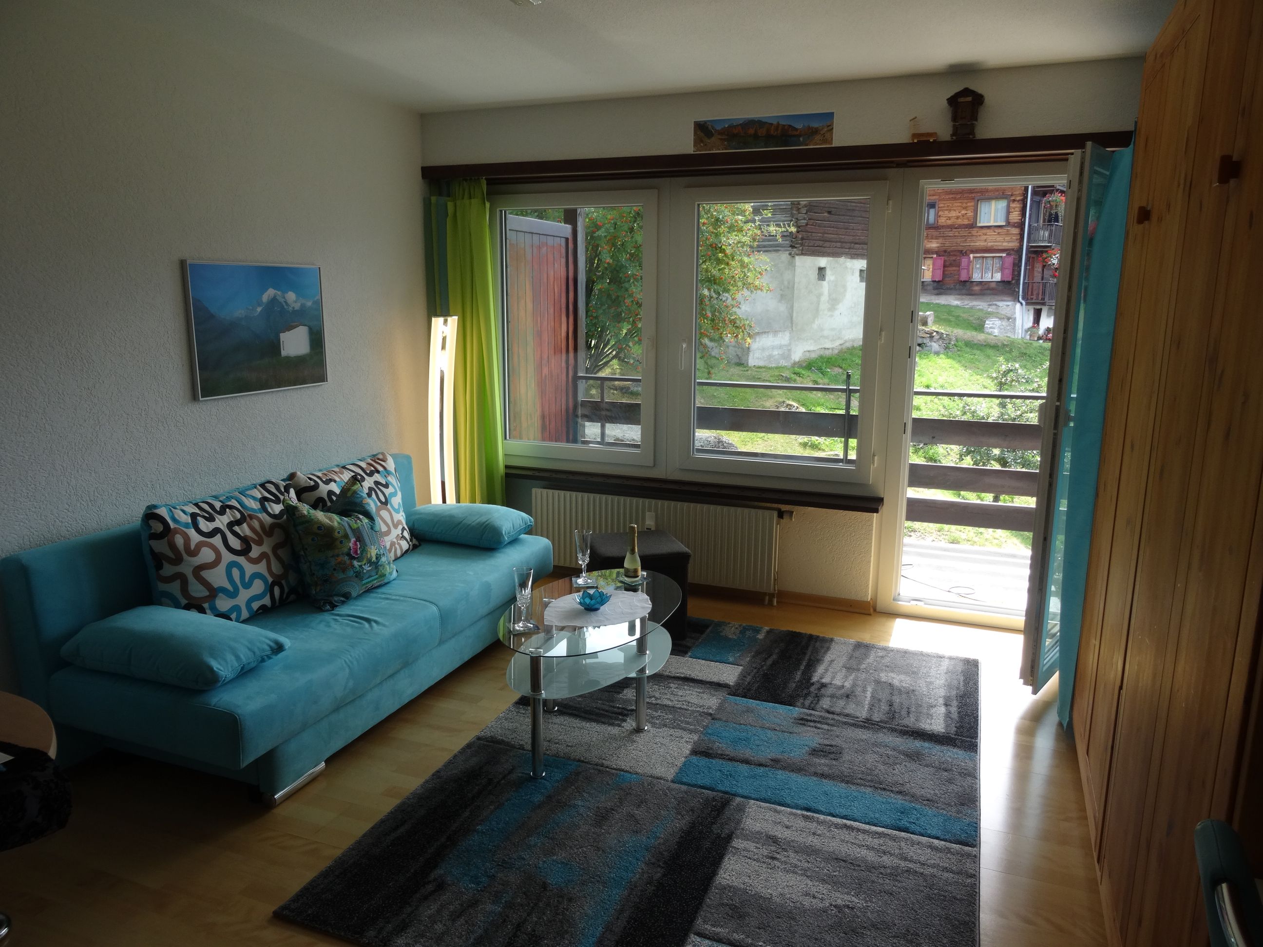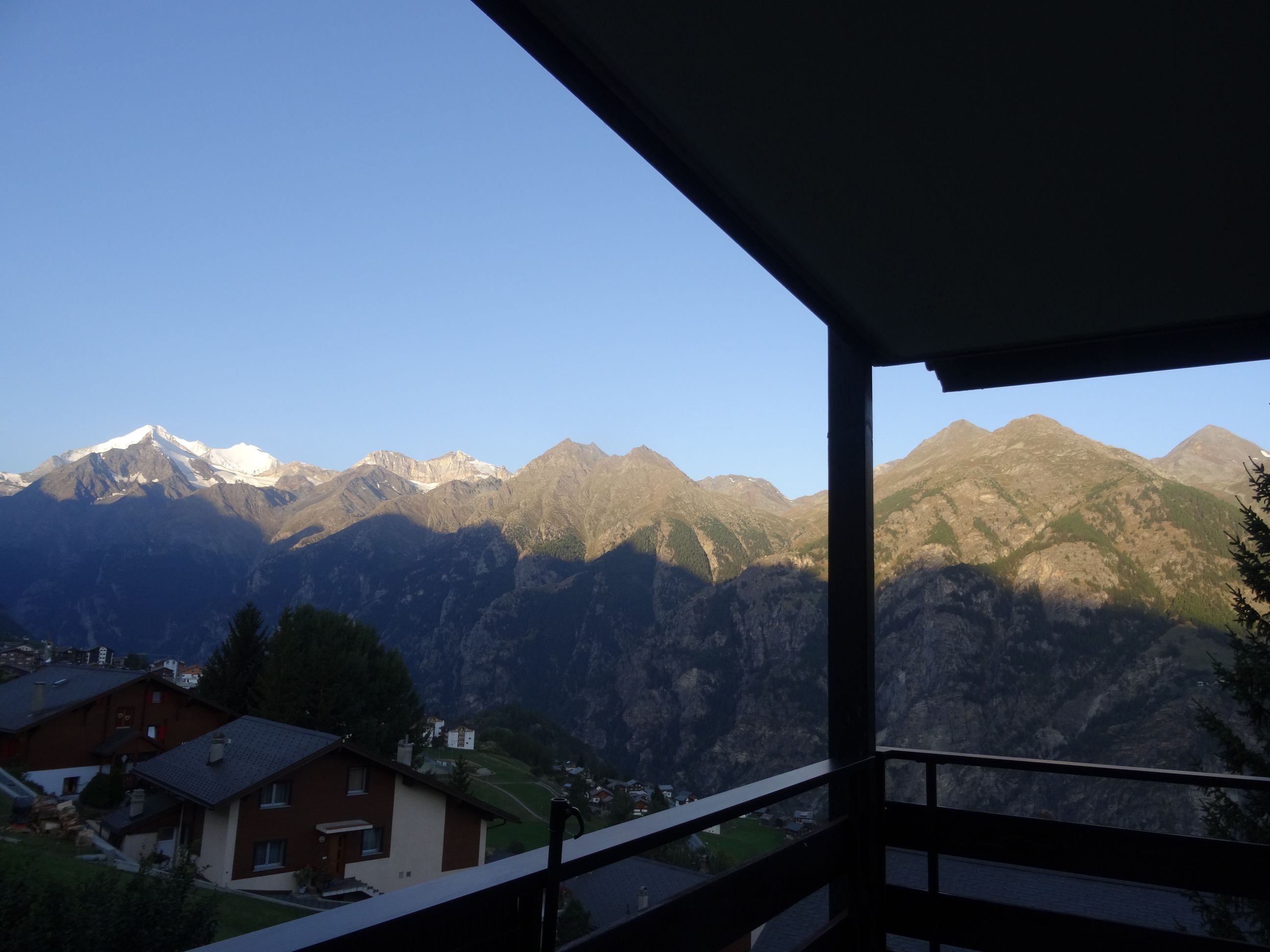 Sehr schönes Studio mit sensationellem Panorama, absolut ruhig (Haus Silence). Viel Platz tagsüber dank Schrankbetten und zahlreichen Einbauschränken, Süd-Balkon, Sat-TV, Kaffeemaschine, Geschirrspüler, Dusch-WC, Tisch-Tennis- & Ski-Raum. Ab Hannigalp-Piste mit den Skiern bis vor die Haustür. Waschmaschine, Tumbler & Trockenraum. Nichtraucher-Wohnung.
