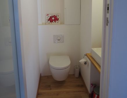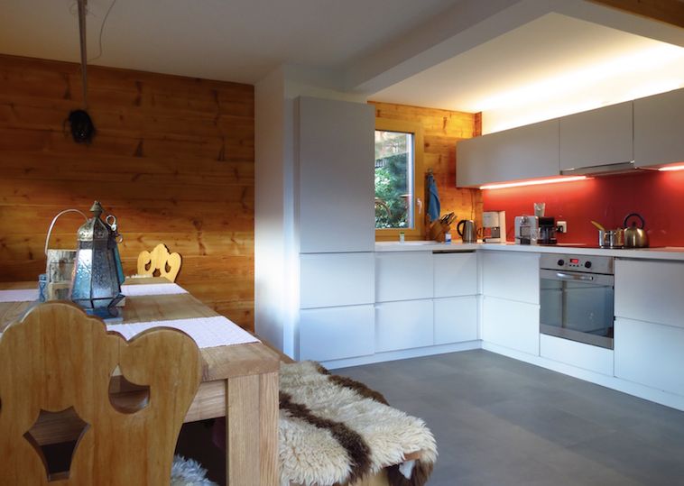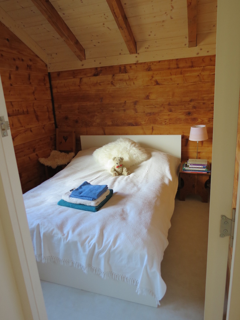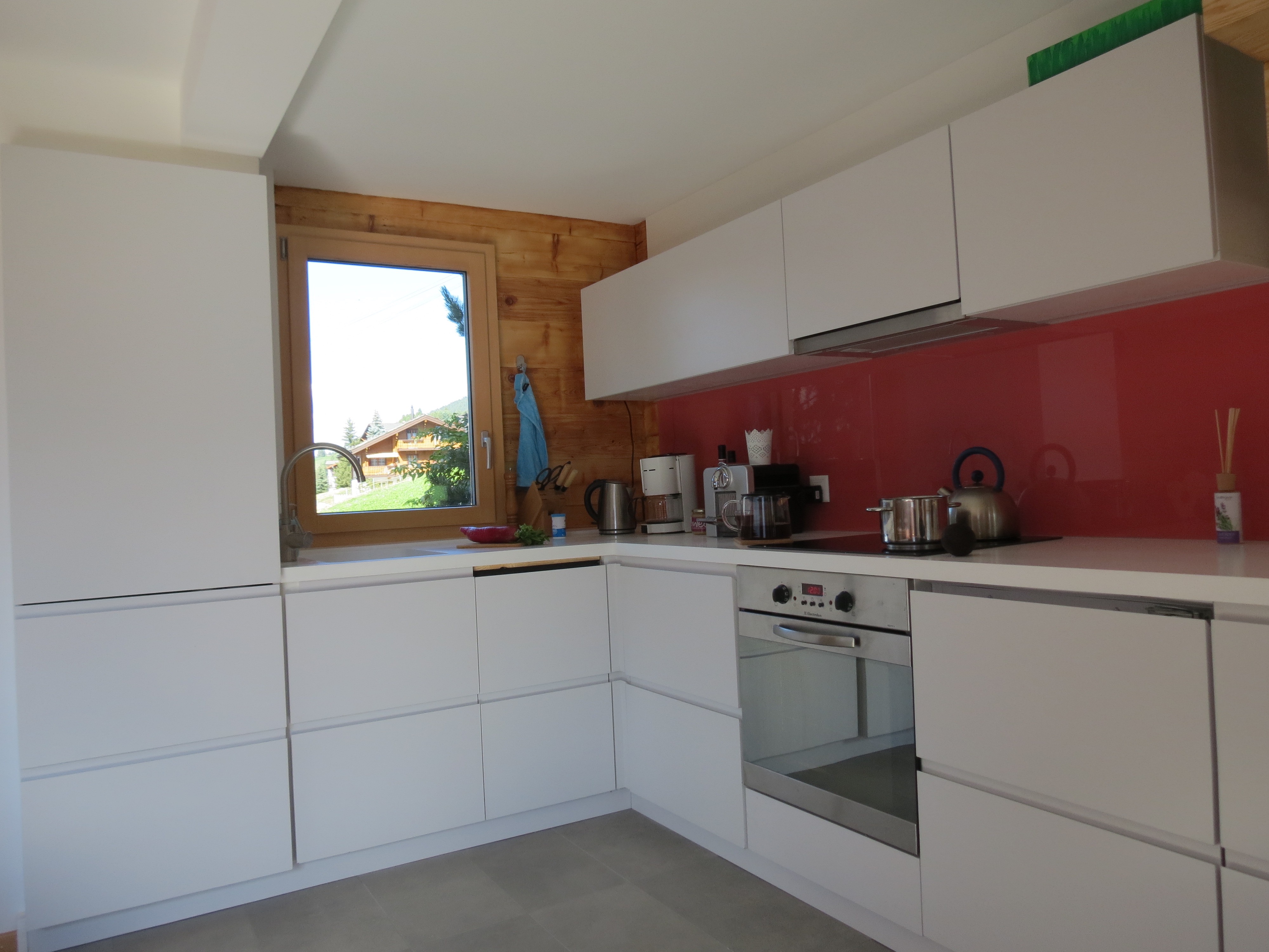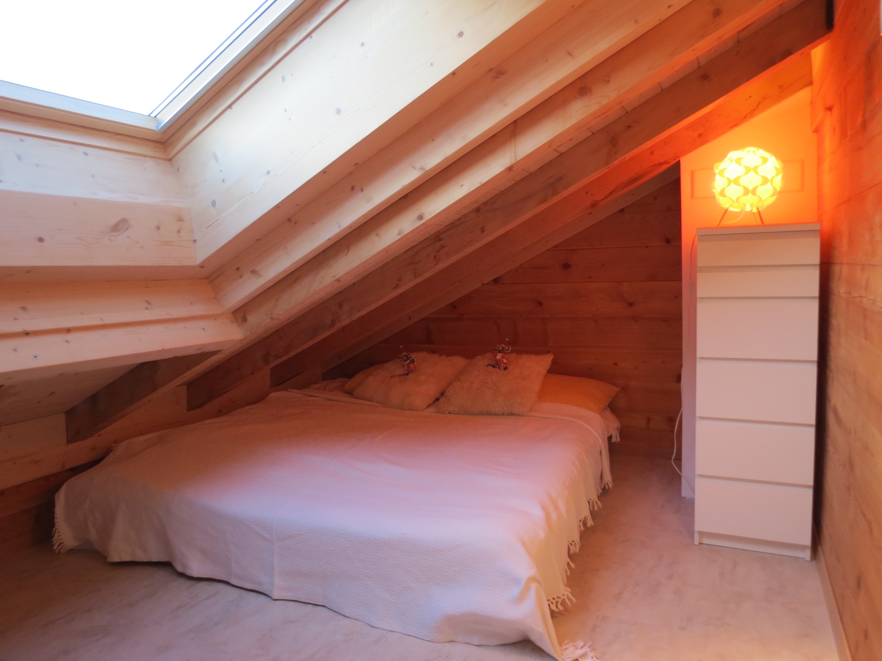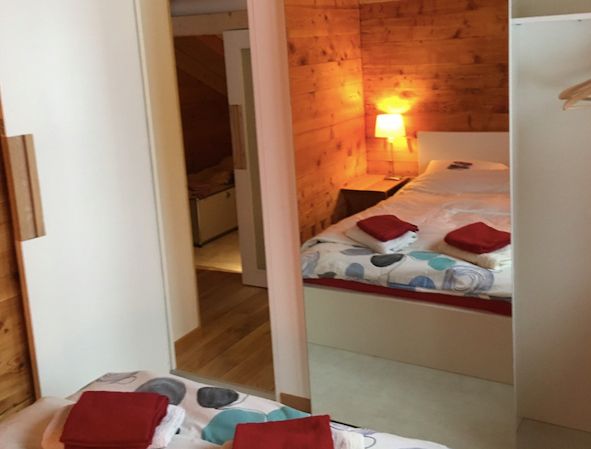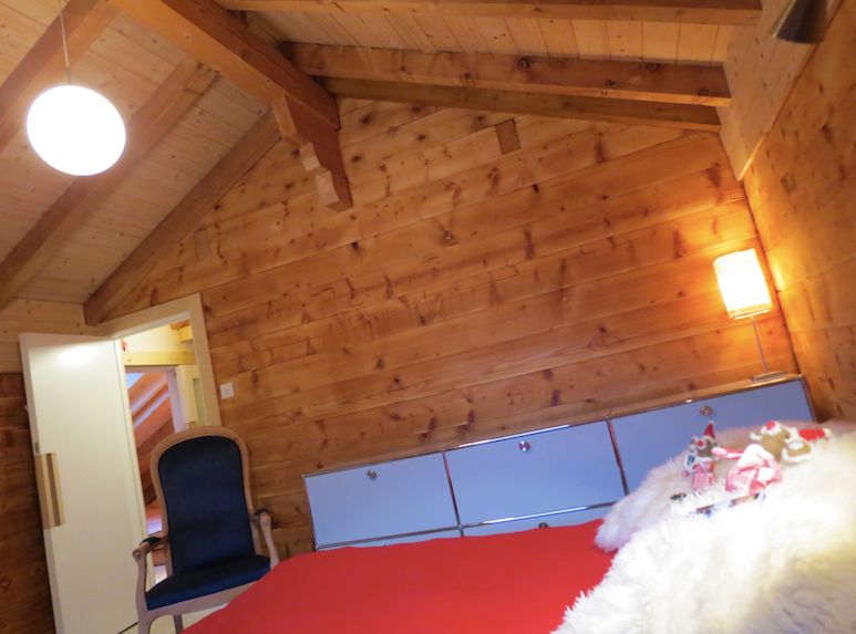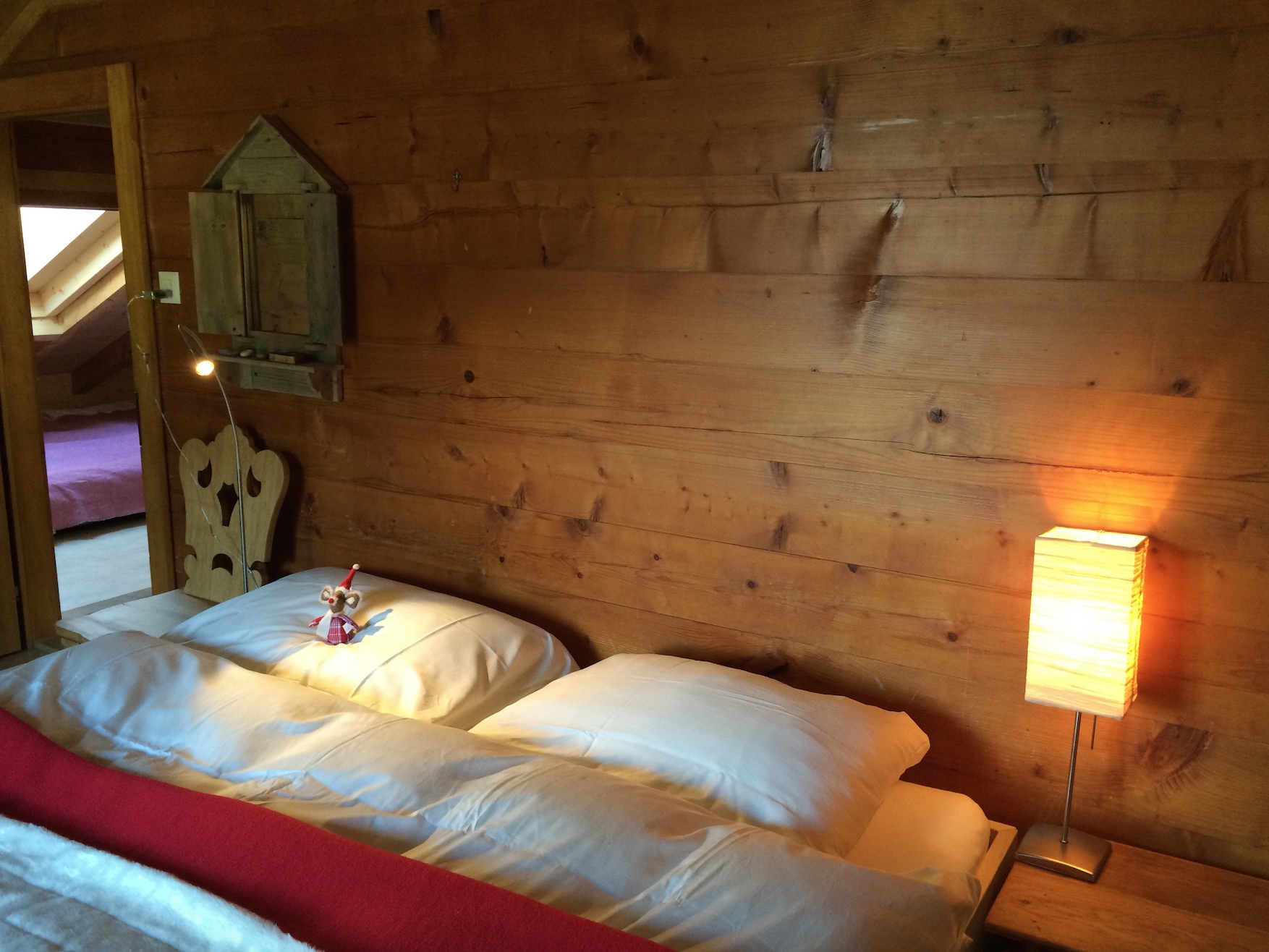Im Haus gibt es zwei Wohnungen. Dies ist die grössere Wohnung. Neue Küche, neues Duschbad/WC, separate Toilette, 2 Balkone, Gartensitzplatz. Internet, unverbaubare Aussicht, 2 grosse Panoramafenster. 3 Doppelzimmer, neue Hasenabetten und neue Matrazen, 2 Zimmer mit geöffnetem Dach bis unter den First sowie ein Dachrägenzimmer mit reduzierter Raumhöhe. Grosse, extreme bequeme Sofalounge in Wohnzimmer, TV, Esstisch für 8 Personen, perfekt eingerichtete Küche, GWM, 2 Typen Kaffeemaschinen, Raclette- und Fondueset. Traumhafte Aussicht aus allen Räumen. Sonnenhang. 4 Schlitten für unsere Gäste, Grundnahrunsmittel.