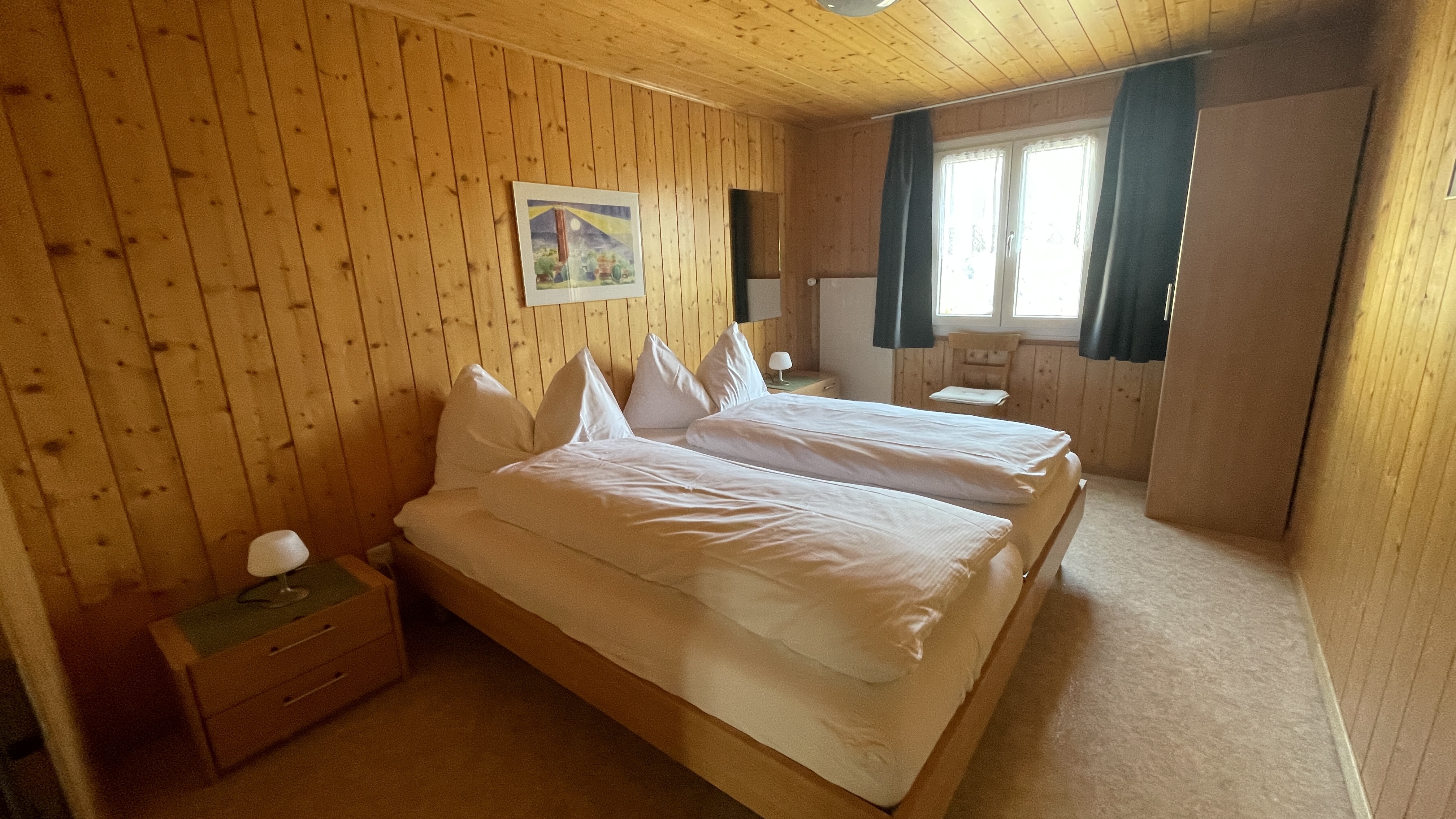 3-Zimmerwohnung mit 4 Betten, im autofreien Teil von Grächen, ruhige Lage, mit Gratis-Parkplatz beim Haus (nur Anwohner). Die Wohnung verfügt über 2 Doppel-Schlafzimmer für 4 Personen, grosse Wohn-/Essküche mit Sofa, Essecke, offener Küche, TV/Radio, Bad/Dusche/WC, grosser Balkon. Gratis WLAN. Grosse Liegewiese vor dem Haus, mit Sicht auf die herrlichen Berge. Grillplatz inkl. Brennholz vorhanden. Nichtraucher-Wohnung. Abschliessbarer Veloraum. Haustiere nicht erlaubt. Ideal für Familien. Angrenzend öffentlicher Spielplatz vorhanden. Haustiere nicht erlaubt.