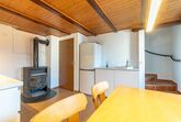 Im Inneren erwartet Sie eine harmonische Kombination aus rustikalen und komfortablen Elementen, verteilt auf drei Etagen. Die Räumlichkeiten sind durchzogen von hellen, rustikalen Holzbalken, die eine warme und einladende Atmosphäre schaffen. Für gemütliche Stunden sorgt das Wohnzimmer mit einer komfortablen Sitzbank und einem charakteristischen Ofen. Die Ausstattung umfasst zudem eine zur gemeinschaftlichen Nutzung vorgesehene Waschmaschine, eine Kaffeemaschine sowie eine praktische Spülmaschine, die Ihren Aufenthalt komfortabler gestalten.