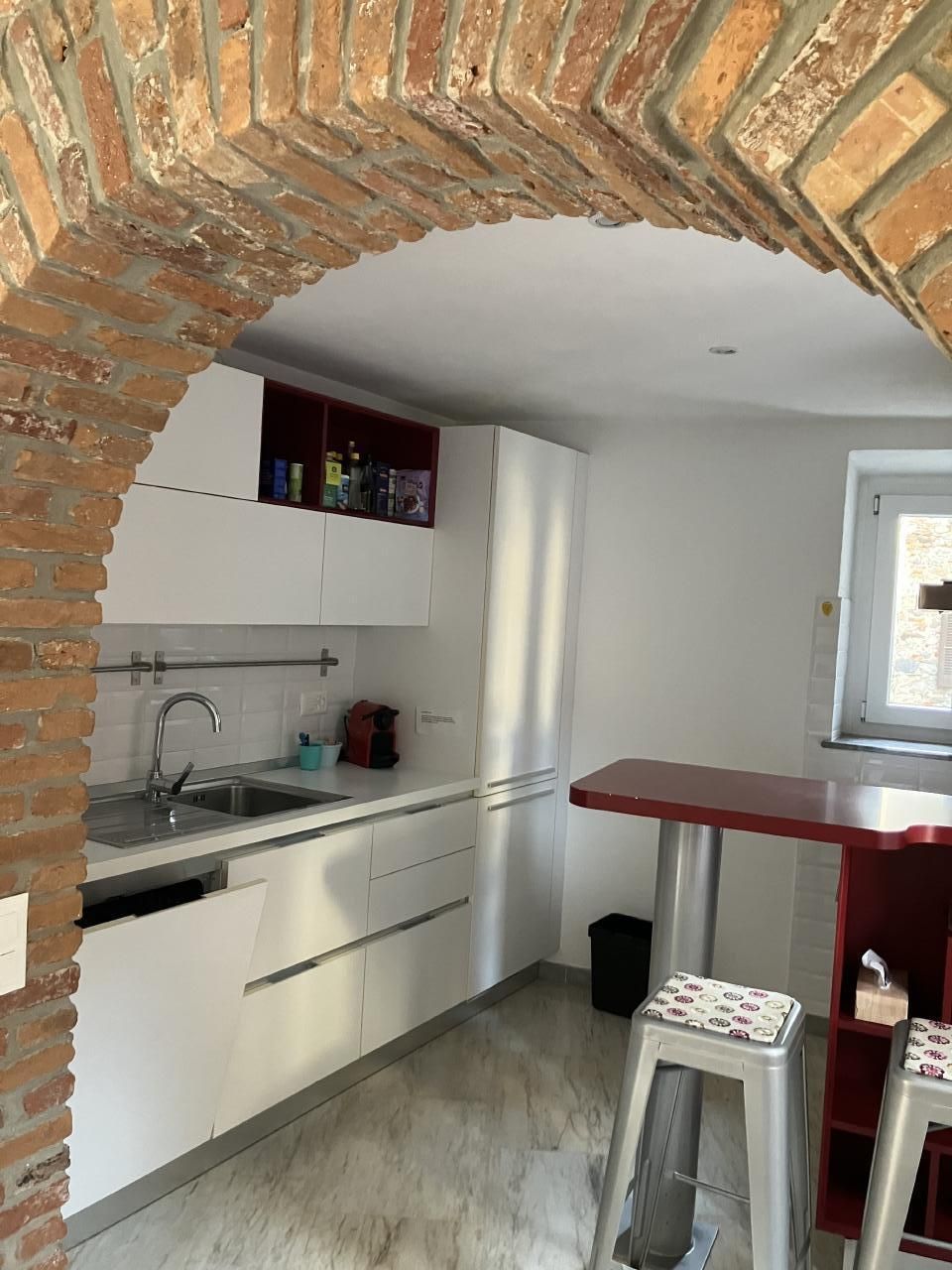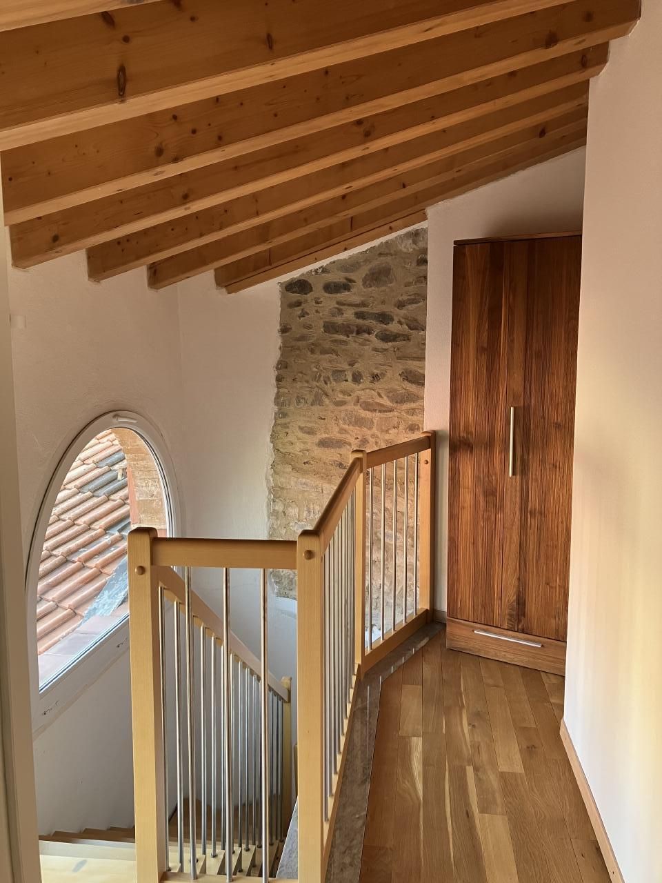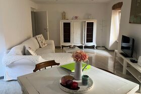 Das Innere des Hauses erweist sich als eine Oase des Komforts und des Stils. Die erste Wohnung erstreckt sich über zwei Etagen: In der unteren Etage erwartet die Gäste ein helles Wohnzimmer mit Sofa und Essecke, eine gut ausgestattete Küche, die an eine Terrasse grenzt, auf der man in Ruhe speisen kann, sowie ein Gästebad. Auf der oberen Etage erwartet Sie ein Schlafzimmer mit Doppelbett, Ankleidezimmer, privatem Balkon und einem Badezimmer mit Badewanne. Auf der dritten Ebene befindet sich ein zweites Studio mit sichtbaren Balken, einem Wohnzimmer mit Doppelbett, einer kleinen Küche und einem Badezimmer mit Dusche, alles sehr schön eingerichtet.