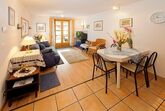 2-Zimmerwohnung mit 2 Betten & 2 Zusatzbetten.Wohnraum mit offener Küche Essecke Polstergruppe ( Bettsofa für 2 Pers.) TV, Wifi gratis, Douche mit WC und Lav. Südterrasse