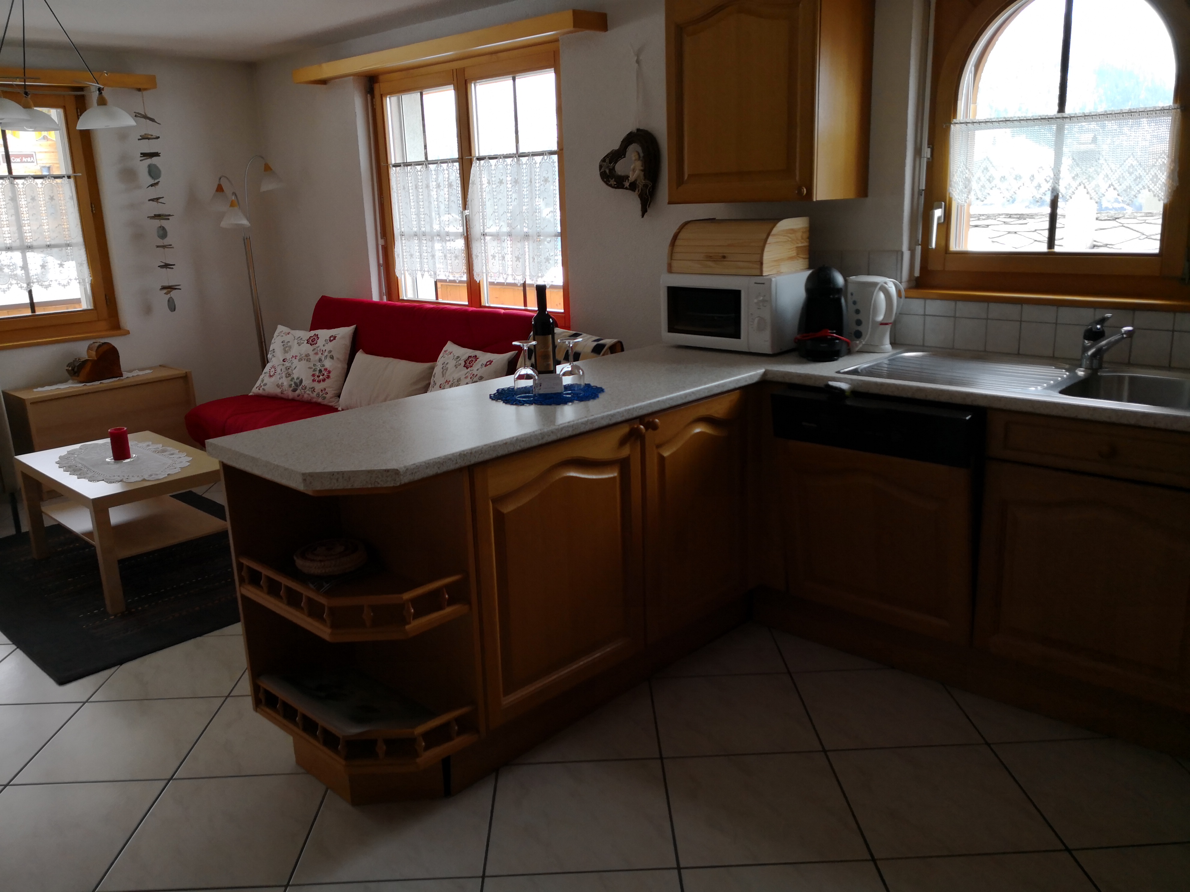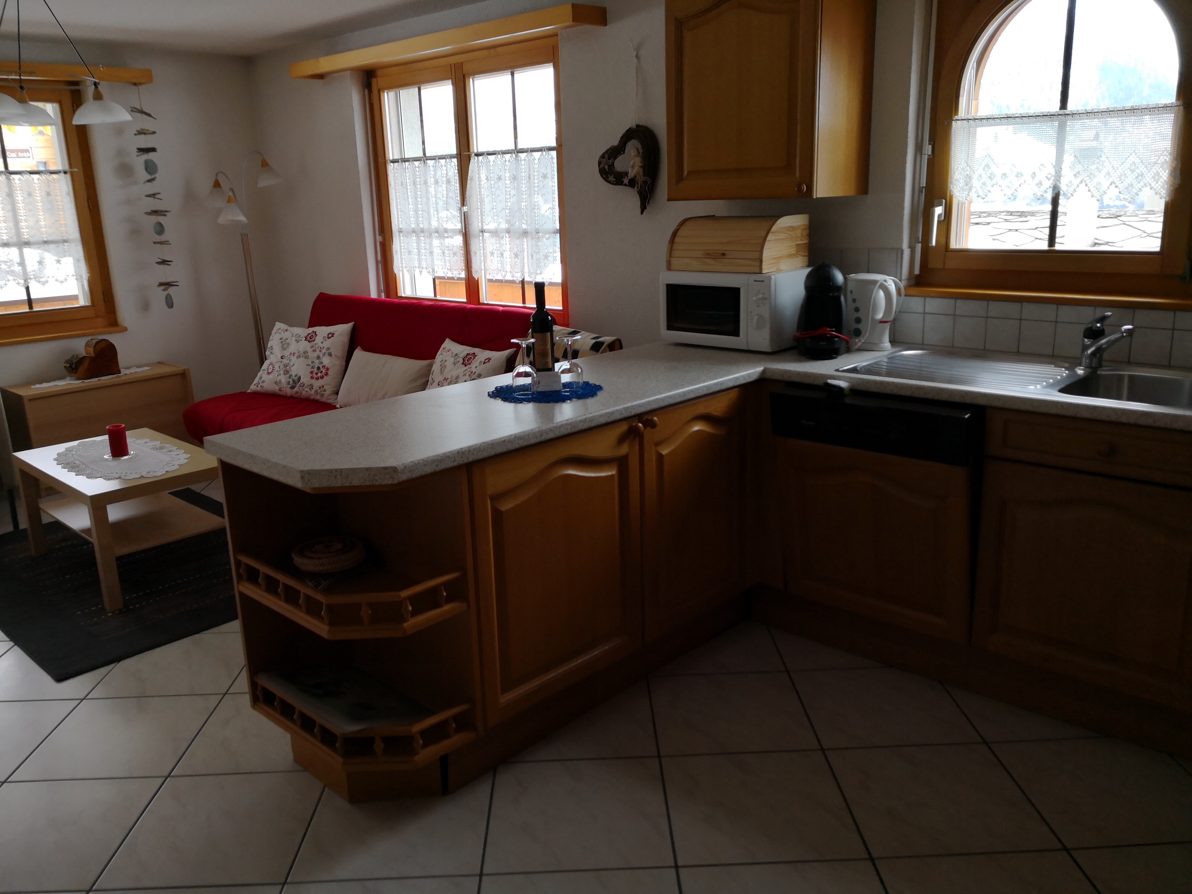 2 1/2-Zimmerwohnung im neuen Mehrfamilienhaus mit Einstellplatz im Haus. Das Haus ist an der Kantonsstrasse Eingangs Dorf ca. 200m vom Zentrum, ca. 150m von der Talstation der Hannigalpbahn und ca. 20m von der Bushaltestelle entfernt. Die Wohnung besteht aus 1 Doppelschlafzimmer, Wohnraum mit offener Küche, Essecke, Polstergruppe (Sofa als Schlafstelle für 2 Personen), Geschirrspüler, Mikrowelle, TV und Radio, Dusche mit WC und Lavabo, Südwest-Balkon, im 1. Obergeschoss. Internetanschluss. Nichtraucher-Wohnung (Rauchen auf dem Balkon gestattet). Haustiere nicht erlaubt.
