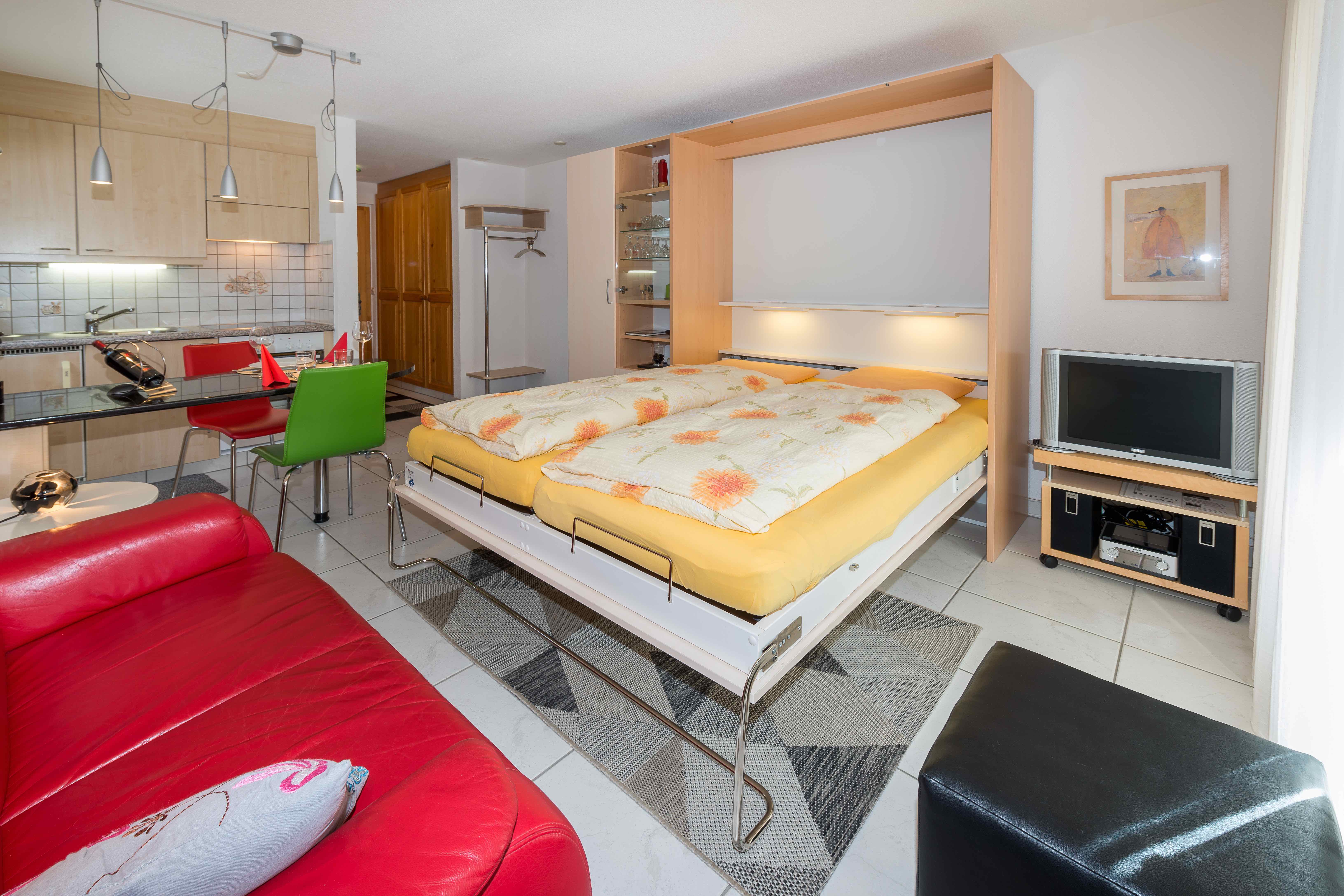 1-Zimmerwohnung in Mehrfamilienhaus im 2. Stock mit Westbalkon, Autoeinstellhalle (im Grundpreis enthalten), Lift & gepflegter, grosser Gartenanlage. Das Haus befindet sich an sehr zentraler Lage, unmittelbar neben der Hannigalpbahnstation und der Postautohaltestelle sowie Coop. Die Wohnung ist grosszügig und modern ausgestattet inkl. TV, Radio mit CD und kostenlosem WLAN. Nespresso-Kaffeemaschine vorhanden. Haustiere sind nicht erlaubt. Nichtraucher-Wohnung (Rauchen auf dem Balkon gestattet). Schlussreinigung und Wäsche sind im Grundpreis nicht enthalten.Extras:Schlussreinigung Fr. 75.00Wäsche Fr. 20.00/Person