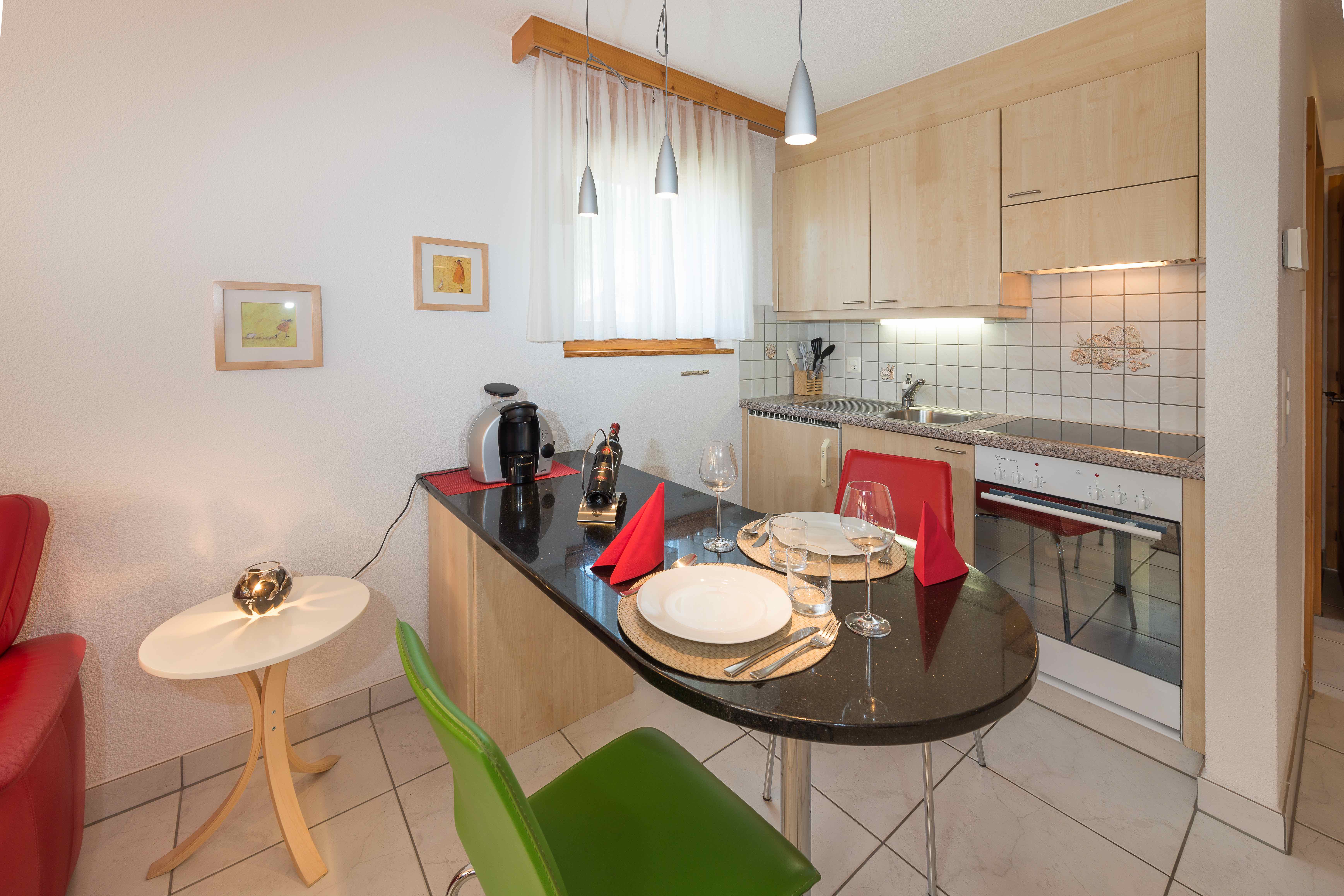 1 Schlafraum, Backofen, Balkon, Fondue-Set, Garten, Haustiere nicht erlaubt, Internetverbindung, Kaffeemaschine, Kochnische, Kombinierter Wohn- und Schlafbereich, Kühlschrank, Lift, Nichtraucherzimmer-/wohnung, Parking, Raclette-Set, Radio, Terrasse, Tisch- und Küchenwäsche, Töpfe Pfannen Geschirr, TV, Wäschetrockner, Wäschetrockner im Haus, Waschmaschine, Waschmaschine im Haus, WiFi
