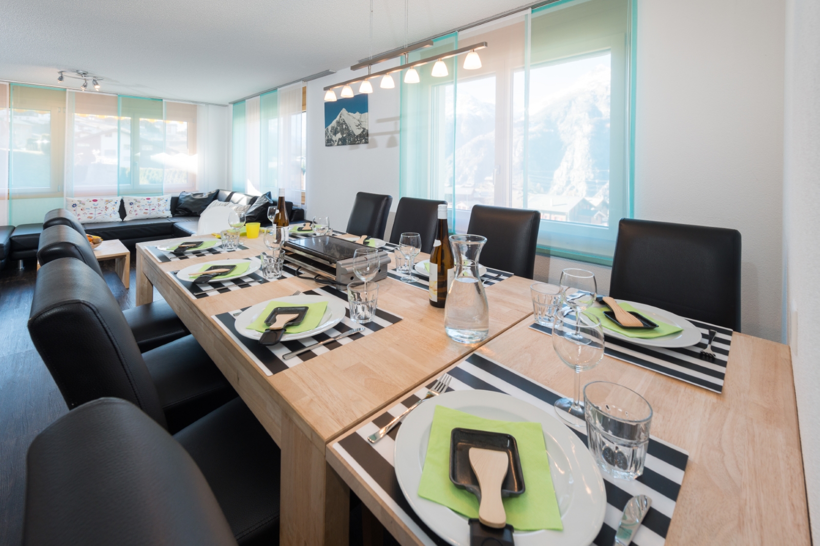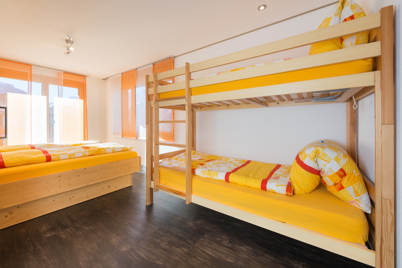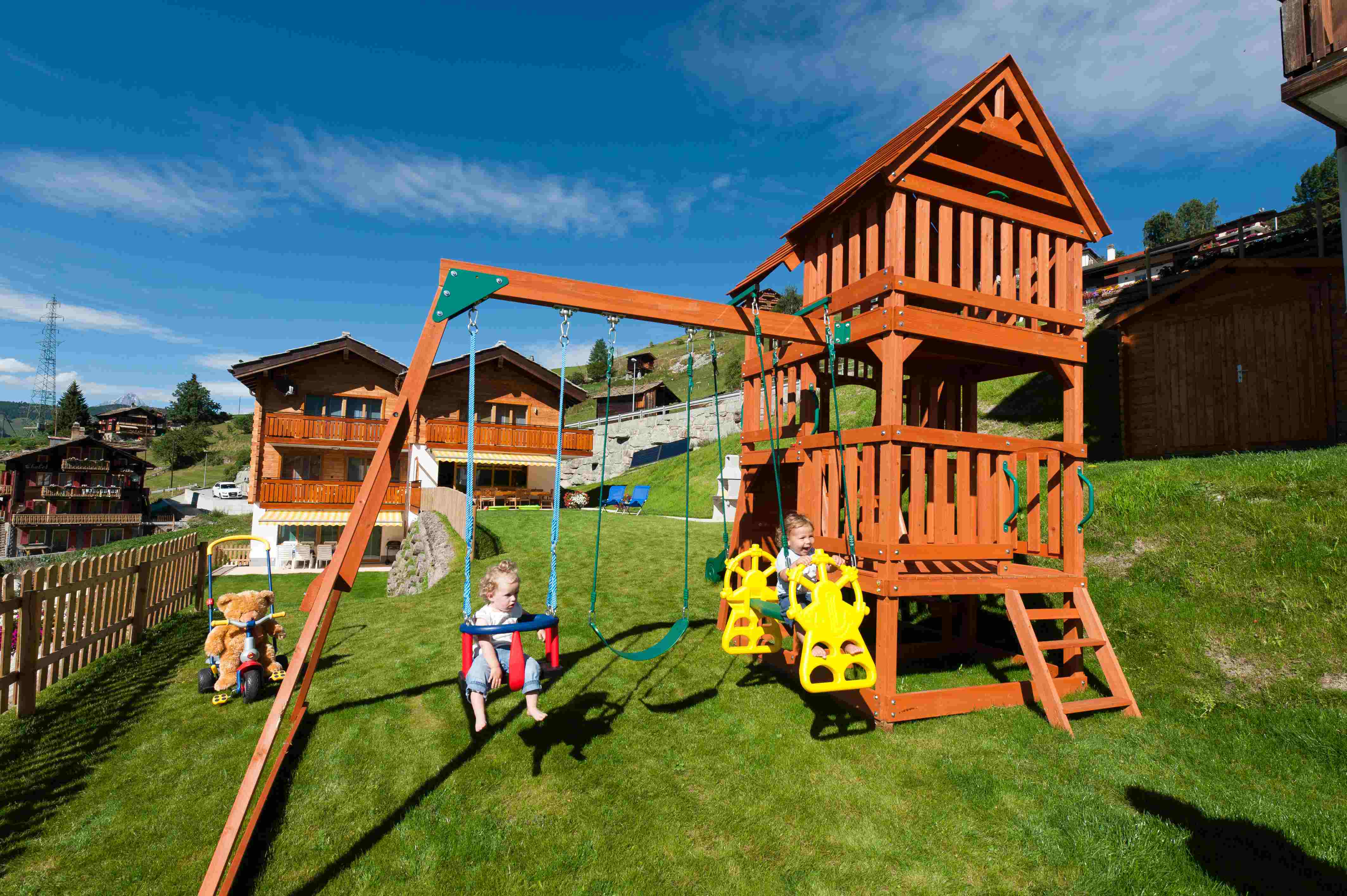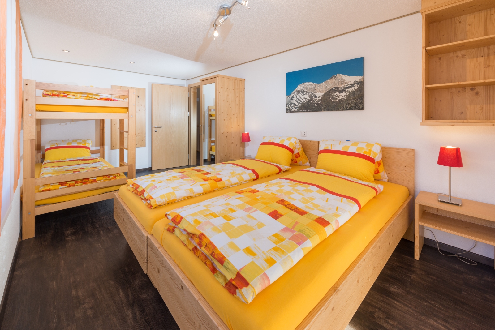 Grosse 4-Zimmerwohnung im Zweifamilienhaus, ca. 500m vom Dorfzentrum entfernt. Im Erdgeschoss ist das grosse Wohn- & Esszimmer (mit TV, Radio, DVD & CD) mit offener Küche (mit Wasserkocher, Tischgrill, Mikrowelle, Raclette- & Fondueset & Nespressokaffeemaschine) und einer Nasszelle mit Dusche (mit Fön). Sie verfügen über einen eigenen Vorplatz mit Tisch und Stühlen und einen Rasenplatz. Im 1. Stock sind 2 Doppelzimmer mit TV, ein Vierbettzimmer und ein Badezimmer mit Badewanne und Duschwand (mit Fön). Alle Zimmer haben einen eigenen Balkon. Haustiere nicht gestattet.Lounge/Indoor Spielwelt in unserem Nebenhaus Lunic (30m).