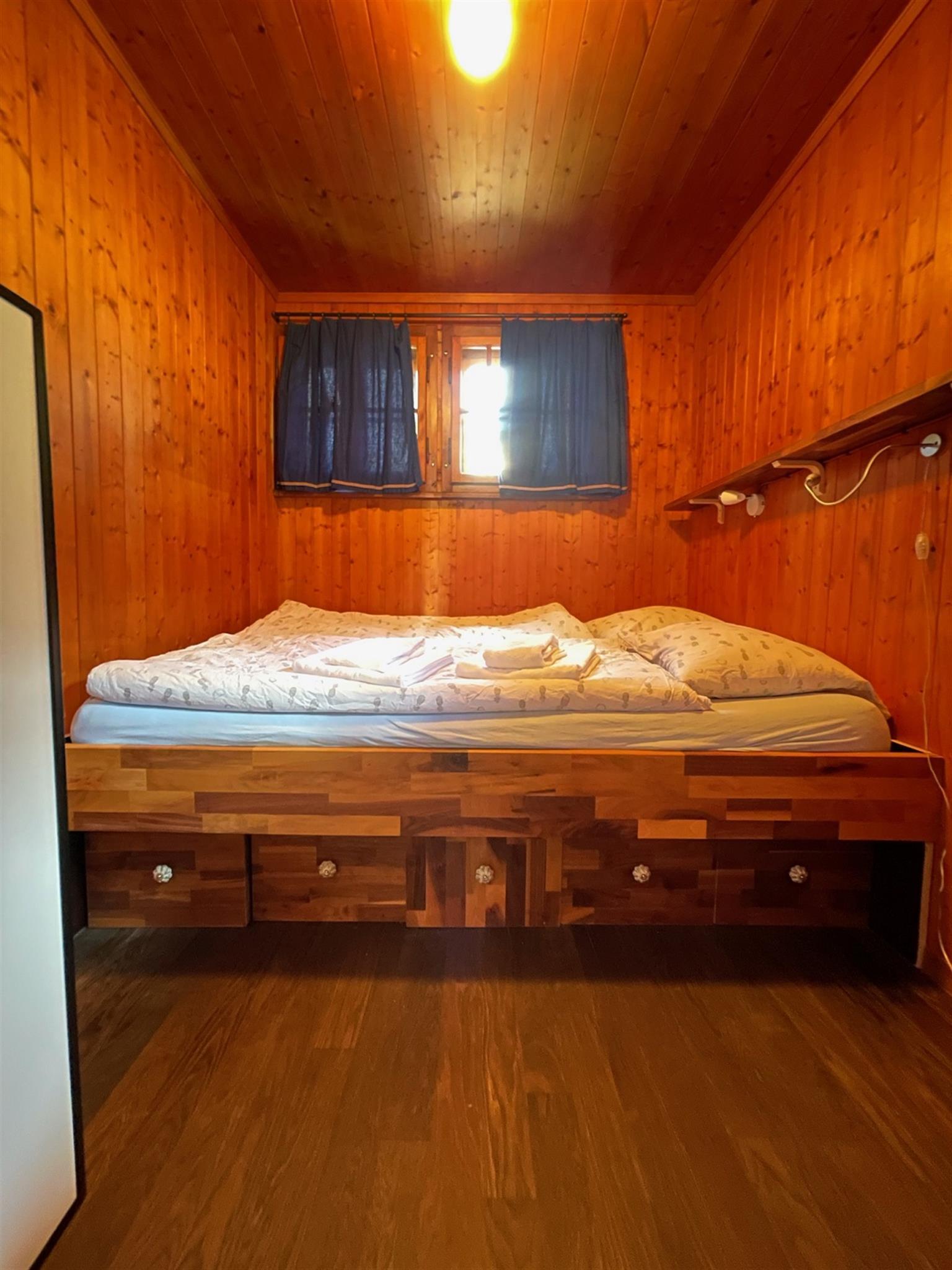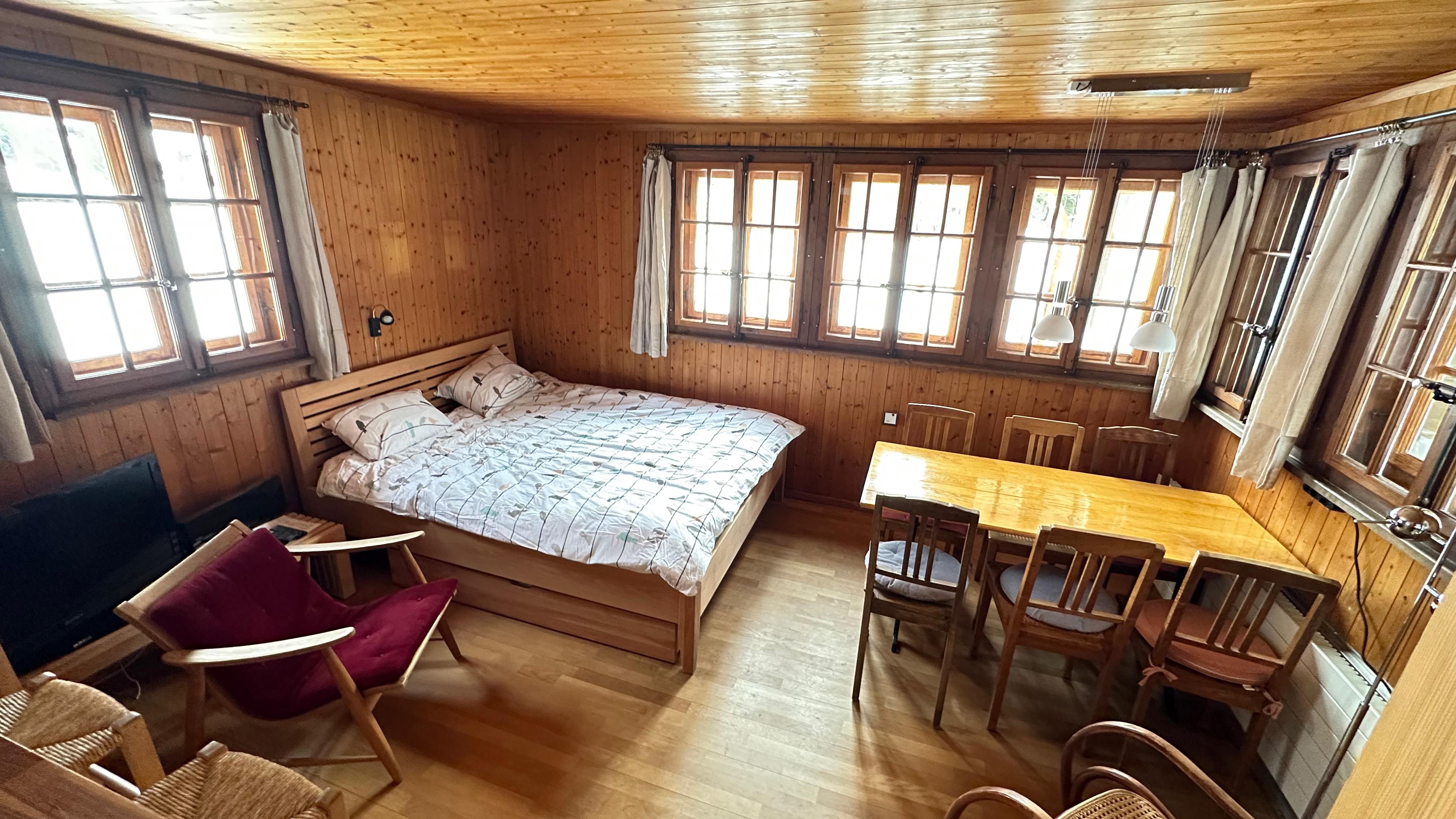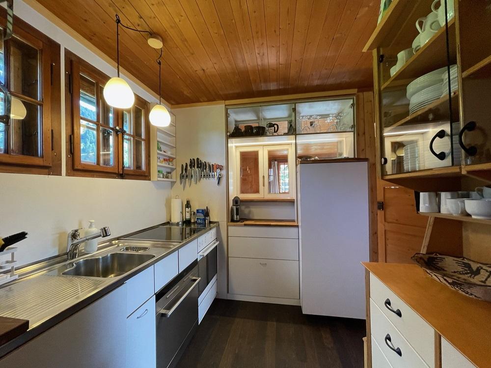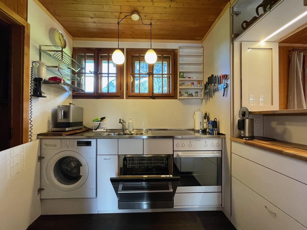 Ein Wohn-Schlafzimmer mit Doppelbett 160/200, Bistrotisch mit 6 Stühlen, Bartheke mit Durchreiche zur Küche und Barstühlen; ein Livingroom mit Bettsofa/Doppelbett (2x200x90), Esstisch 8-10 Personen, Kaminofen und geheizte Sitzbank, TV, Radio und Musikanlage, WLAN; ein Separatschlafzimmer mit Doppelbett (160/200), Dusche/WC und Galerie (3 Kurzzeitschlafplätze), 1 kleines Schlafzimmer mit Bett (140/200), moderne Küche mit Glaskeramikkochfeld, Backofen, Geschirrspüler und Waschmaschine, grosser Kühlschrank mit Tiefkühlfach und Gemüsefrischalteschubladen, Toaster, Stabmixer, Kaffemaschine (ganze Bohnen verwenden) und Wasserkocher.