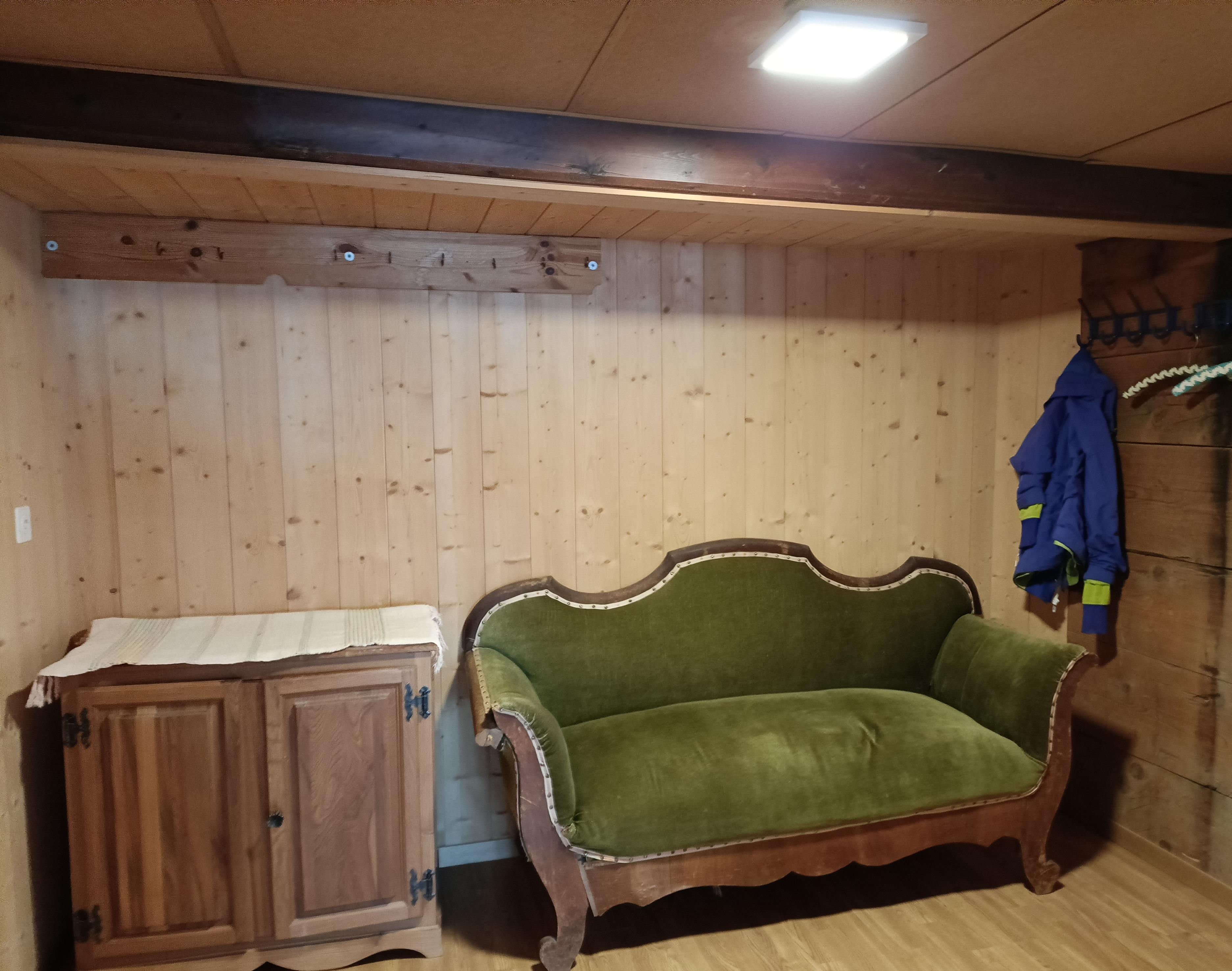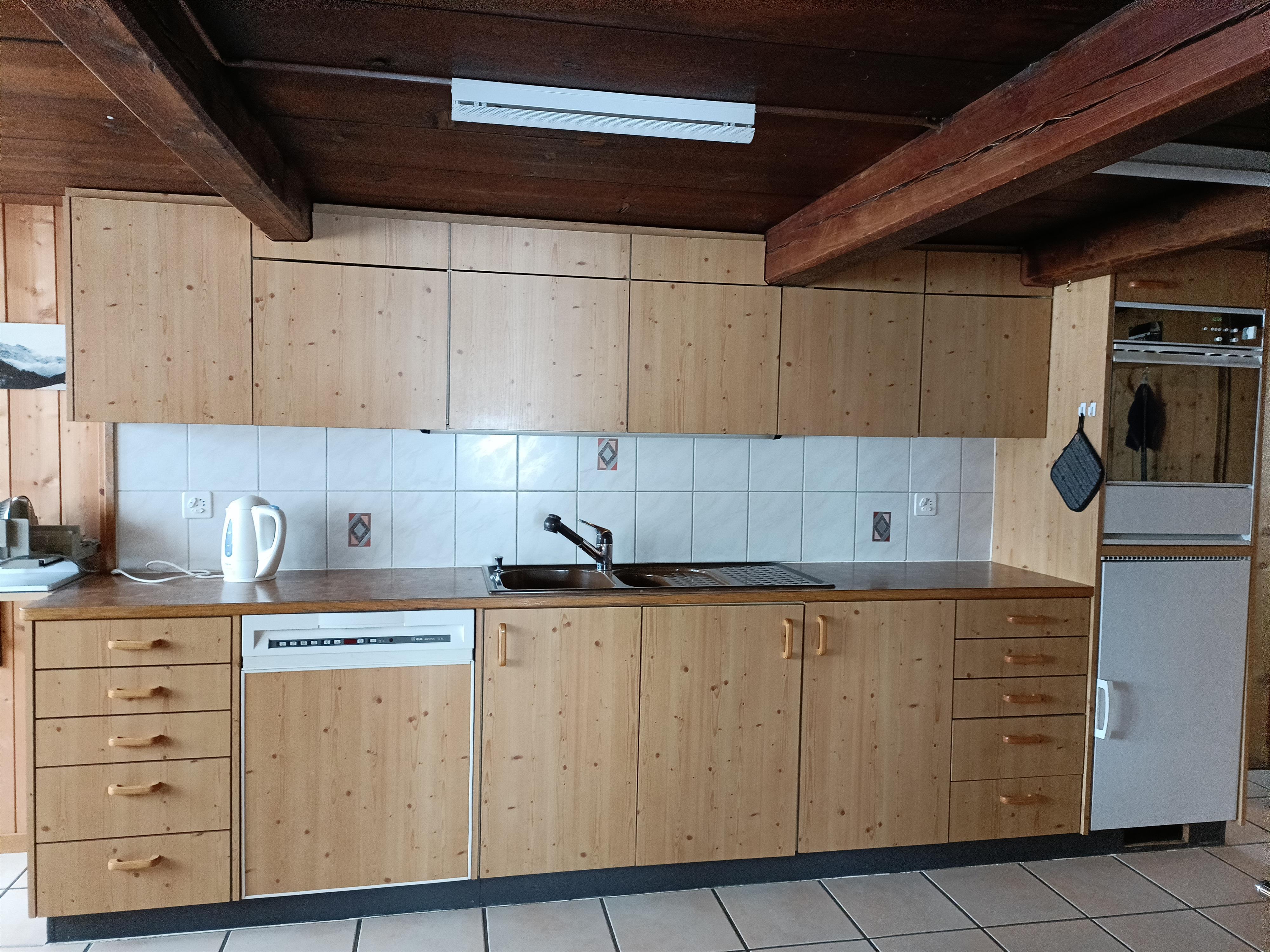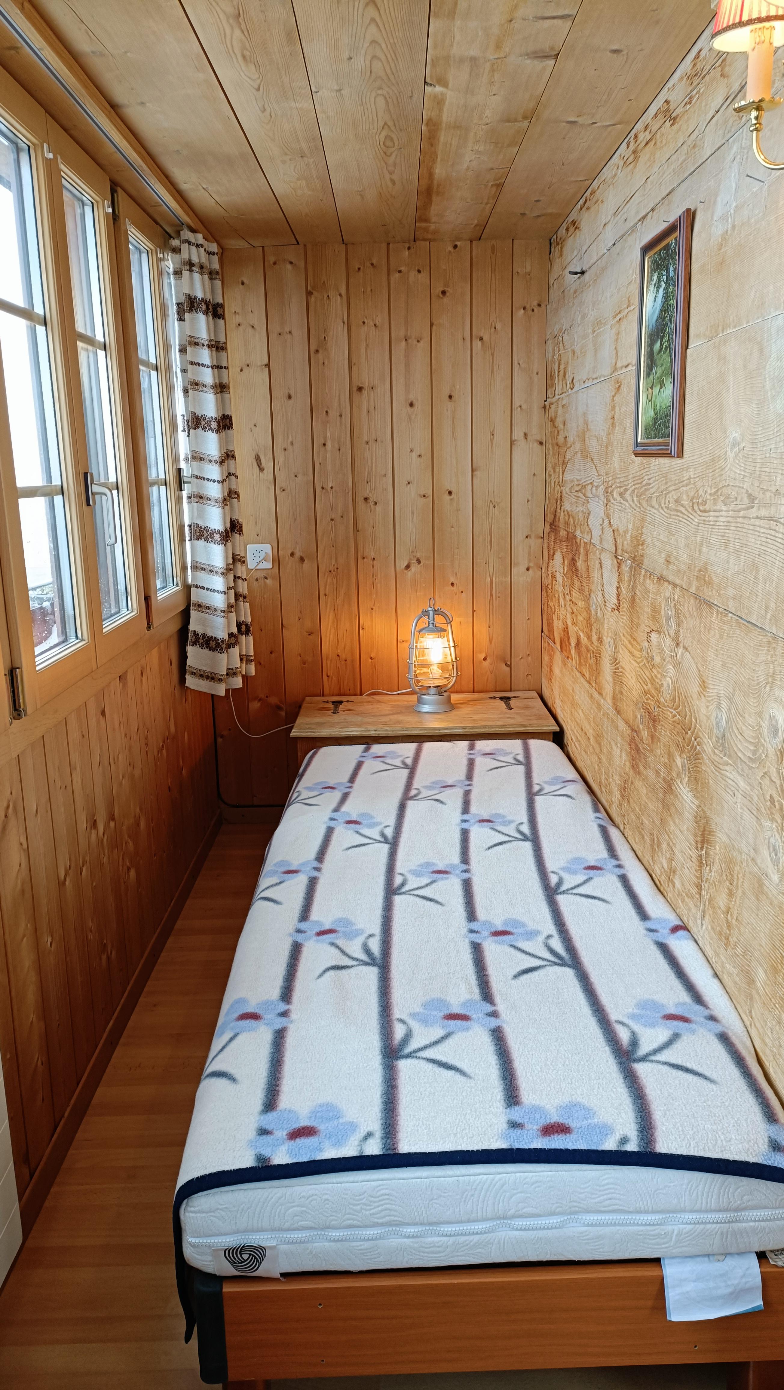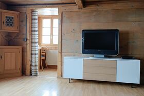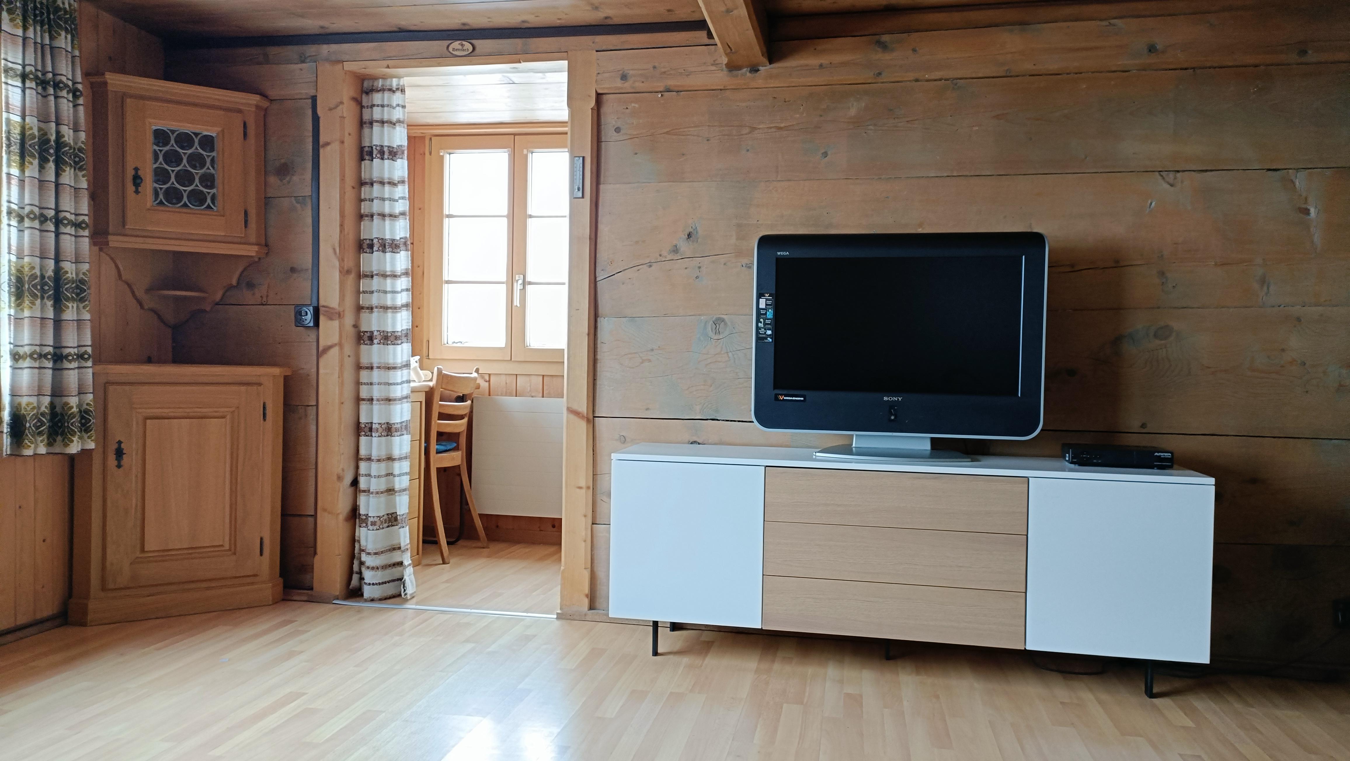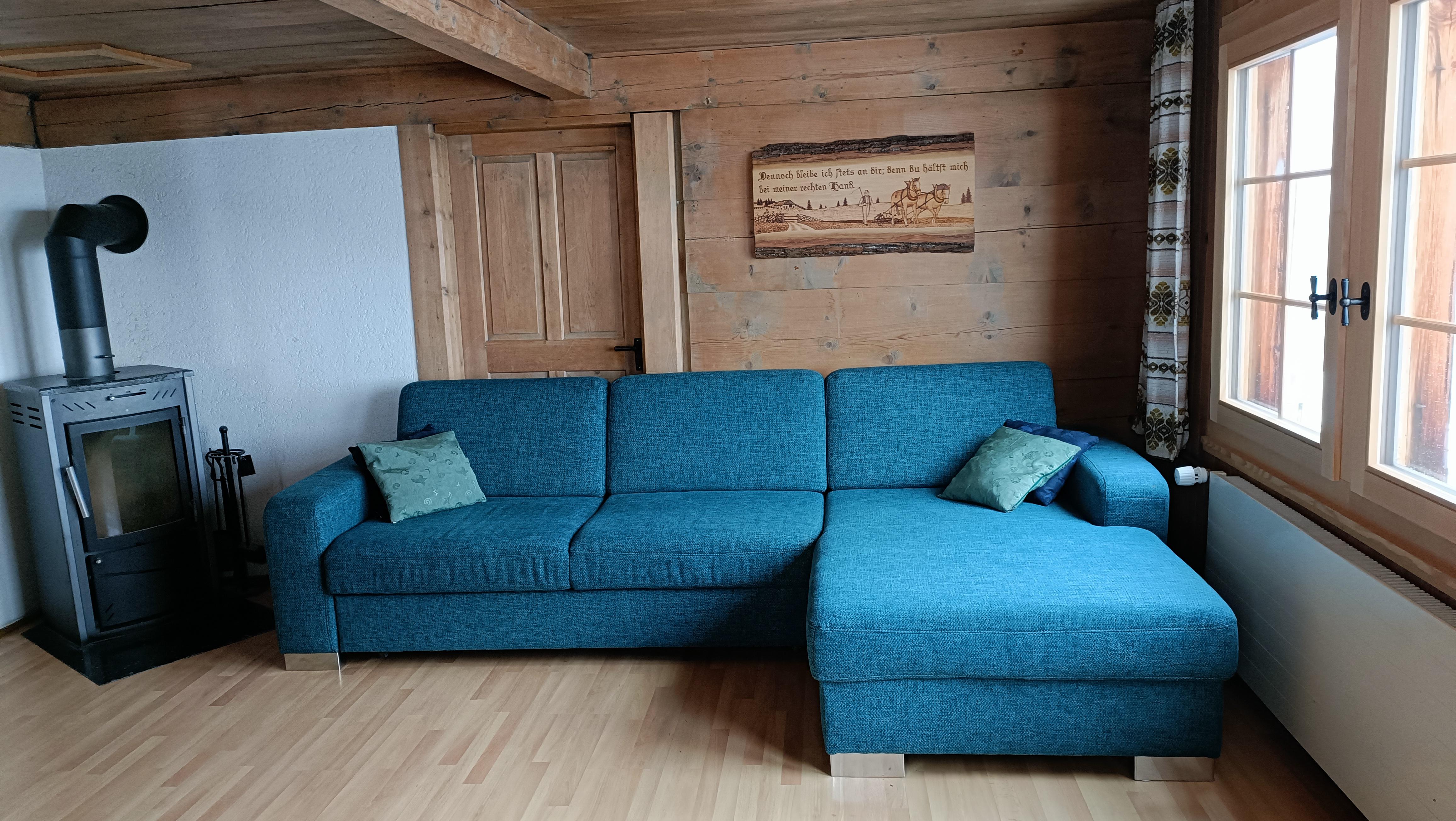 Gemütliche, einfache, alte Wohnung in einem freistehenden 2-Familien-Bauernhaus. Grosse Küche mit Eckbank, Geschirrspüler, Kühlschrank sowie Backofen. Wohnzimmer mit Ecksofa und 2 Schlafmöglichkeiten. 1 Schlafzimmer mit einem Doppelbett. 1 Schlafzimmer mit 2 Einzelbetten. Separate Laube mit einem Einzelbett. Terrasse mit schöner Bergsicht. WLAN. Skiraum. Nichtraucherhaus. Haustiere auf Anfrage.