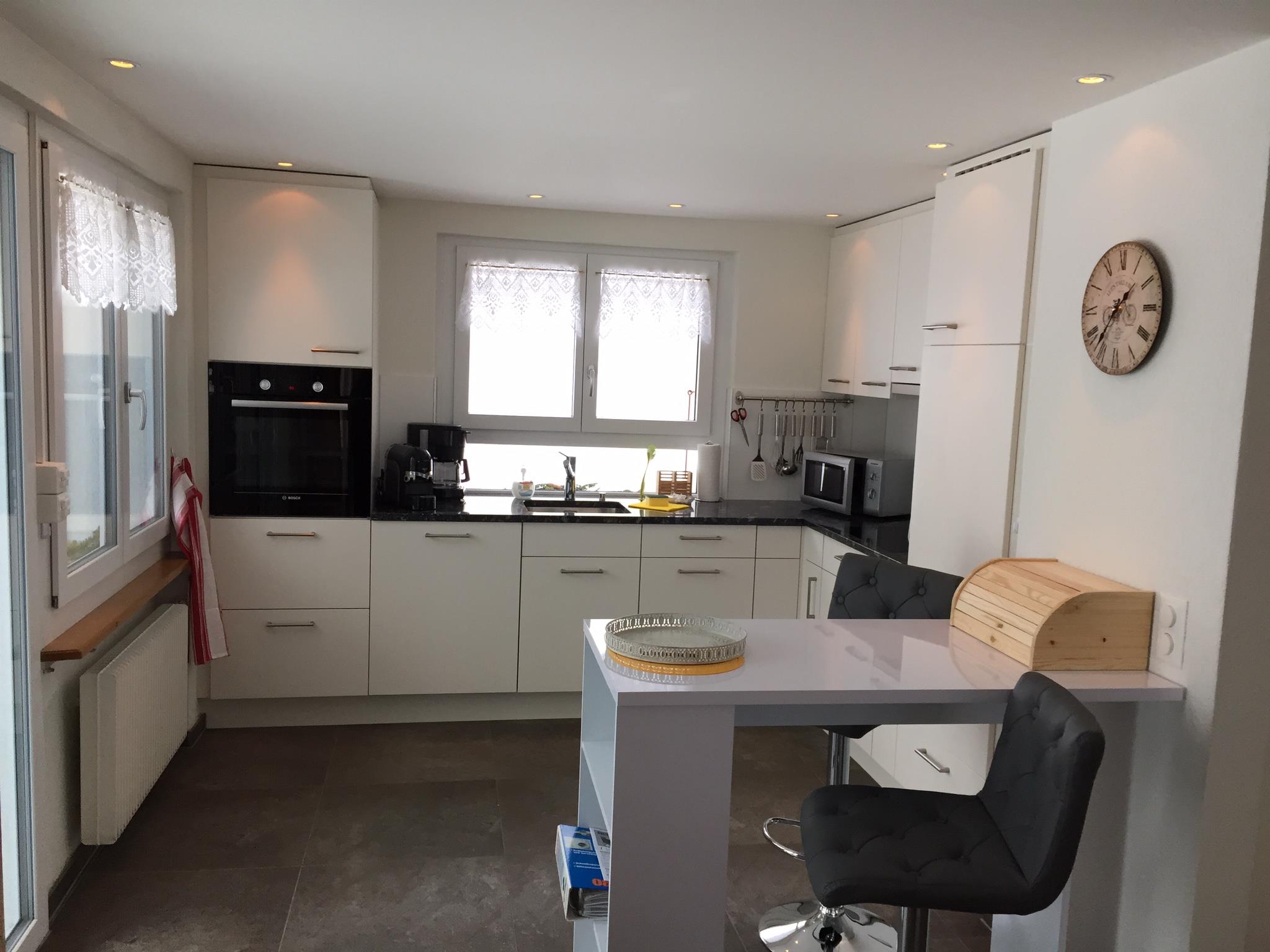 4.5-Zimmerwohnung (99 m2) im 1. Stock in einem Mehrfamilienhaus mit 4 Wohnungen. Neu renoviert, modern eingerichtet, an ruhiger Lage und in der Nähe der Bushaltestelle Margeli. Schöne Sicht auf Engstligenbach und Lohner. Ideal für Kinder zum Spielen (Wiese, Bach und Wald vor dem Haus). Bad/Dusche/WC. 1 Schlafzimmer mit Doppelbett, 1 Schlafzimmer mit 2 Einzelbetten, 1 Schlafzimmer mit Etagenbett. Duvets nordisch, Bettwäsche vorhanden. Offenes Wohnzimmer zur Küche mit Esstisch für 4-8 Personen. Swisscom TV 2.0, Radio, WLAN/Internetanschluss. Moderne und komfortabel eingerichtete Küche mit Backofen, Kühlschrank inkl. Gefrierfach, Geschirrspüler, Induktionsherd, Mikrowelle und allem nötigen Zubehör. Balkon mit Bergsicht, Mitbenützung Waschmaschine, Skiraum, Zentralheizung. Eigene Garage inkl. Vorplatz. Nichtraucherwohnung.