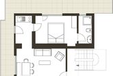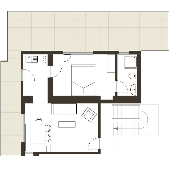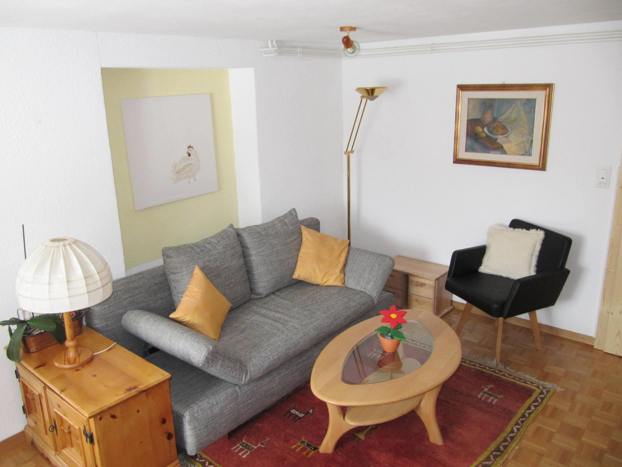 Gemütliche helle 2-Zimmerwohnung im Parterre eines Dreifamilienhauses mit Balkon und Parkplatz. Wohnzimmer, offene Küche, TV, Radio, 1 Doppelschlafzimmer, Badezimmer mit Dusche.