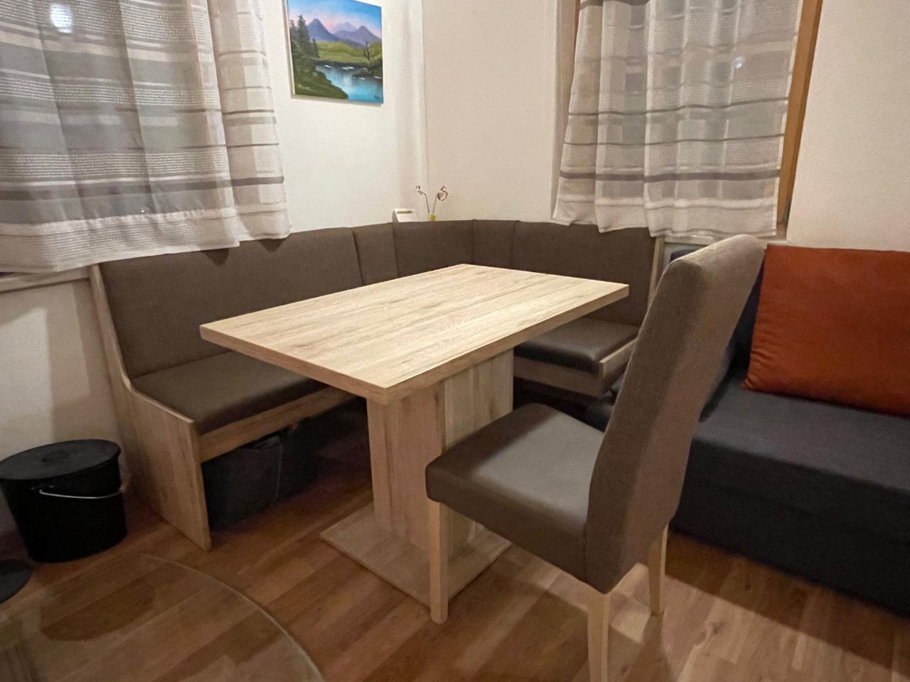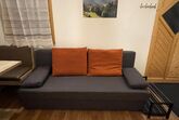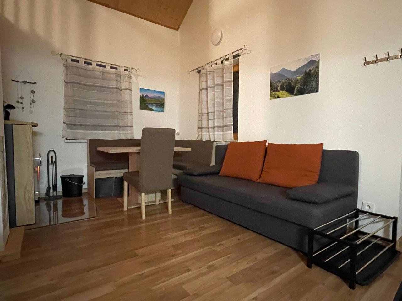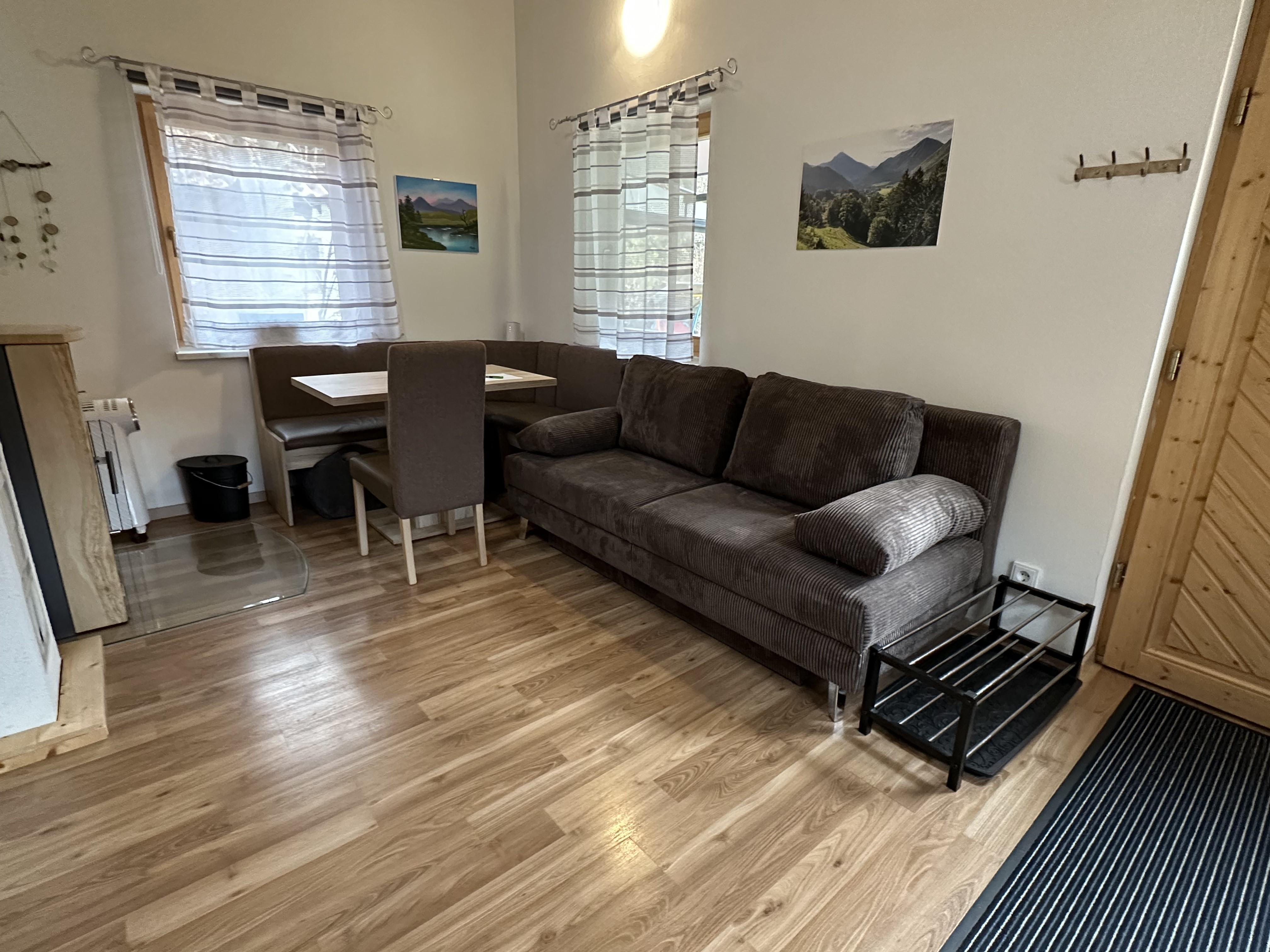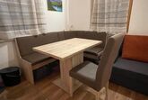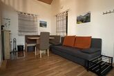 Der Wohnbereich umfasst eine vollausgestattete Küchenzeile (Külschrank mit Gefrierfach, Ceranfeld, Backrohr, Geschirrspüler, Nespressomaschine, Wasserkocher, Toaster), Eckbank, Ausziehbares Sofa und Kaminofen. Das Schlafimmer ist mit einem ausziehbaren Doppelbett (200 x 180 cm) und einem kleinen Schrank ausgestattet. Das kleine Badezimmer ist zweckmäßig eingerichtet mit einer Dusche, WC, Waschbecken und einem Handtuchtrockner ausgestattet.