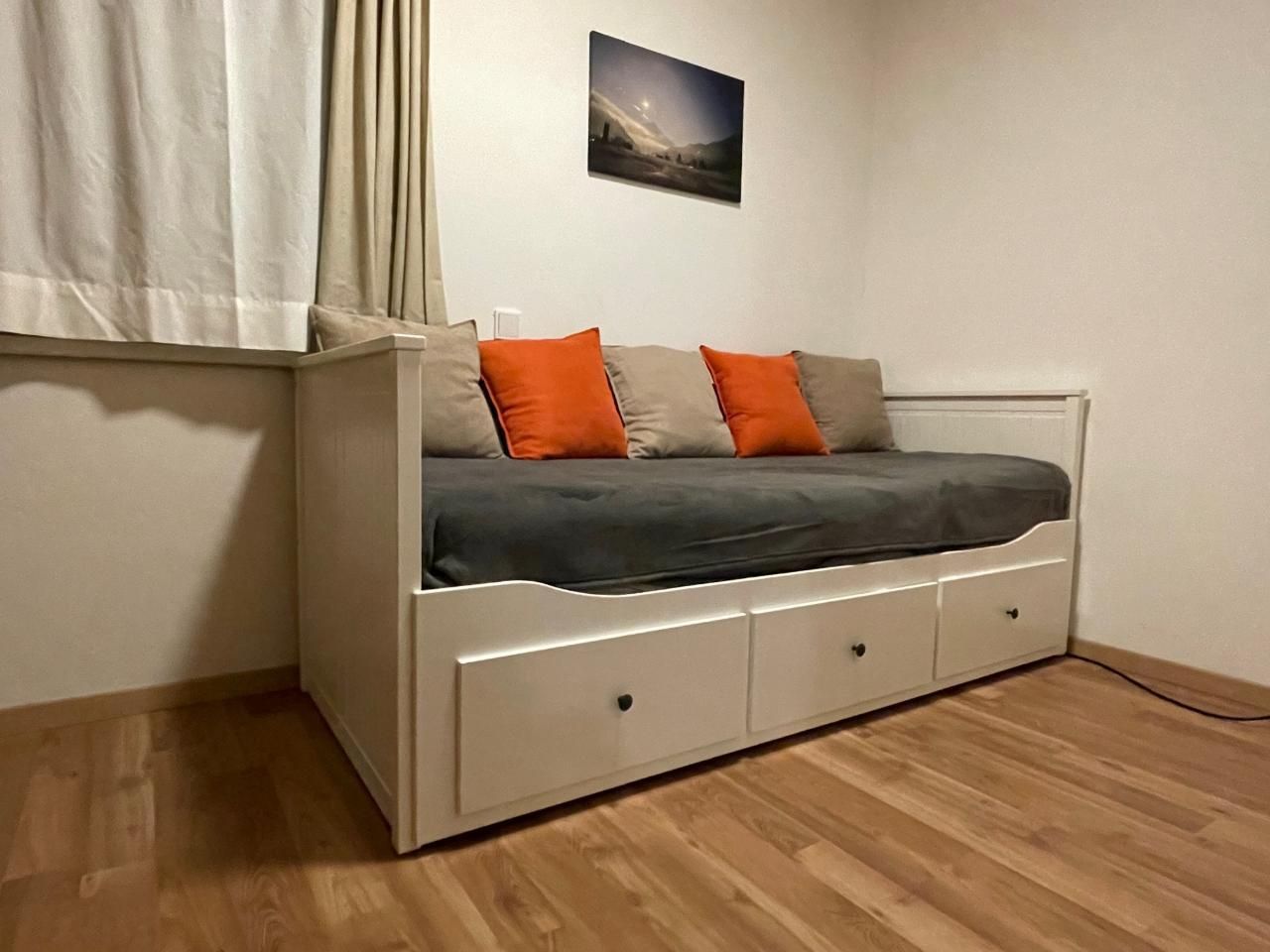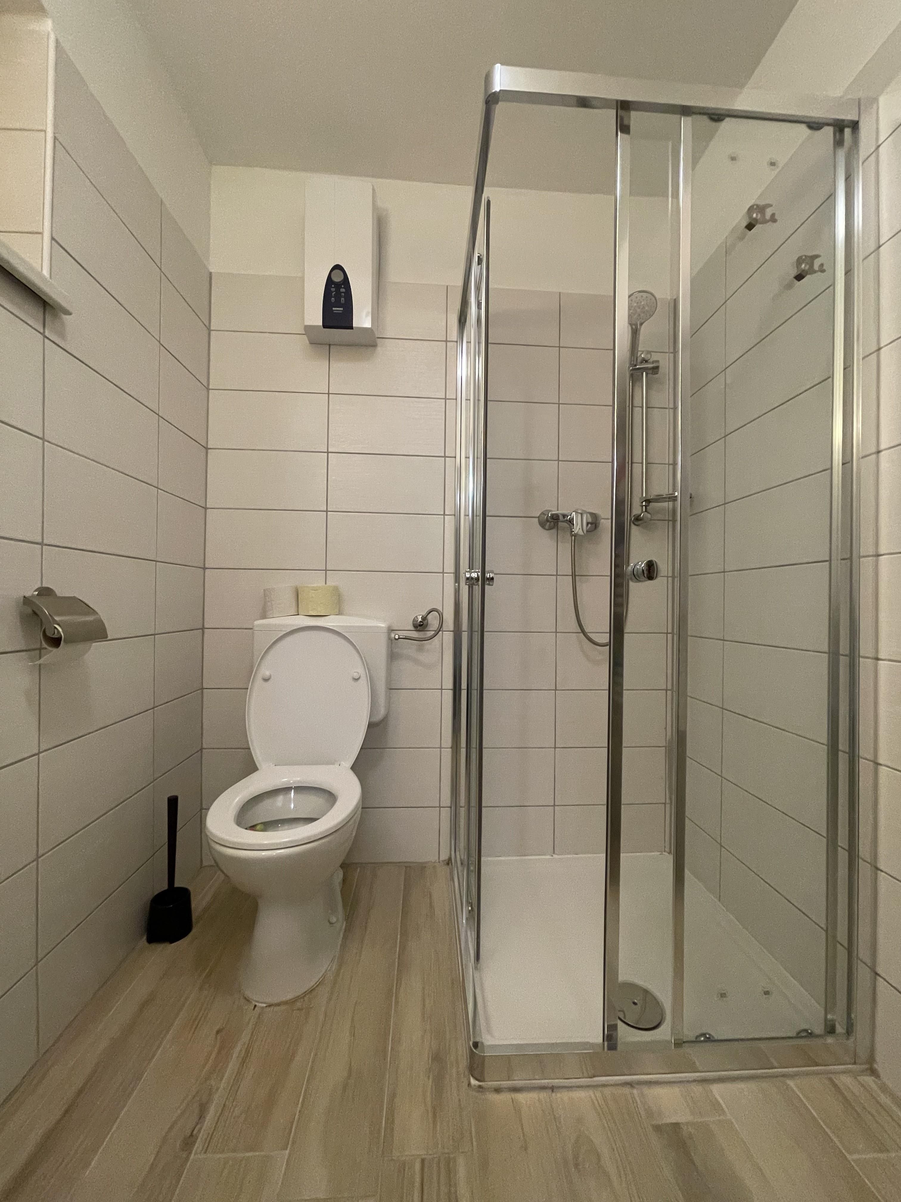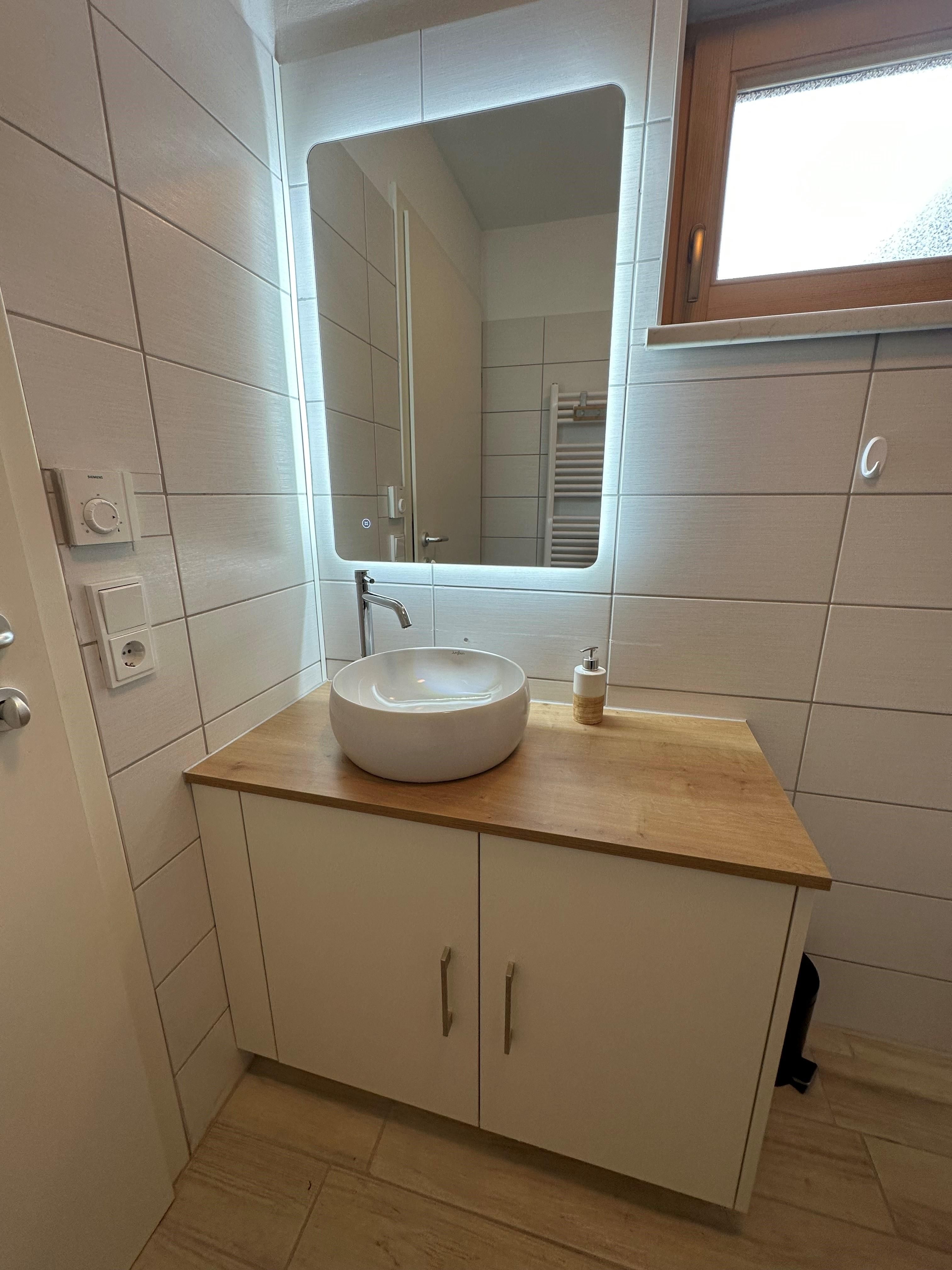 Der Wohnbereich umfasst eine vollausgestattete Küchenzeile (Külschrank mit Gefrierfach, Ceranfeld, Backrohr, Geschirrspüler, Nespressomaschine, Wasserkocher, Toaster), Eckbank, Ausziehbares Sofa und Kaminofen. Das Schlafimmer ist mit einem ausziehbaren Doppelbett (200 x 180 cm) und einem kleinen Schrank ausgestattet. Das kleine Badezimmer ist zweckmäßig eingerichtet mit einer Dusche, WC, Waschbecken und einem Handtuchtrockner ausgestattet.