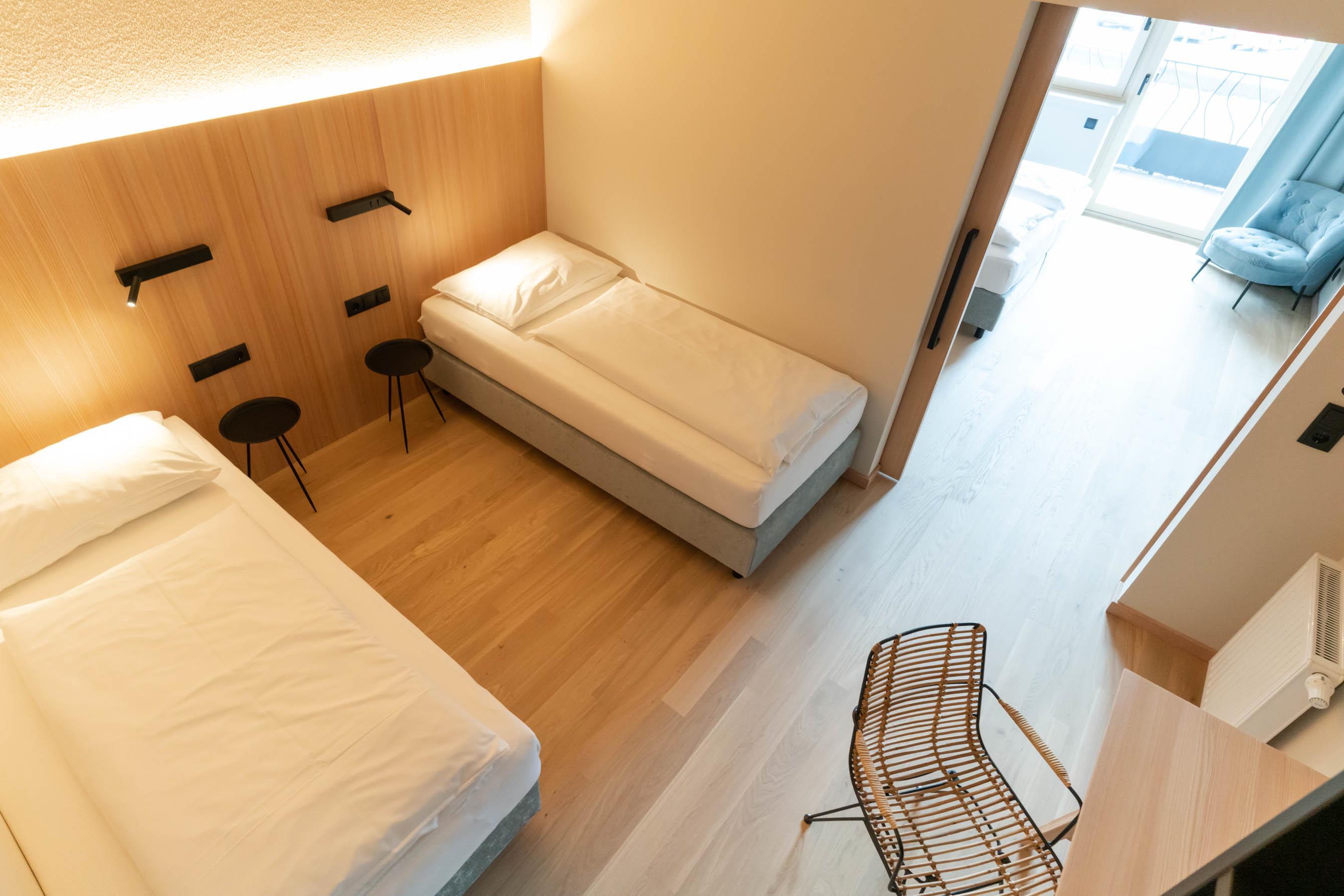 • kleines Schlafzimmer mit zwei getrennten Betten
